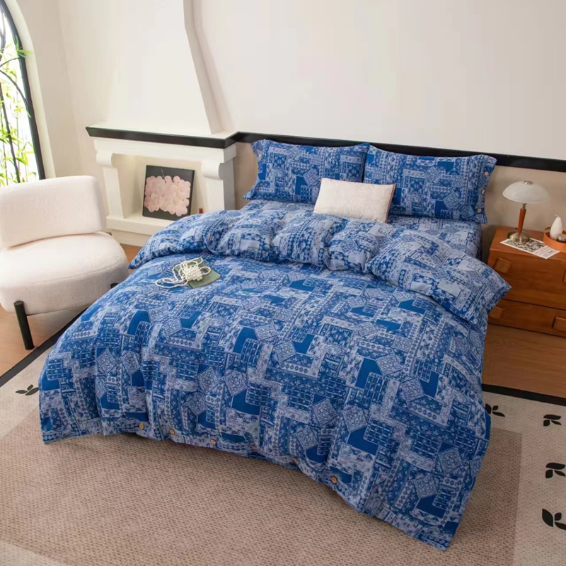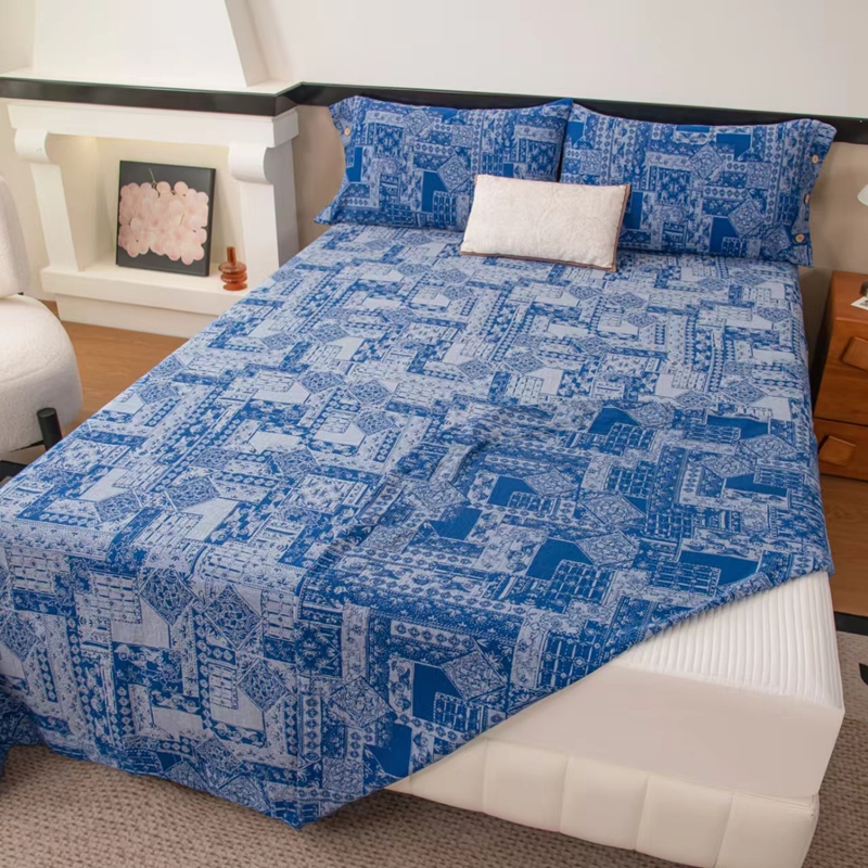 (总)双层纱家居 2024新款双层纱四件套,百福蓝,梦百合,水墨米黄,水墨米兰,西雅图蓝
