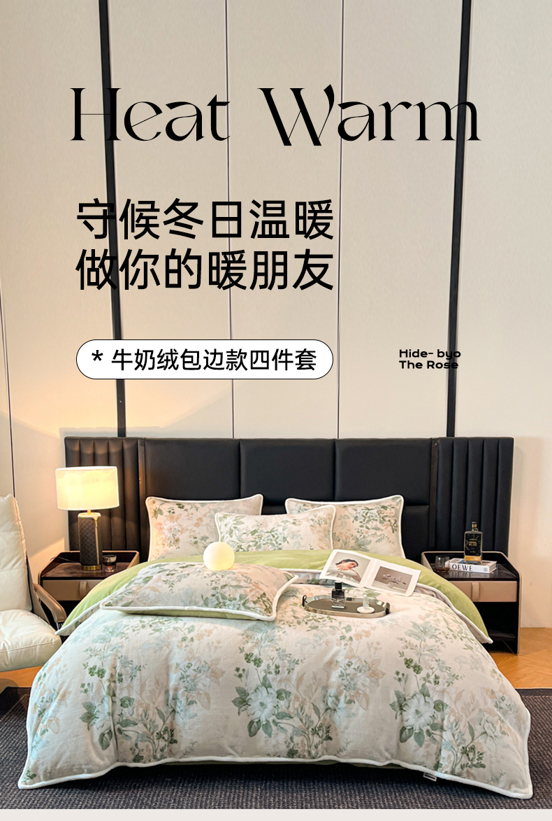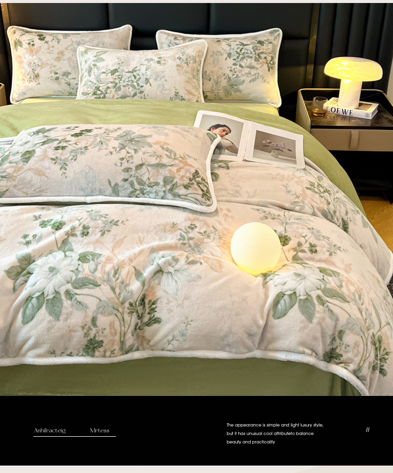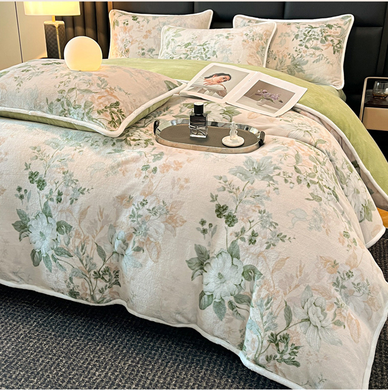 诺梵家纺 2025新款牛奶绒印花包边四件套 芬芳-绿