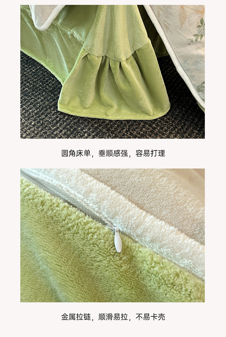 (总)诺梵家纺 2025直播7斤牛奶金貂绒四件套法莱绒珊瑚绒床裙款,爱丽丝,含苞待放,秋意绵绵,花海绿,欢喜,秘境,幸福树粉,幸福树黄,悠闲时光(有三件套),花的海洋,卡洛斯