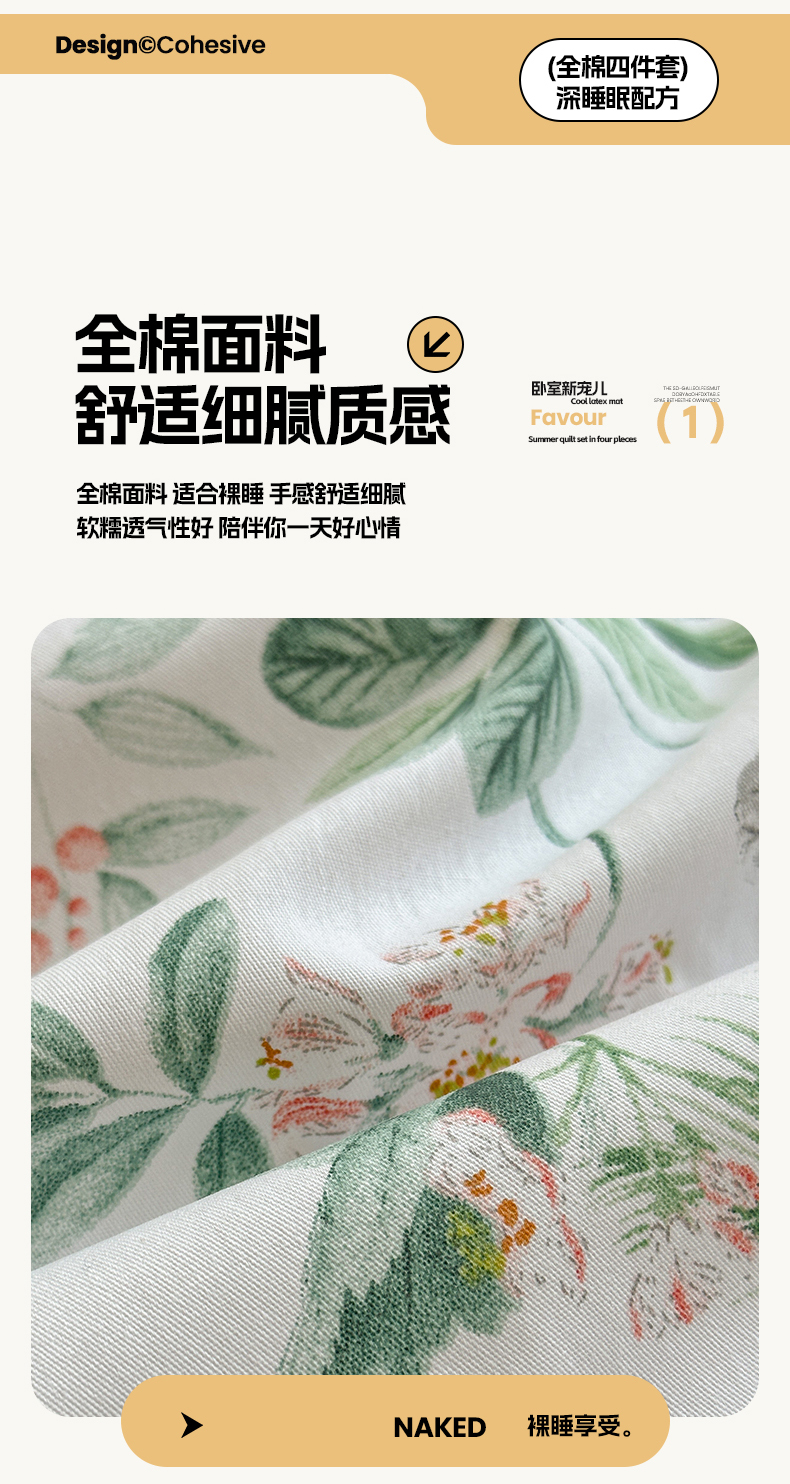 商品名称:沐棉家居 2025新款全棉印花四件套 淡香花语