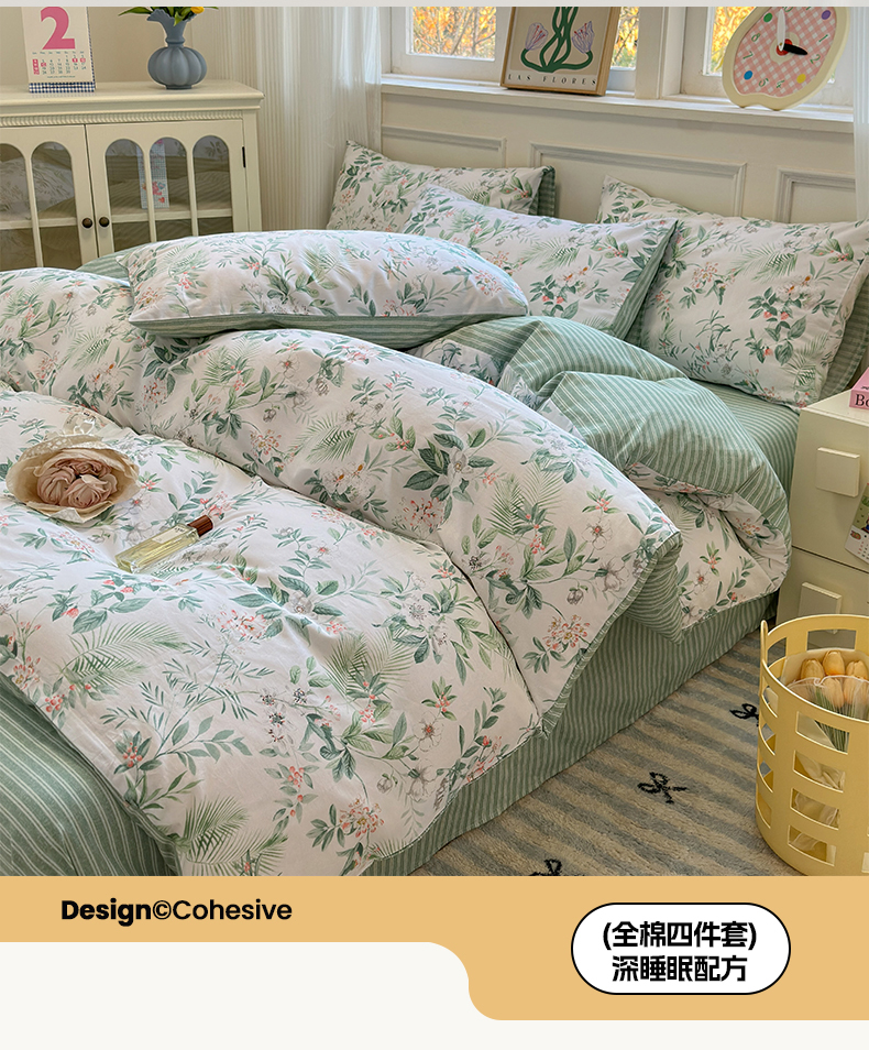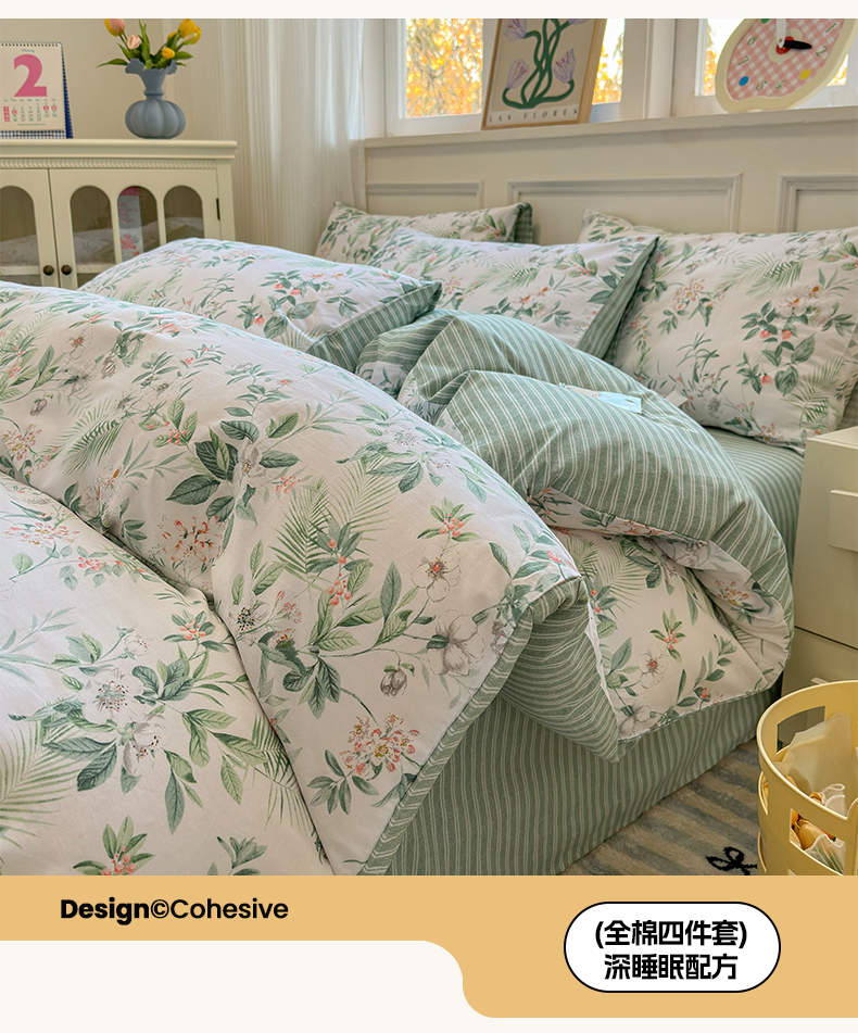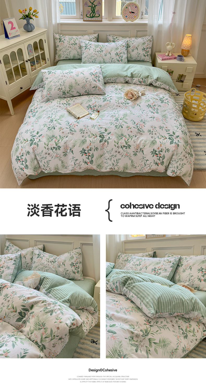 沐棉家居 2025新款全棉印花四件套 淡香花语