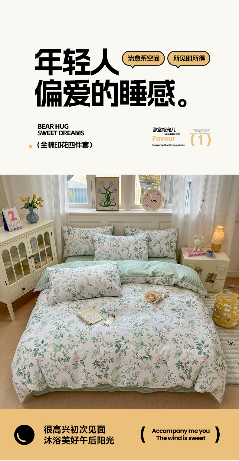 (总)沐棉家居 2025新款全棉印花四件套,安娜花园,春风慕颜,春色满园,淡香花语,蝴蝶结,花梦,可爱熊猫,露丝,嘻嘻兔,幸福小兔,优雅花朵,紫花小羊,紫藤蔓蔓