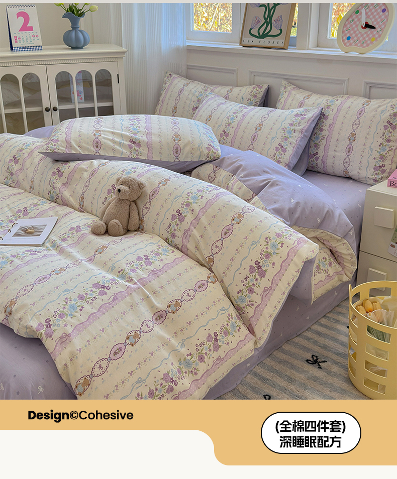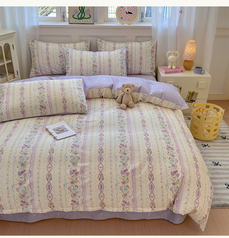 沐棉家居 2025新款全棉印花四件套 紫藤蔓蔓