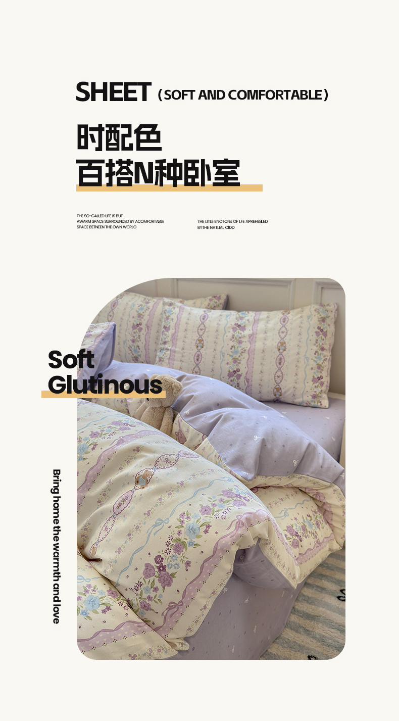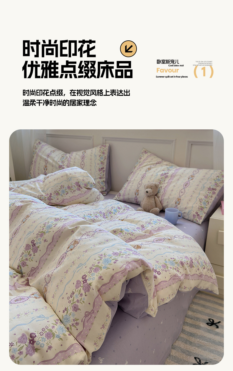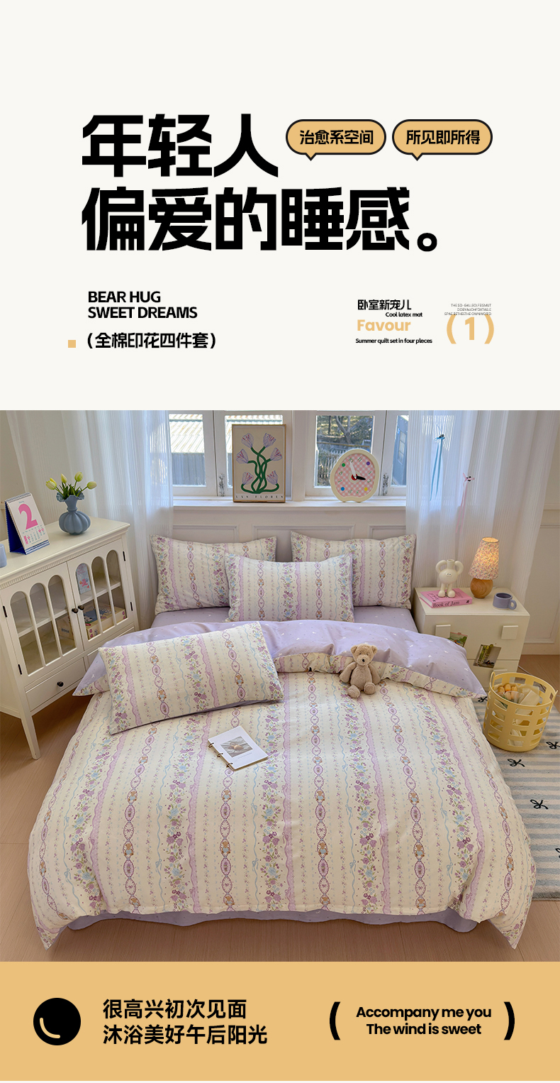 (总)沐棉家居 2025新款全棉印花四件套,安娜花园,春风慕颜,春色满园,淡香花语,蝴蝶结,花梦,可爱熊猫,露丝,嘻嘻兔,幸福小兔,优雅花朵,紫花小羊,紫藤蔓蔓
