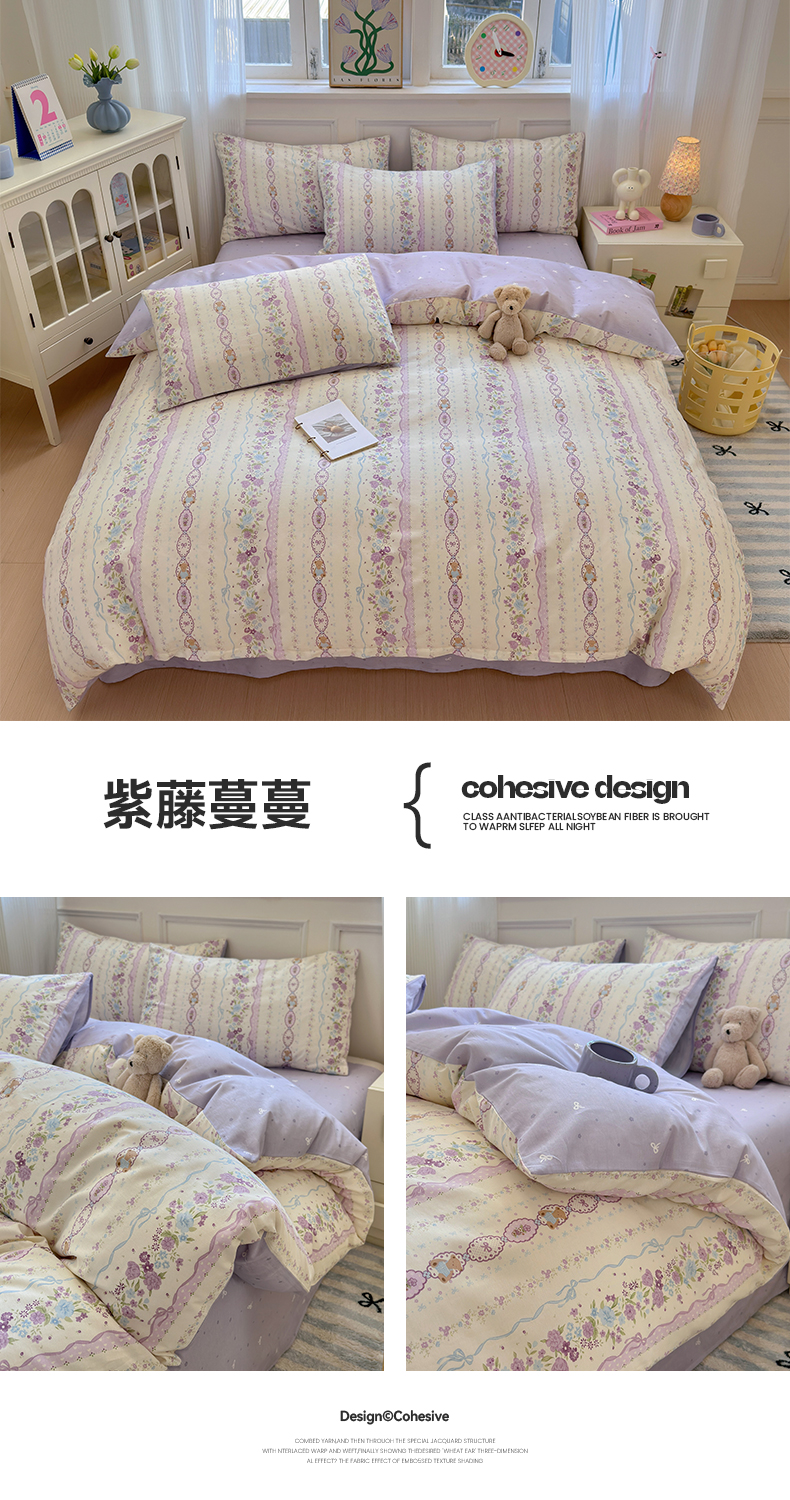 商品名称:沐棉家居 2025新款全棉印花四件套 紫藤蔓蔓