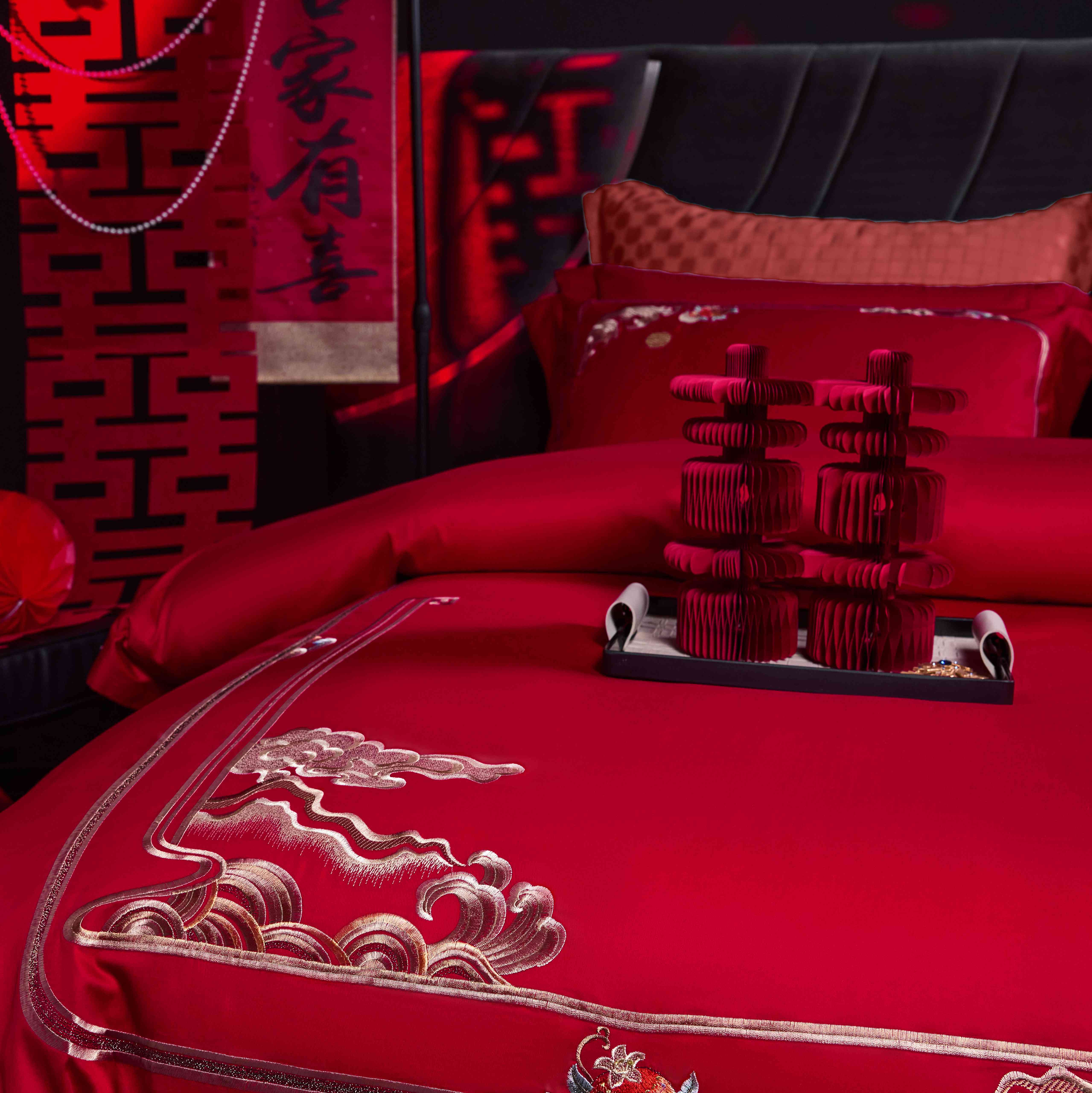2025新款纯棉贡缎刺绣婚庆系列四件套 婚庆-龙凤呈祥