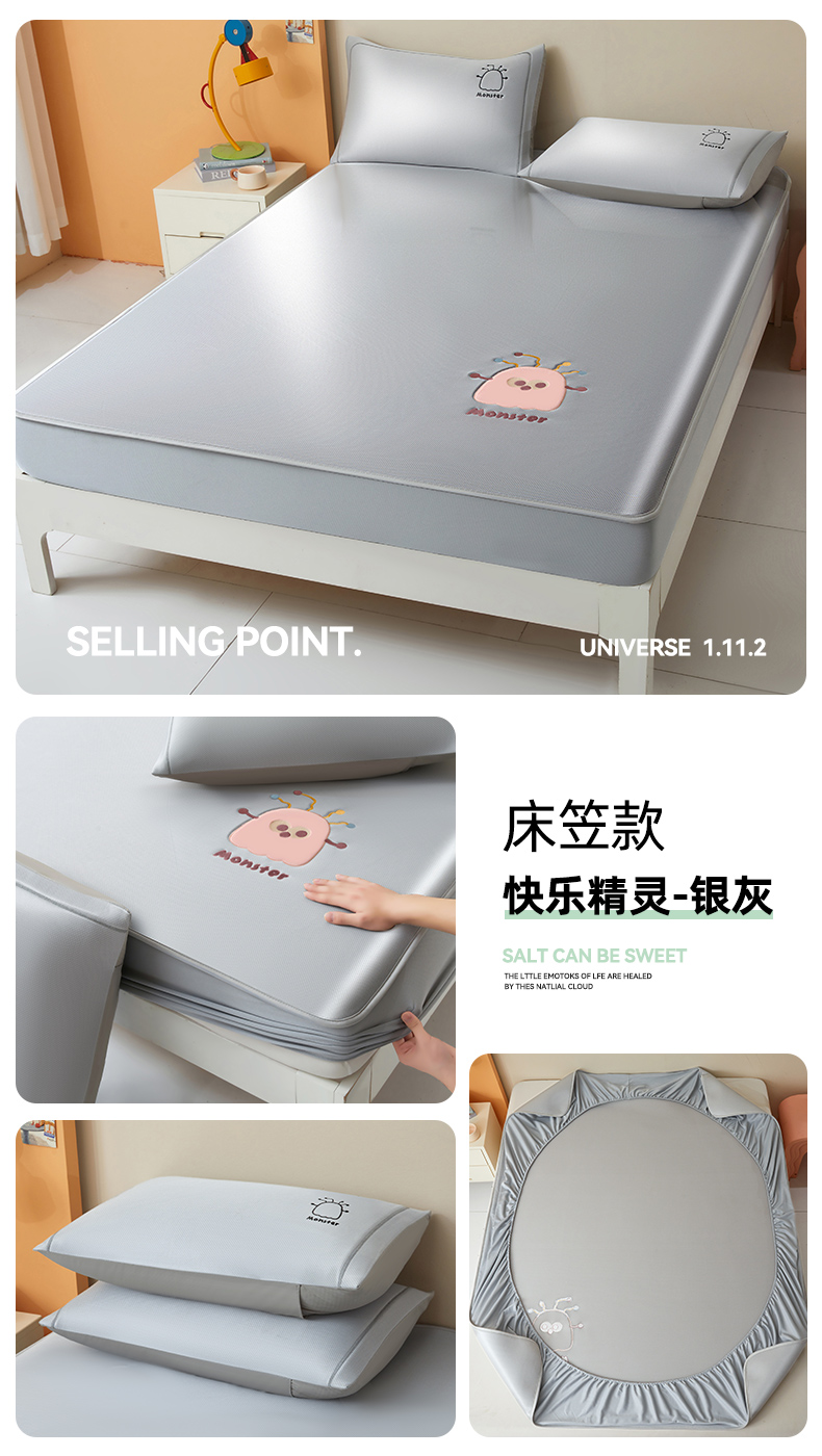 当前位置: 91家纺网 > 商品网购 > 床上用品 > 凉席 > 冰丝席 > 全季家居 2025新款5A抗菌碳光卡通贴布系列冰丝席 床笠款-快乐精灵-银灰