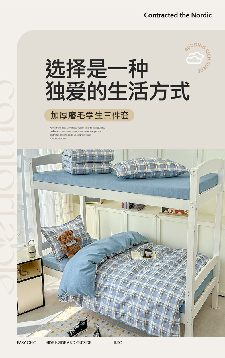 当前位置: 91家纺网 > 商品网购 > 床品套件 > 三件套 > 鑫宇 2025新款磨毛130g加厚学生宿舍三件套床单床笠款学生上下铺六件套 亚里士