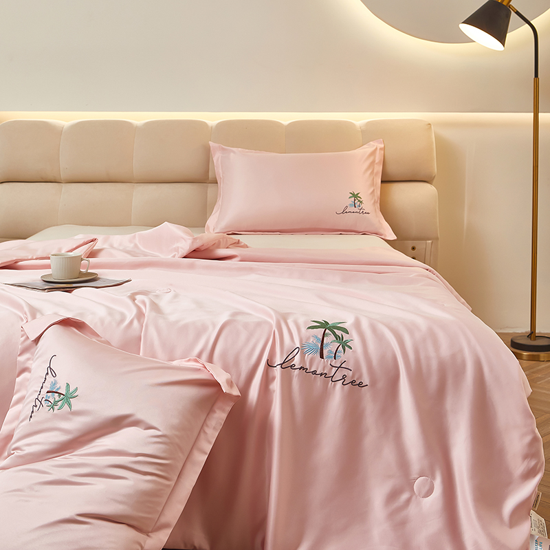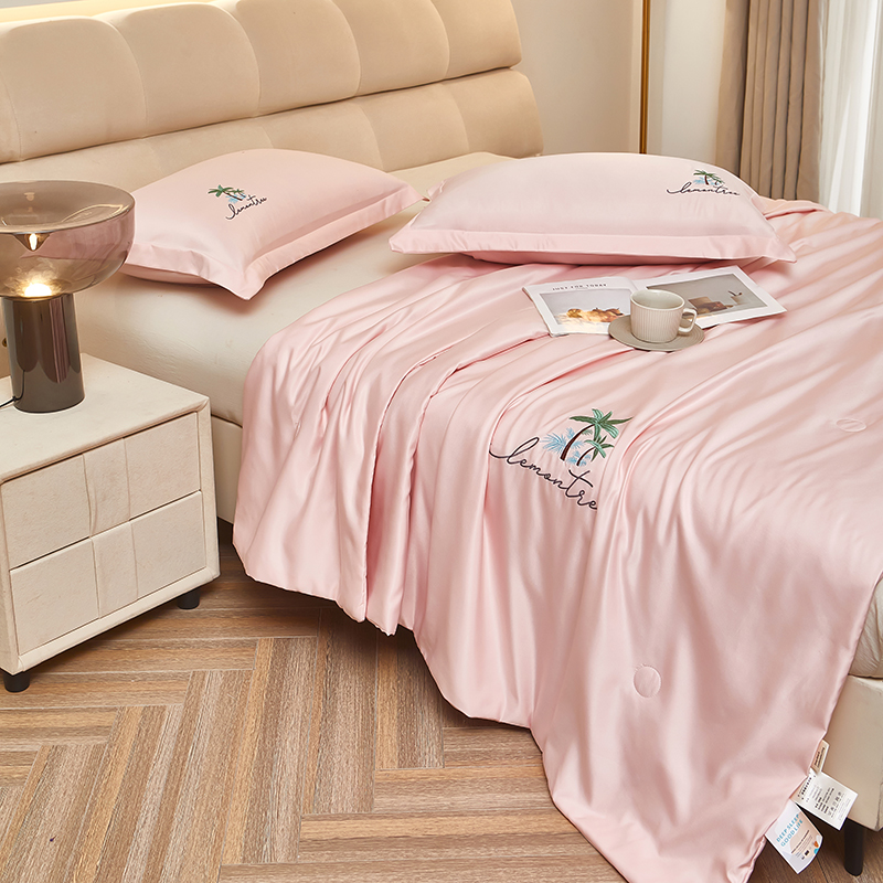 商品名称:圣比熊 2025新款刺绣款凉感丝夏被冰丝夏凉空调被被子被芯 嫩粉