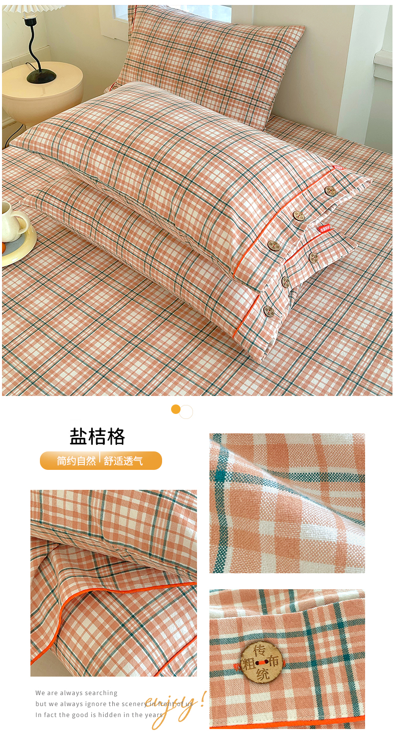 商品名称:春皖家纺 2025新款全棉色织密拷老粗布系列-单枕套 盐桔格