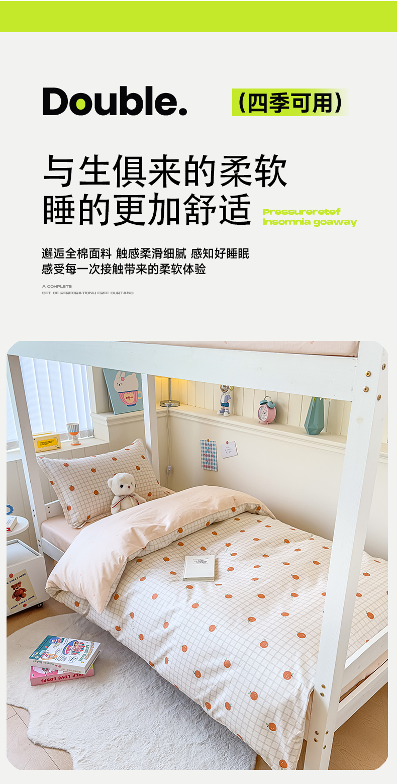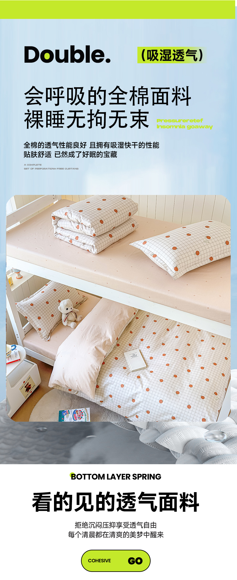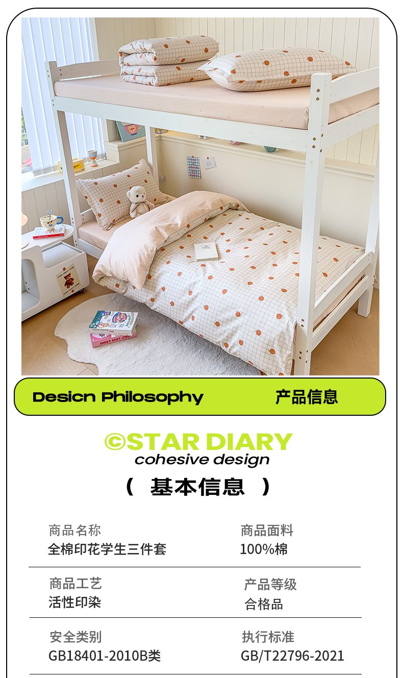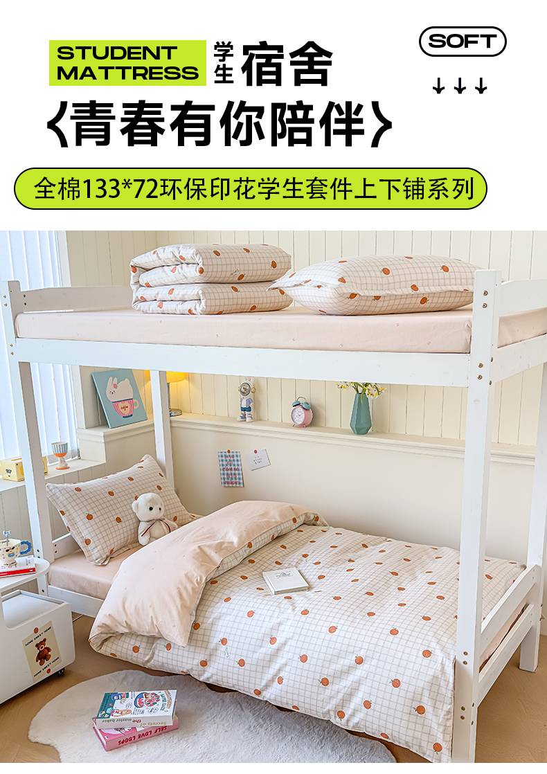 当前位置: 91家纺网 > 商品网购 > 床品套件 > 三件套 > 鑫宇 2025新款全棉纯棉13372宽幅学生上下铺三件套 秋实