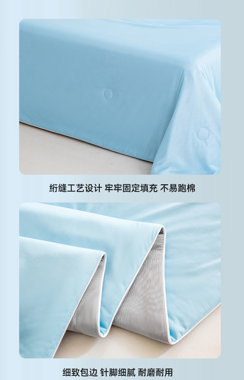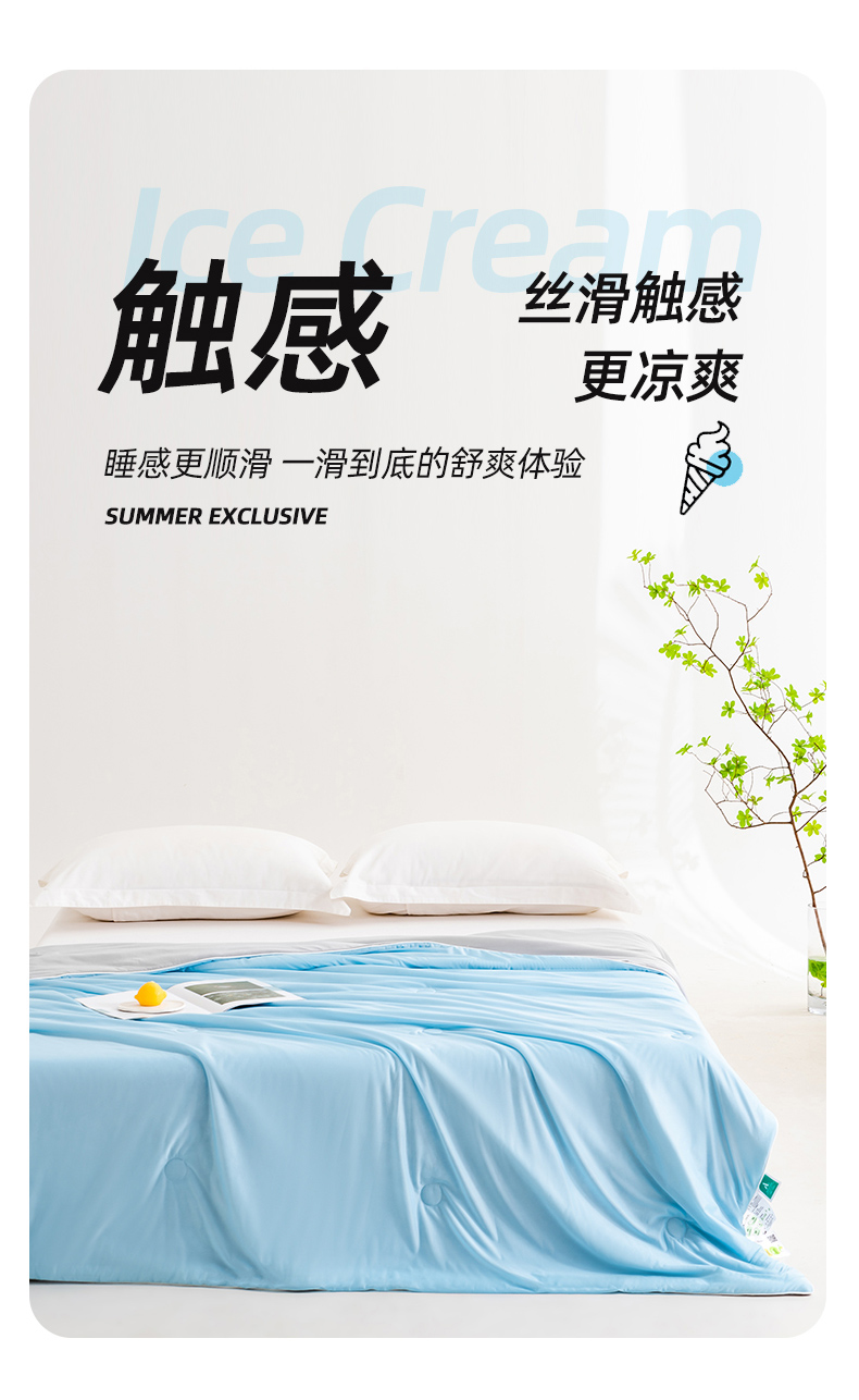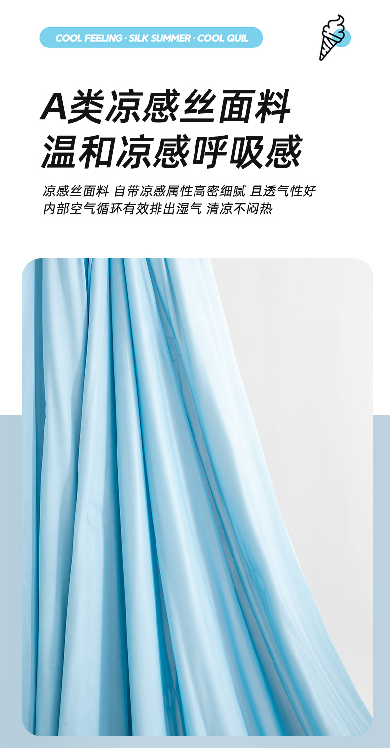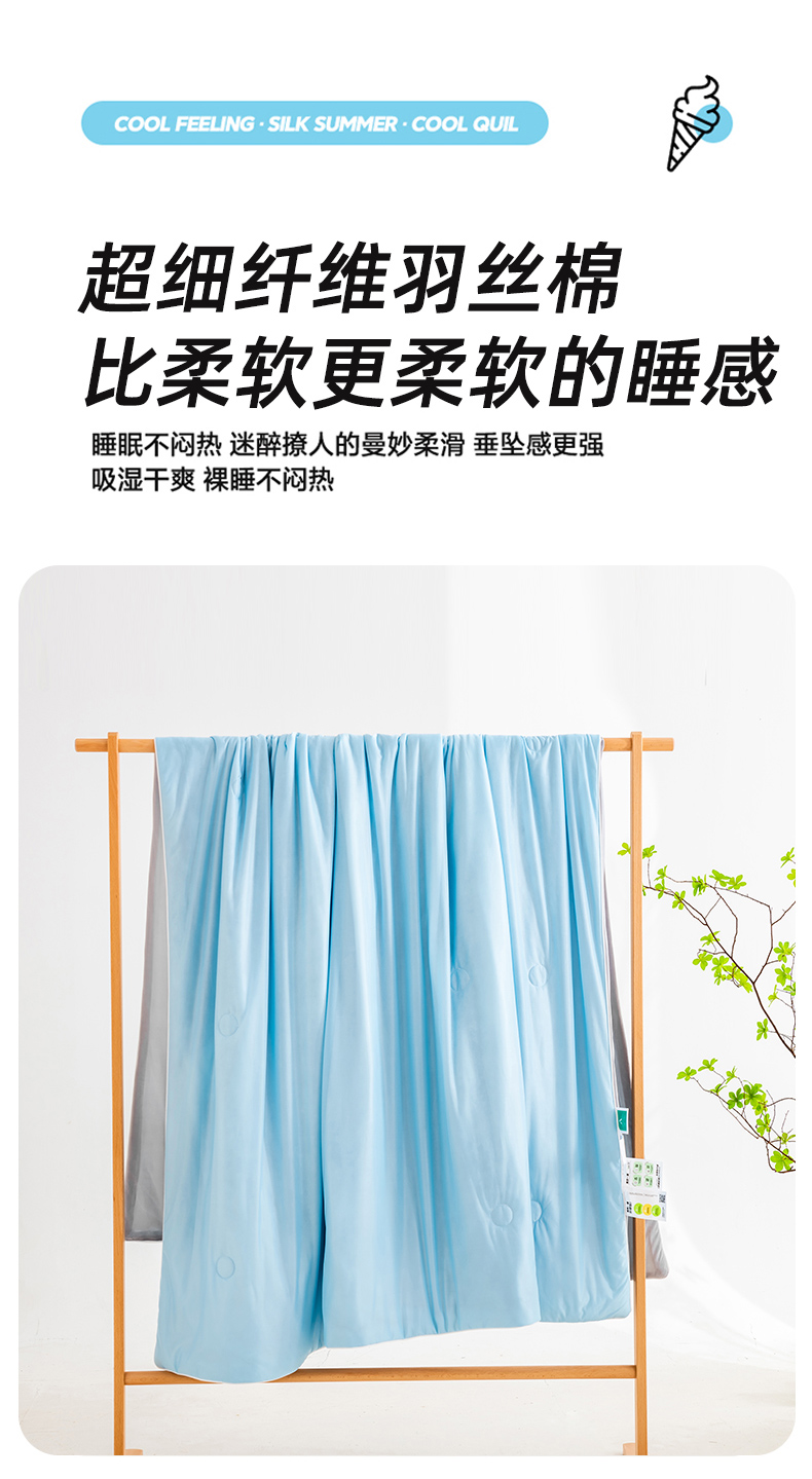 商品名称:莱家富 2025新款A类云母凉感丝冰淇淋夏被天丝瓜瓜夏被夏凉被空调被 月光蓝+灰