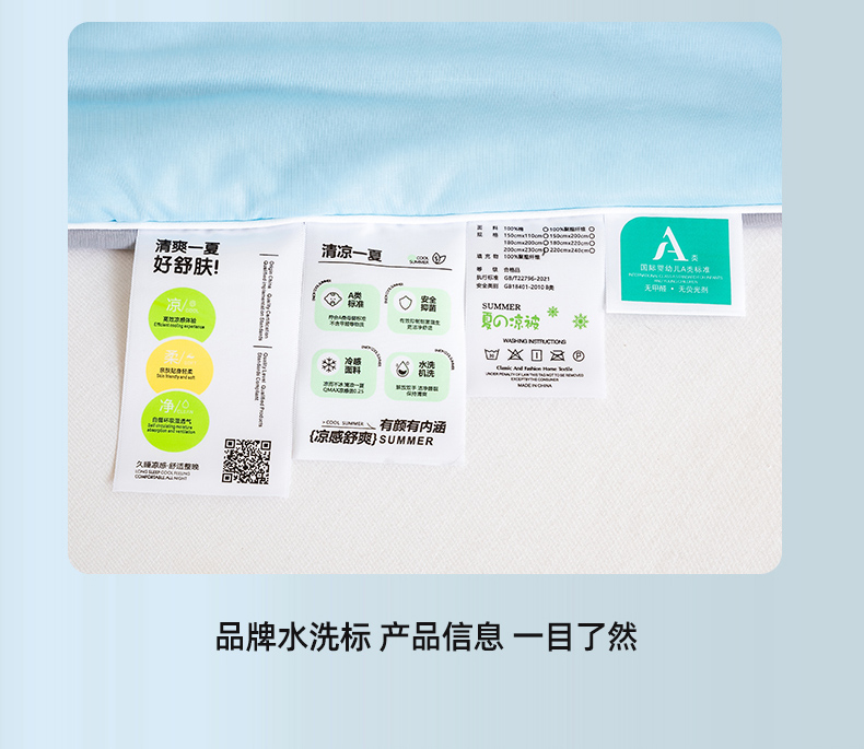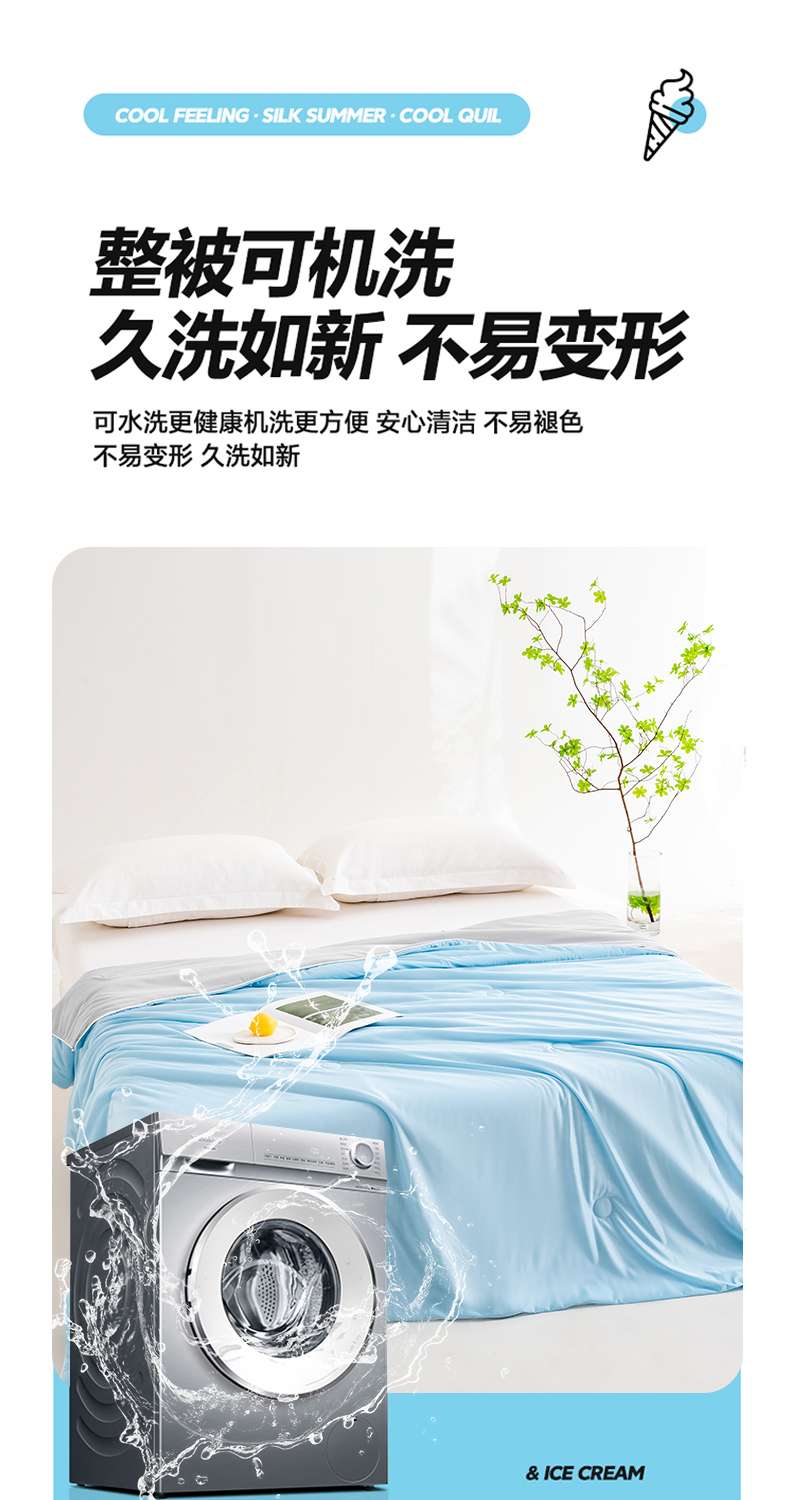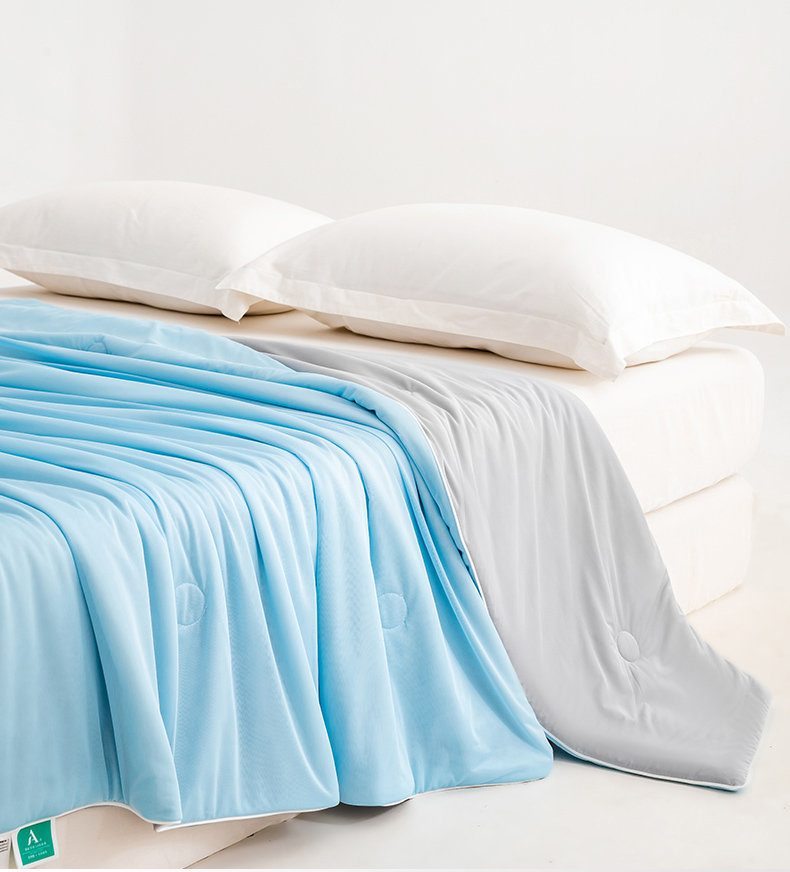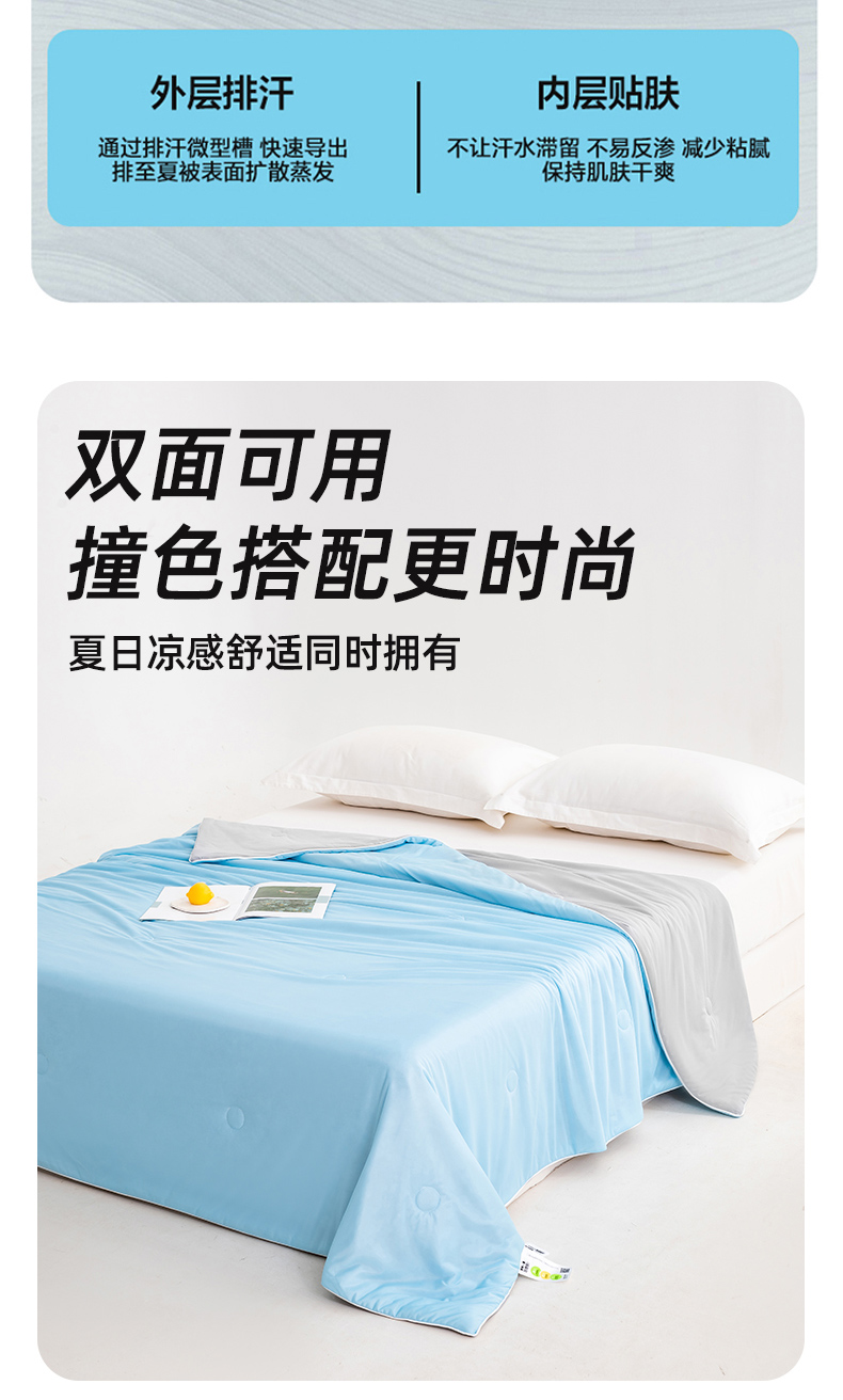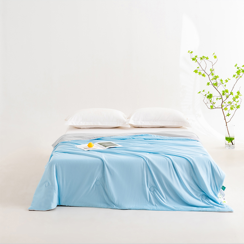 商品名称:莱家富 2025新款A类云母凉感丝冰淇淋夏被天丝瓜瓜夏被夏凉被空调被 月光蓝+灰