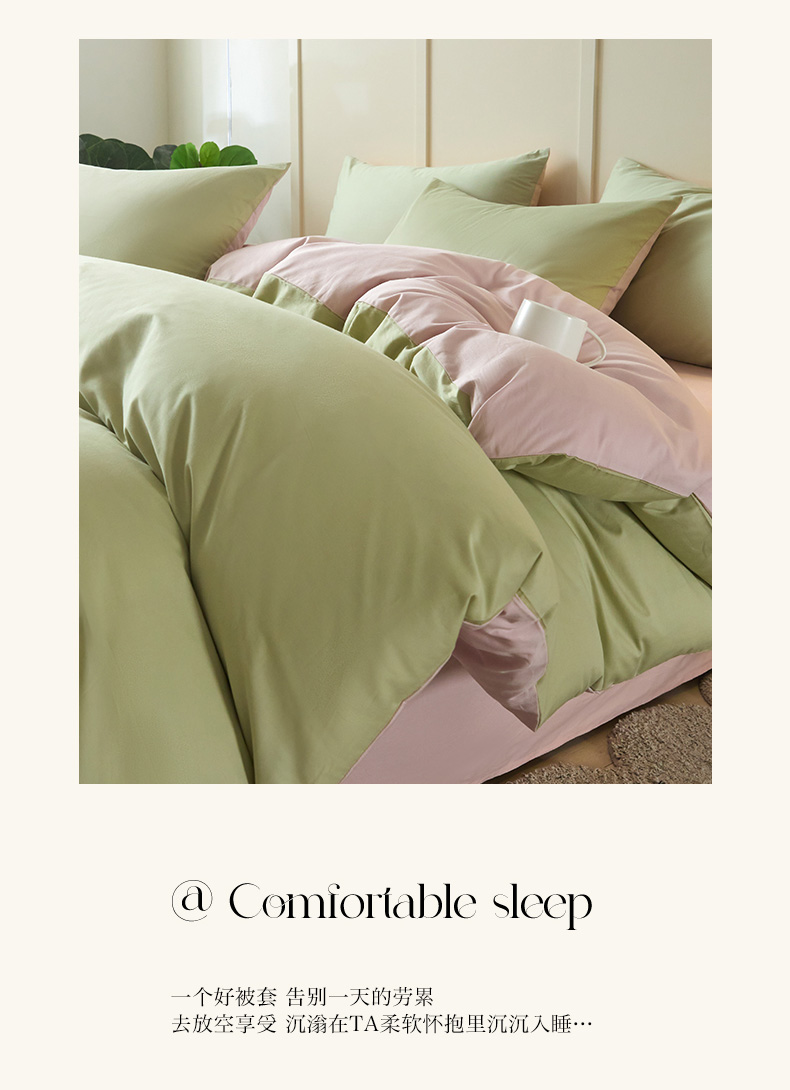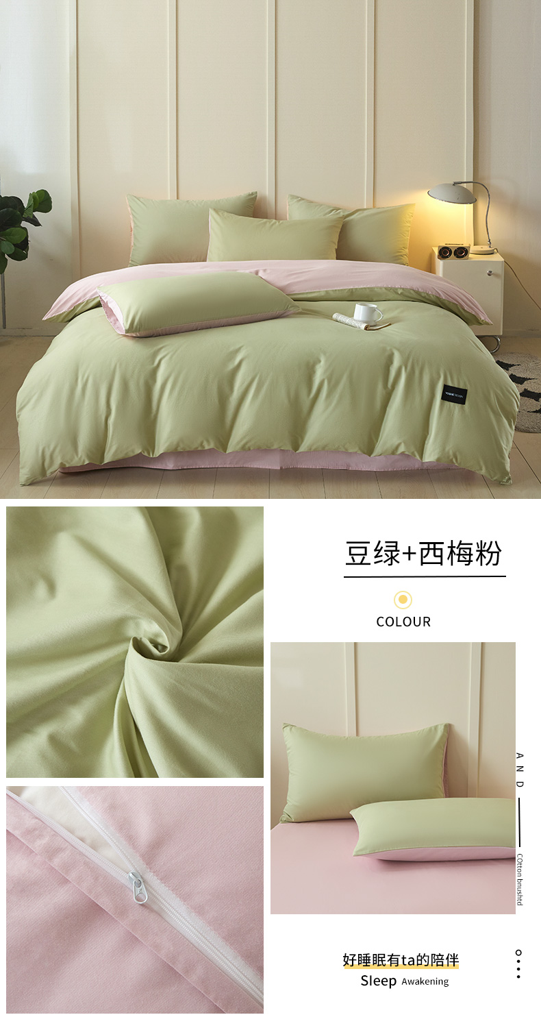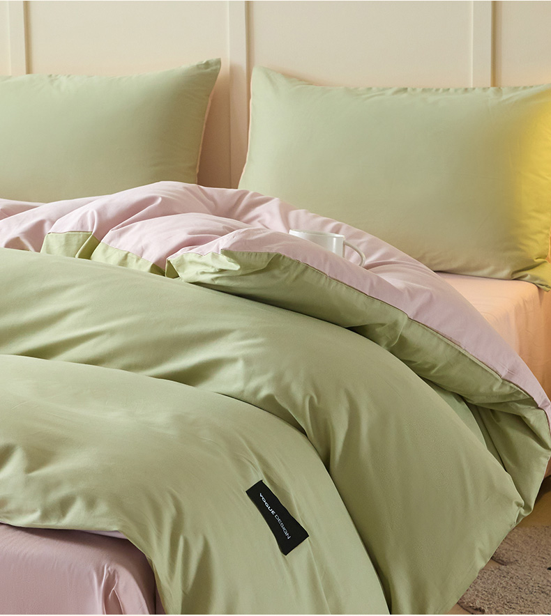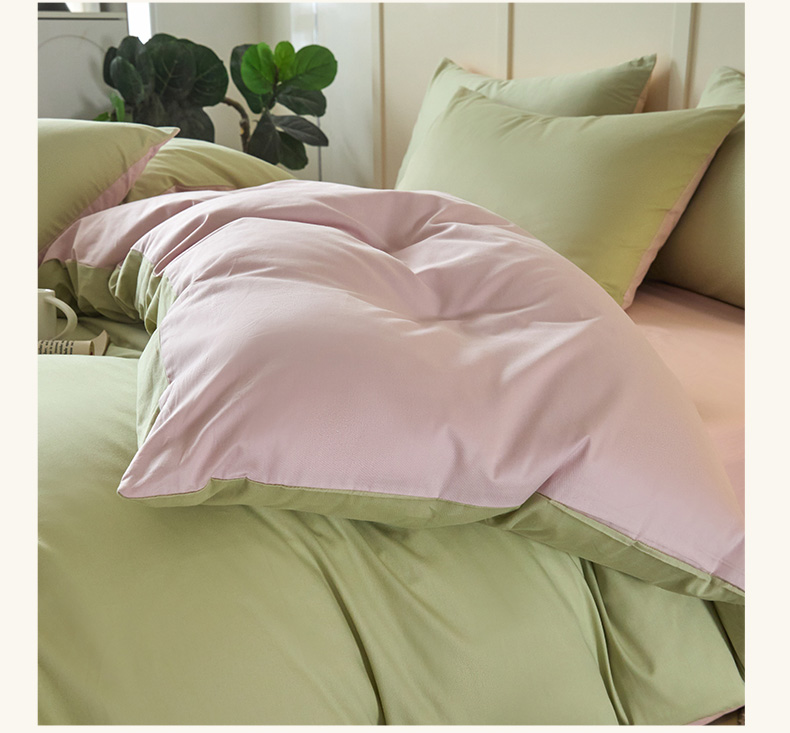 商品名称:乐美家纺 2025新款全棉双拼单被套 豆绿+西梅粉