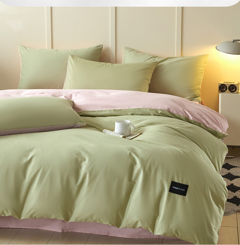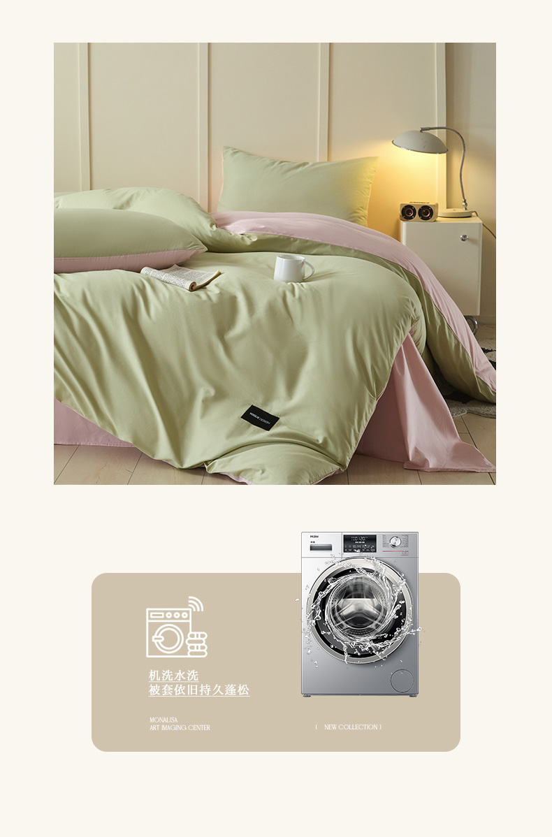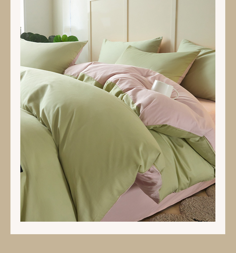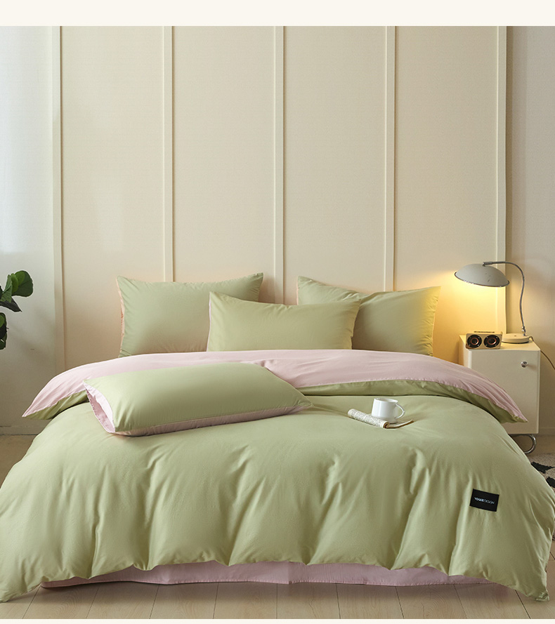 商品名称:乐美家纺 2025新款全棉双拼单被套 豆绿+西梅粉