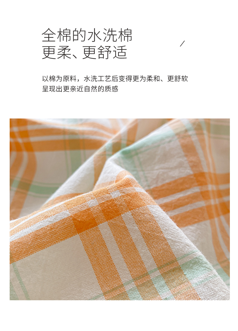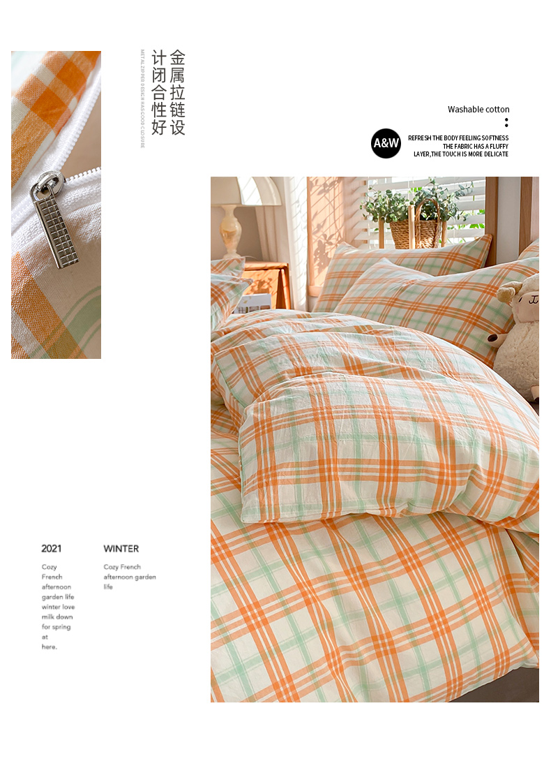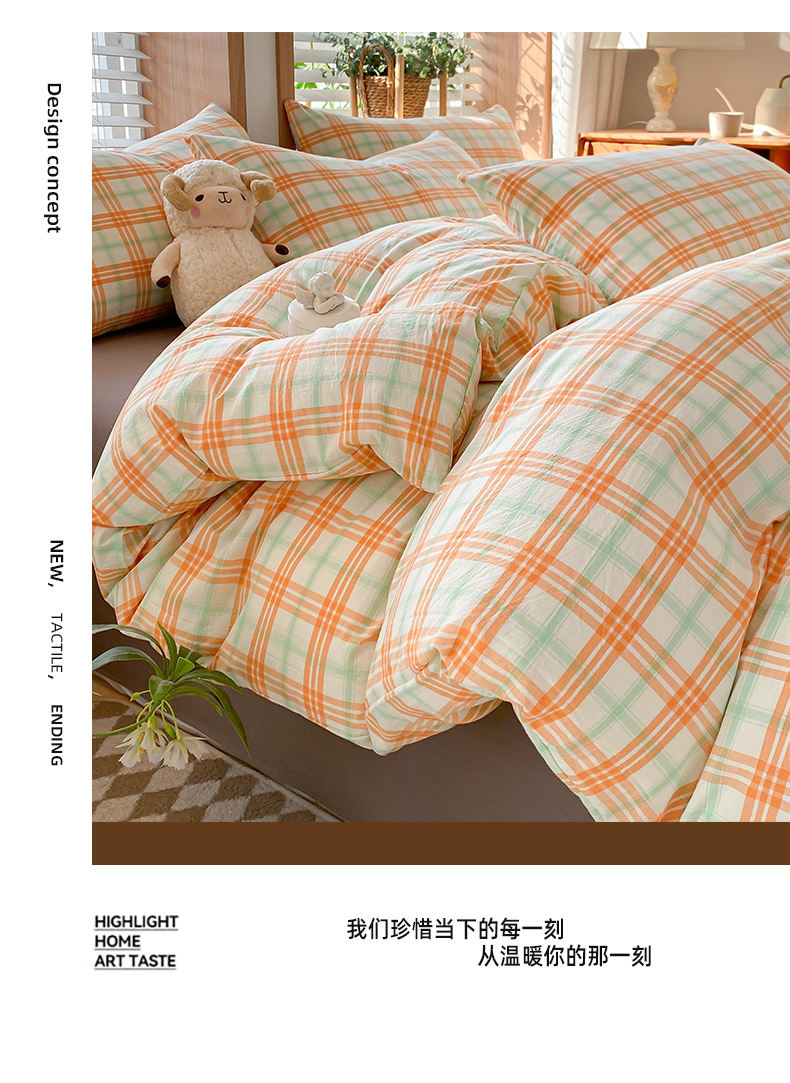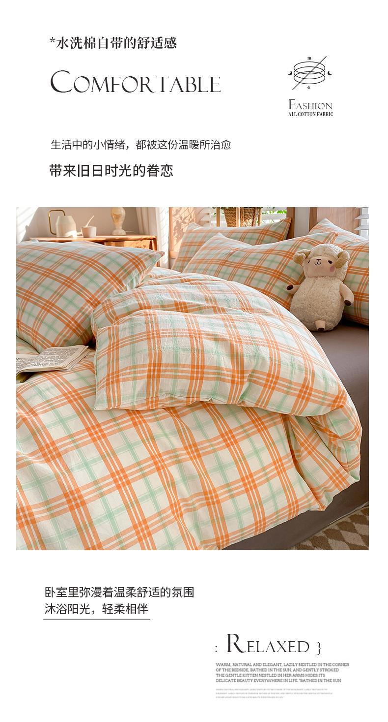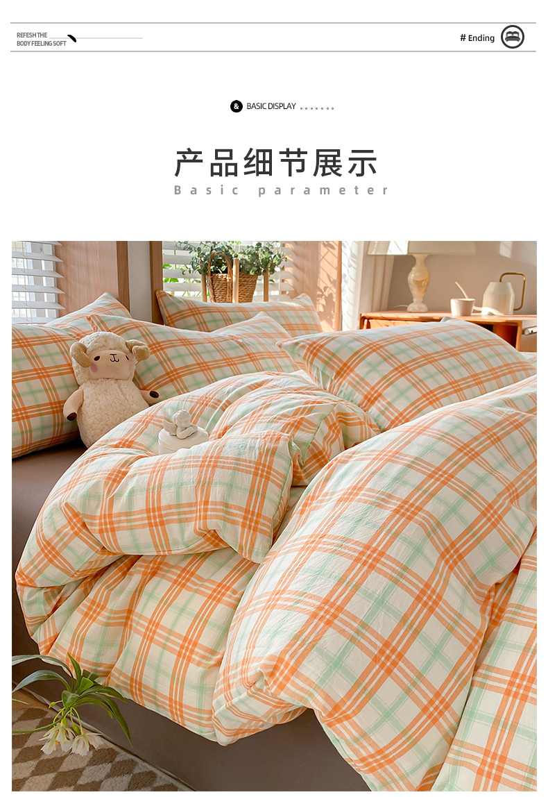 当前位置: 91家纺网 > 商品网购 > 床品套件 > 四件套 > 色织四件套 > 木子家纺 2025新款简约日式40支全棉色织水洗棉四件套 梵希-桔