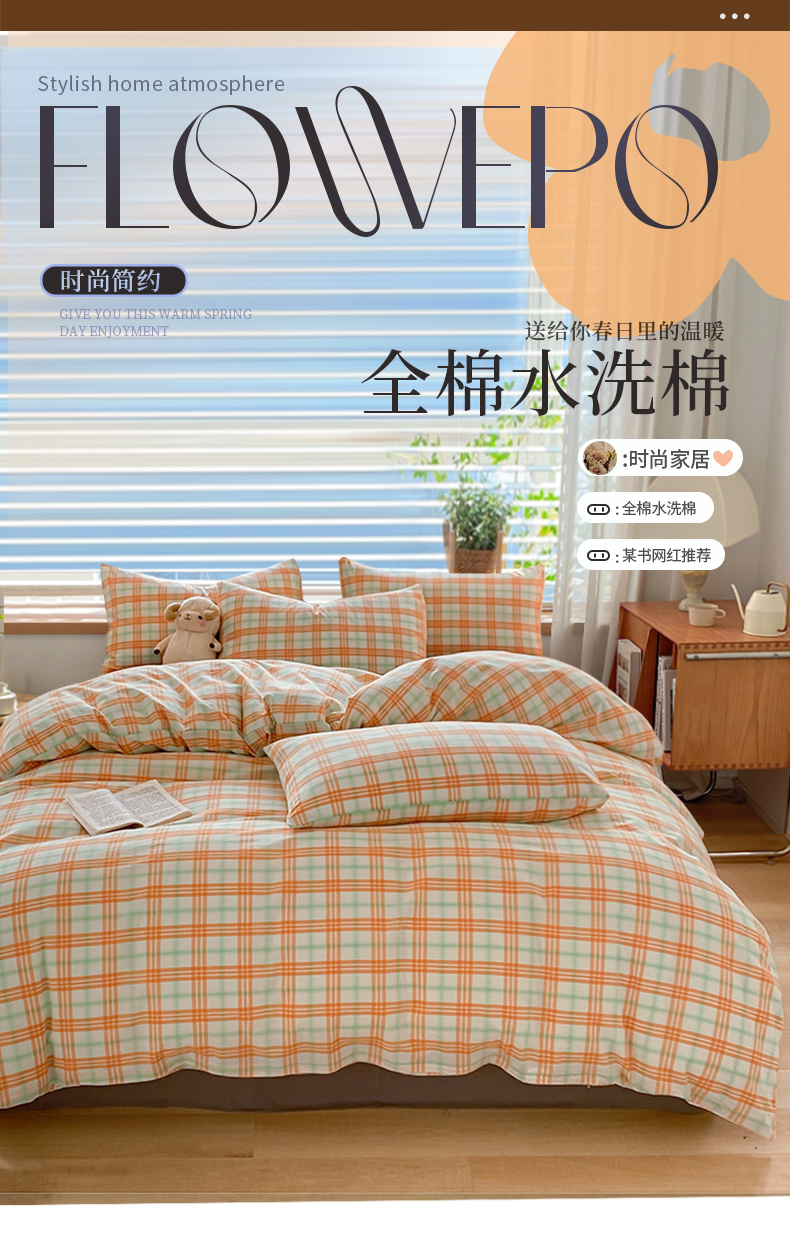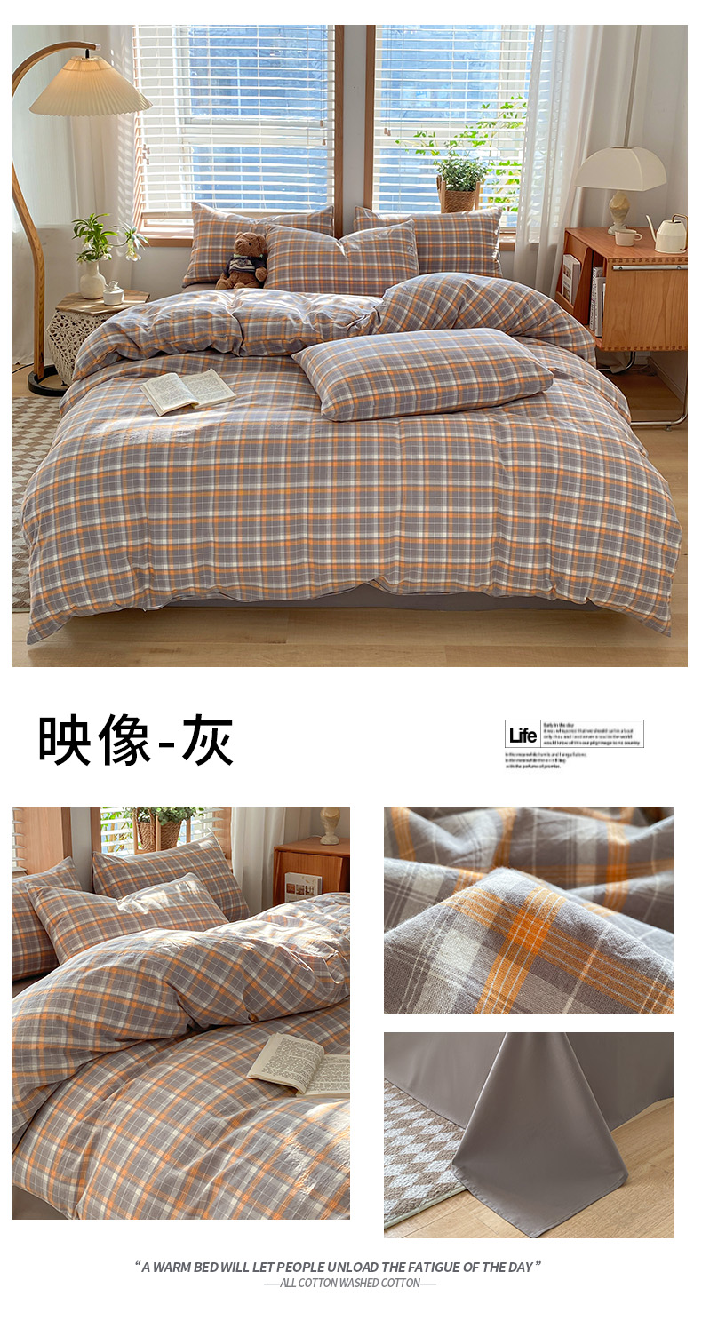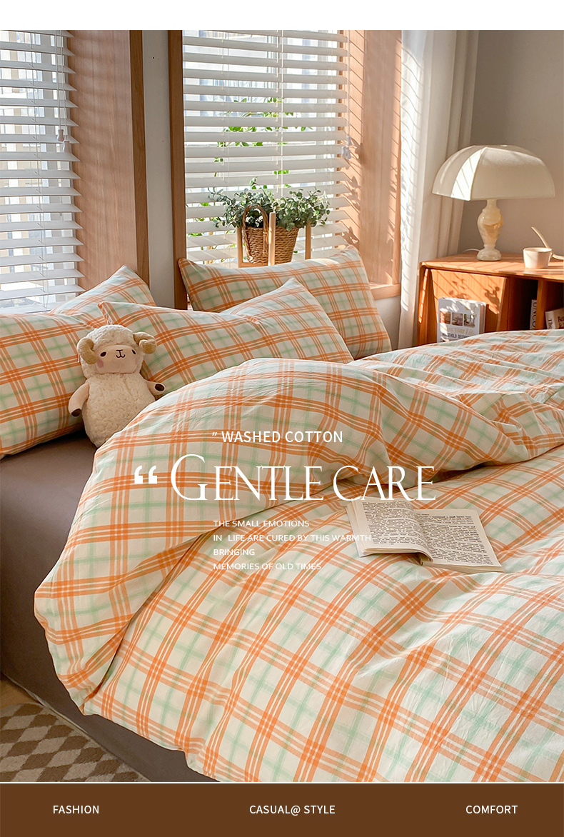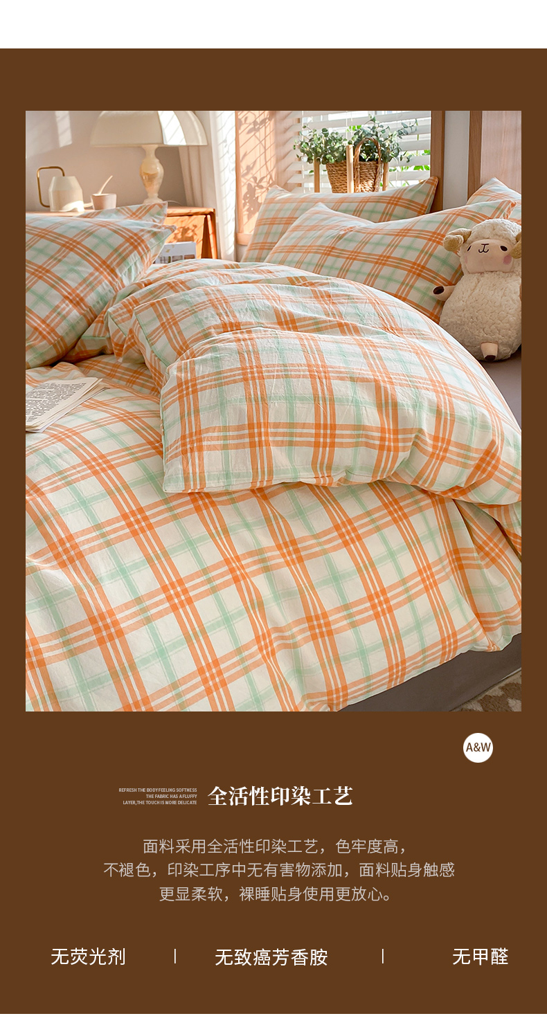 当前位置: 91家纺网 > 商品网购 > 床品套件 > 四件套 > 色织四件套 > 木子家纺 2025新款简约日式40支全棉色织水洗棉四件套 梵希-桔
