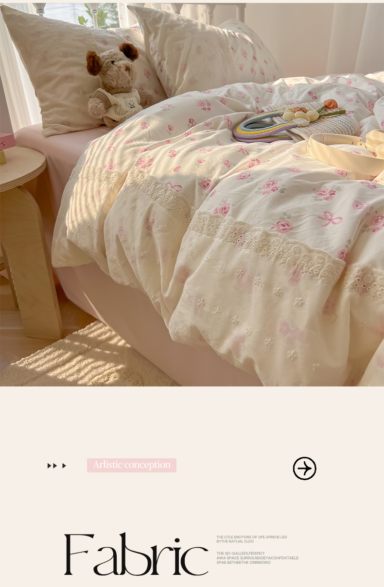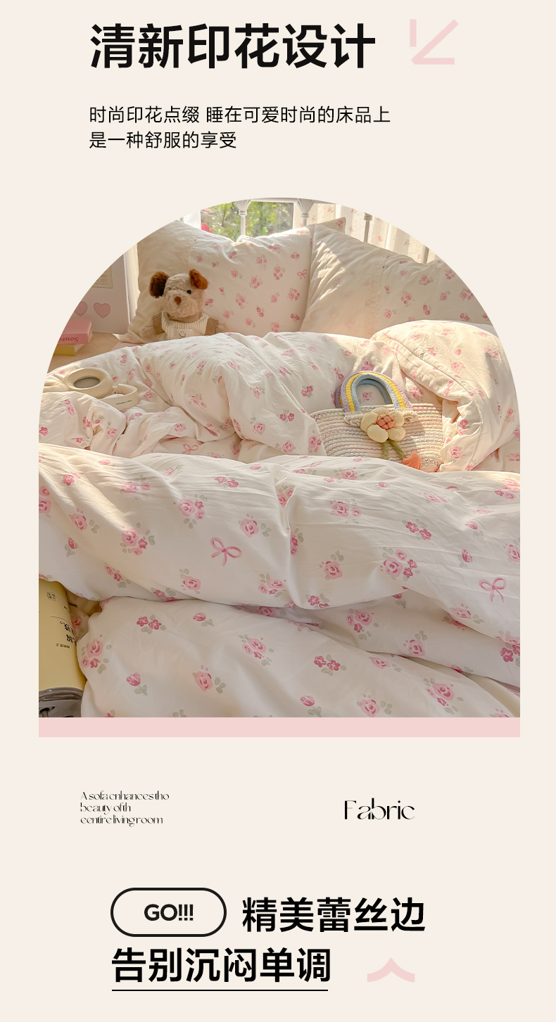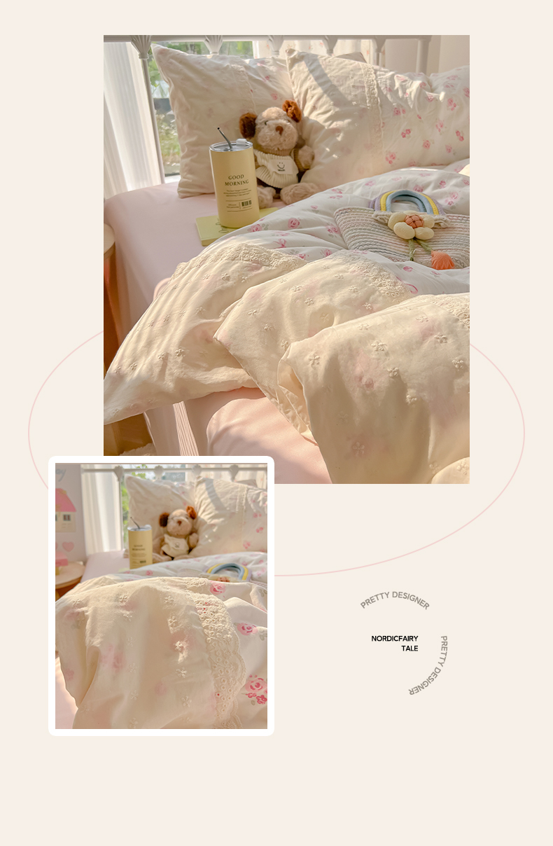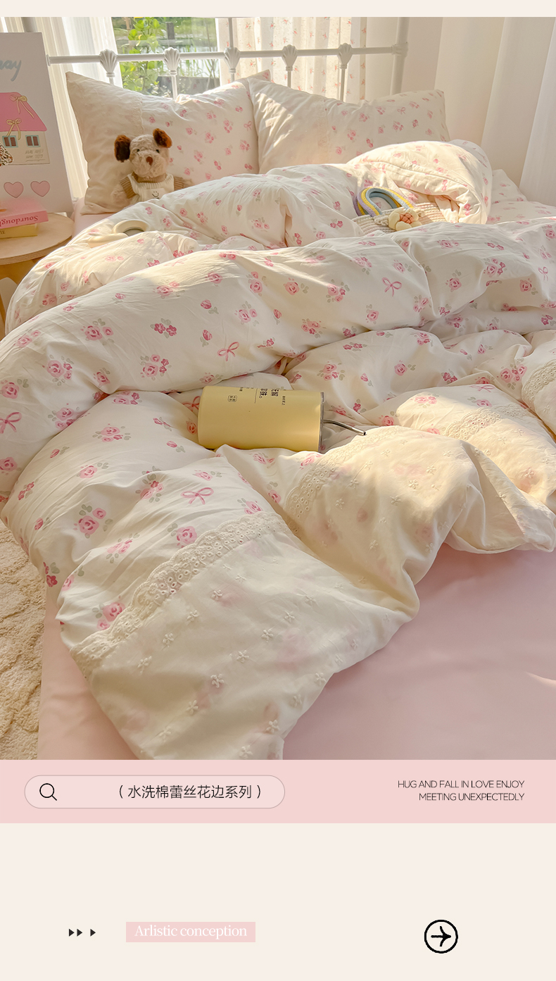 当前位置: 91家纺网 > 商品网购 > 床品套件 > 四件套 > 其它四件套 > 韩巢家纺 2025新款法式蕾丝花边被套直播热销款四件套学生宿舍床上三件套(提供卖家秀) 小花集【蕾丝花边款】