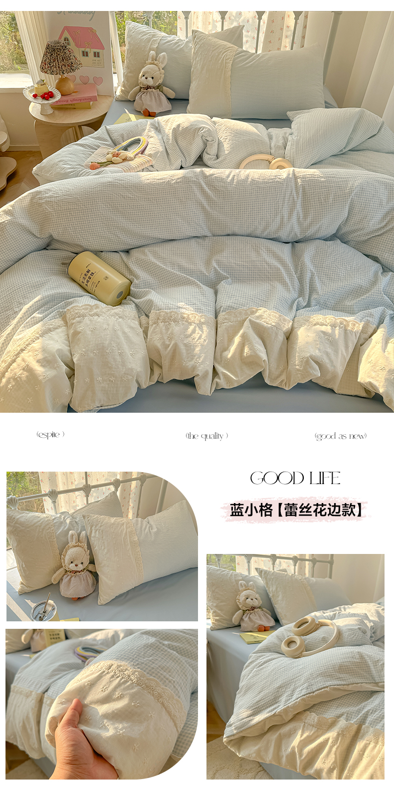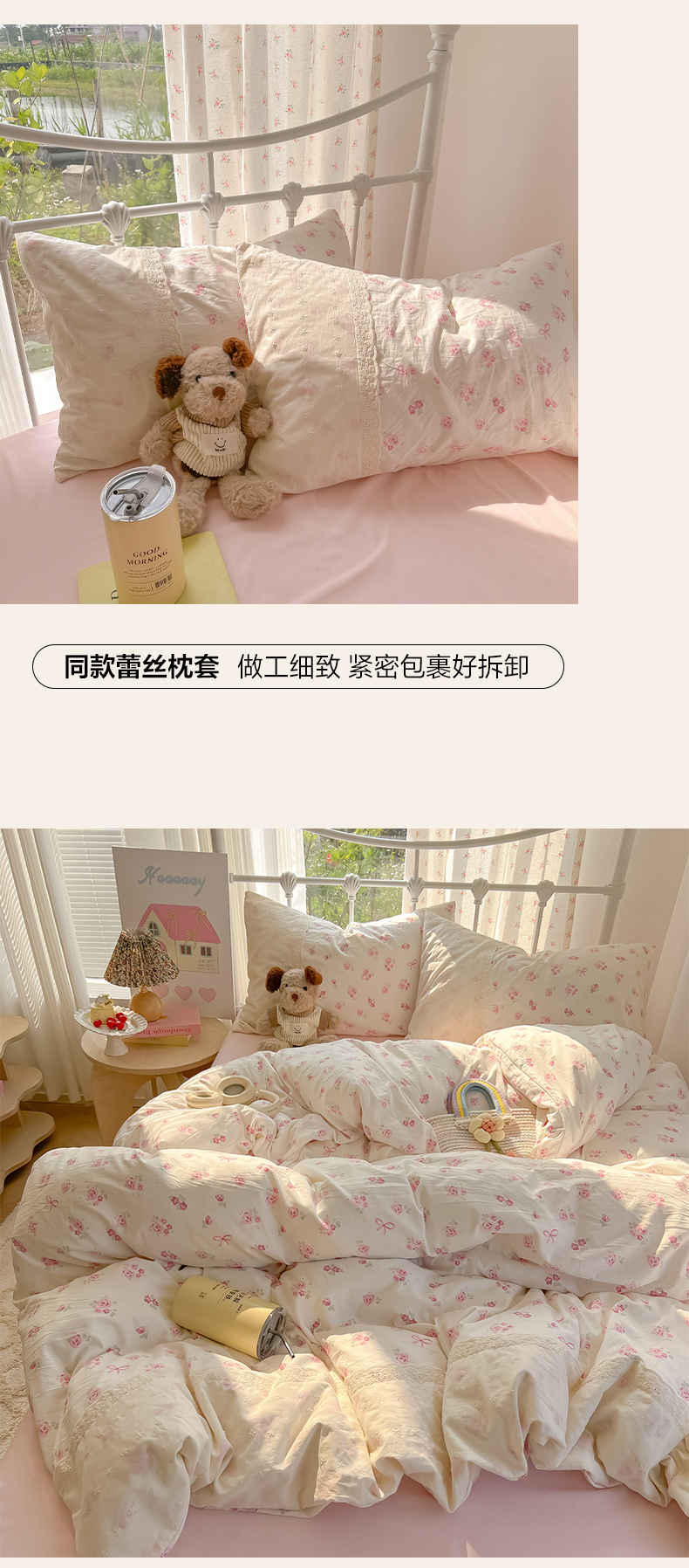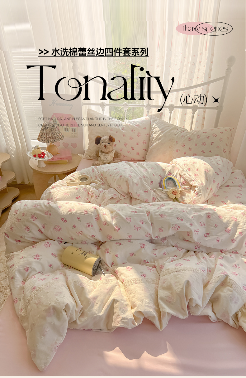 当前位置: 91家纺网 > 商品网购 > 床品套件 > 四件套 > 其它四件套 > 韩巢家纺 2025新款法式蕾丝花边被套直播热销款四件套学生宿舍床上三件套(提供卖家秀) 小花集【蕾丝花边款】