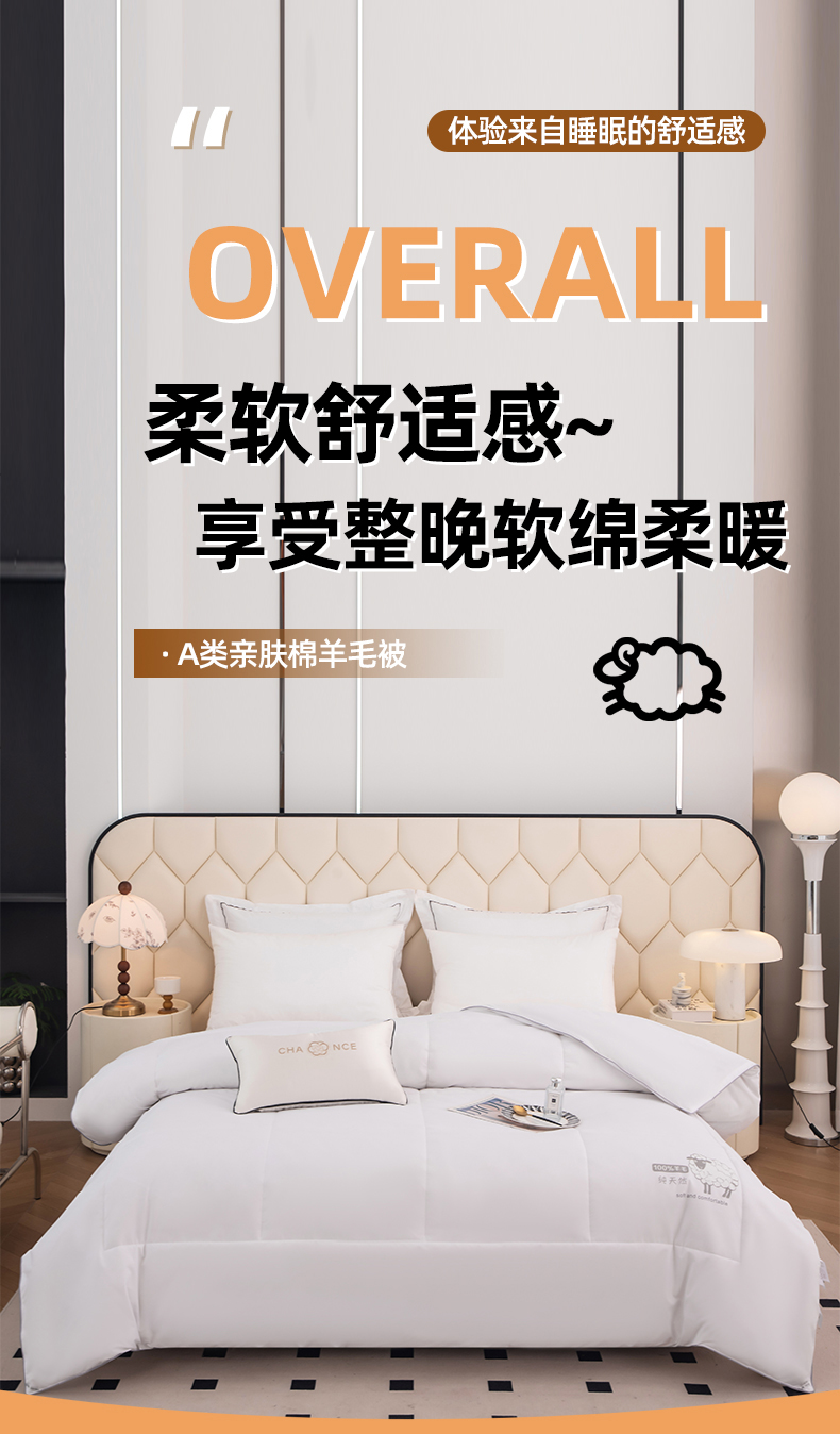 • 91家纺网 家纺一手货源 找家纺  爱宝被业2025新款100%澳洲羊毛被A类亲肤棉羊毛被 奶昔白