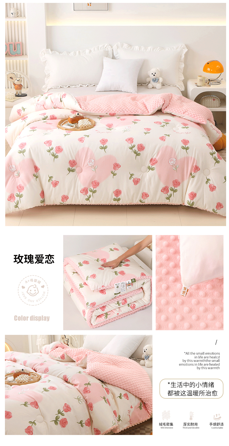 • 91家纺网 家纺一手货源 找家纺 乐沐 2025新款A类水洗棉双层纱豆豆绒被芯 玫瑰爱恋