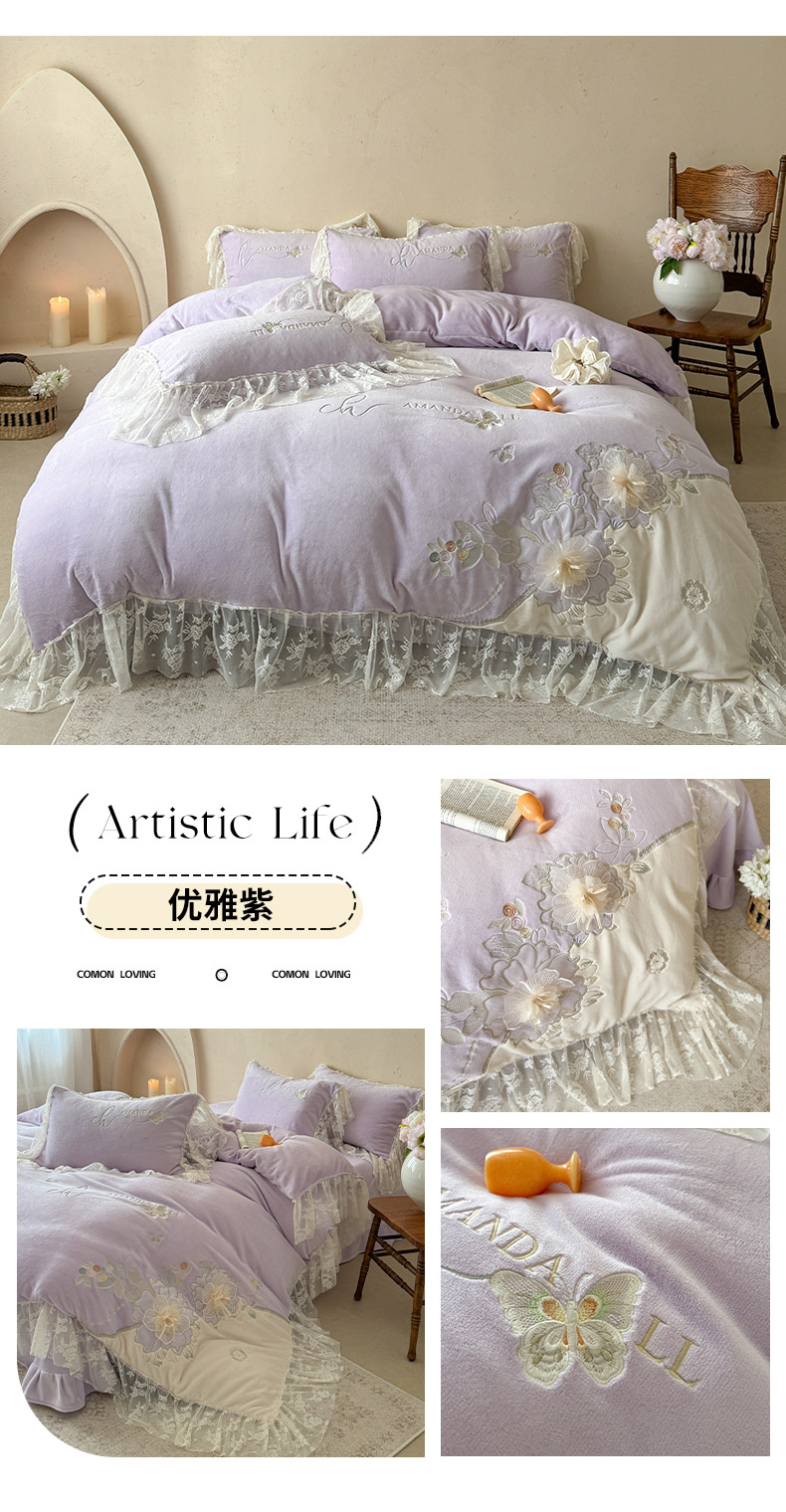 (总)可以家居 2025新款高克重全消光超细旦奶芙云绒四件套-玛利亚系列-莱卡芙,贵族粉,清雅蓝,伯爵绿,优雅紫,粉豆沙
