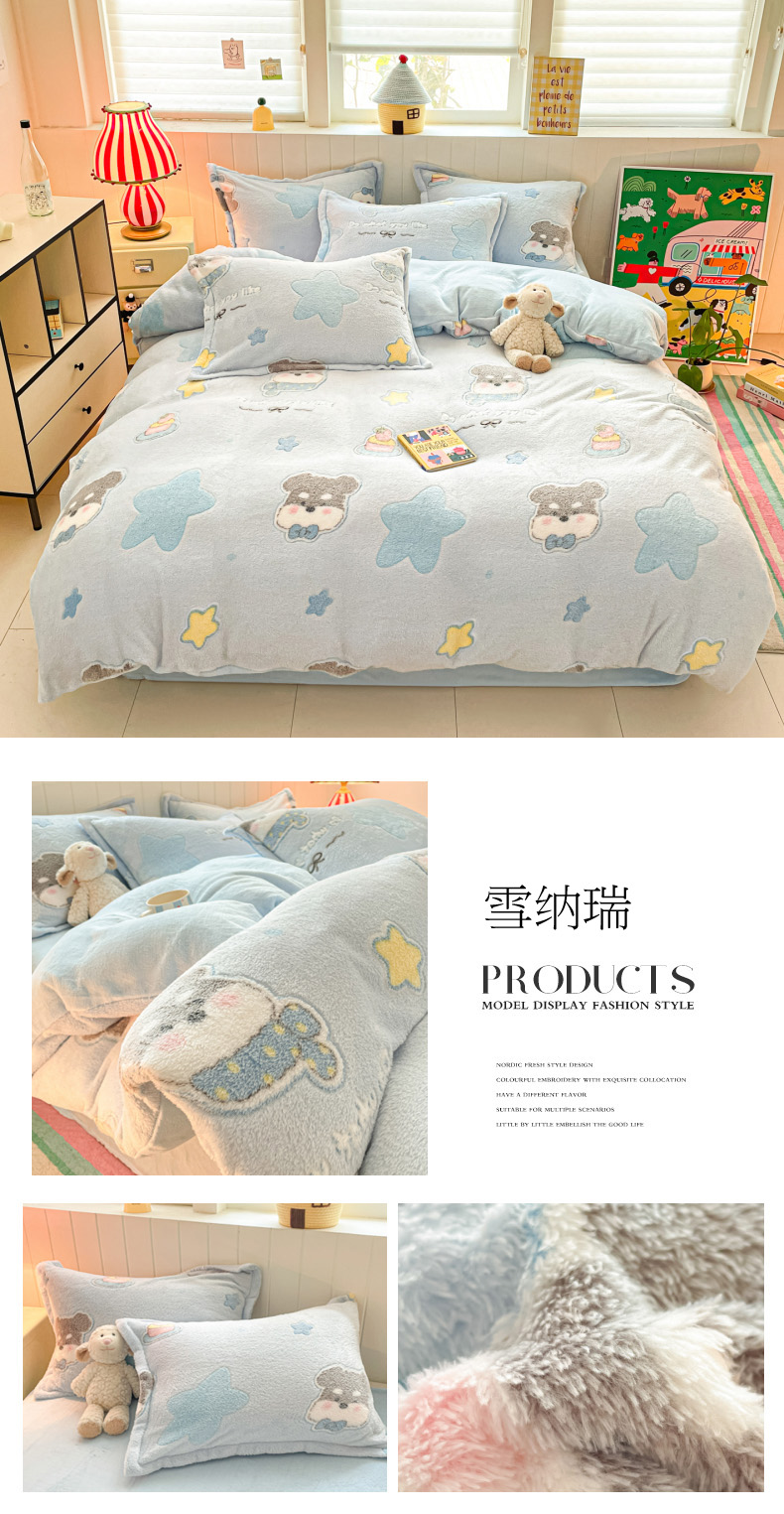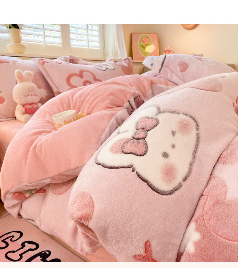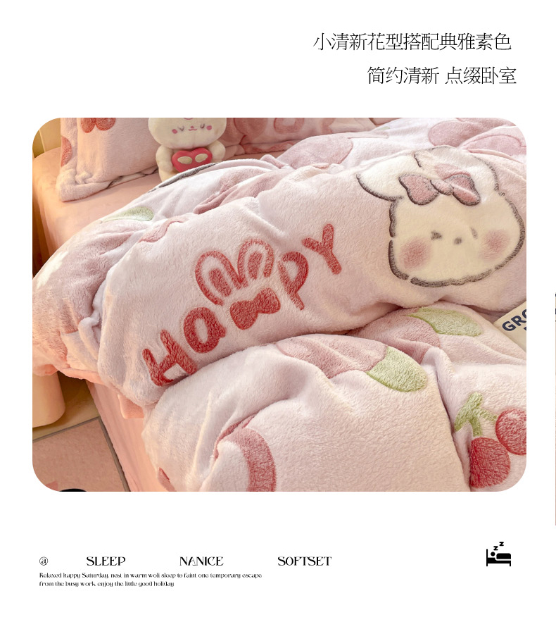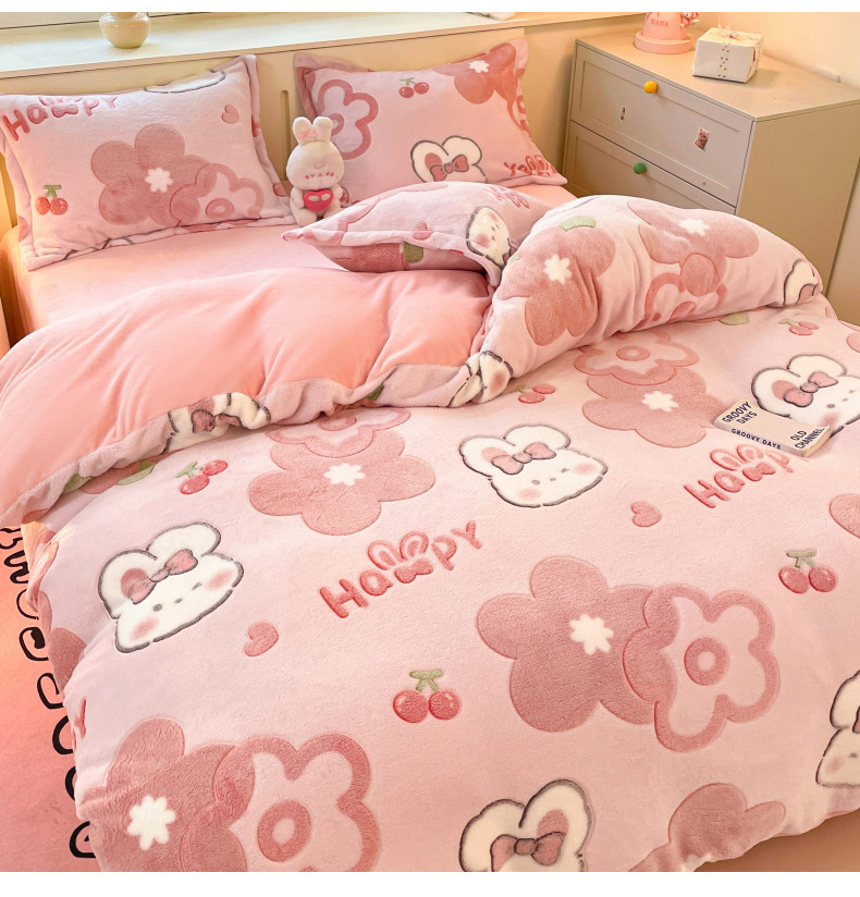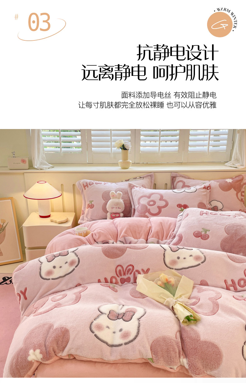 当前位置: 91家纺网 > 商品网购 > 床品套件 > 四件套 > 牛奶绒四件套 > 沐慕 2025新款A类200g加厚雪花绒180g牛奶绒四件套 花花粉兔