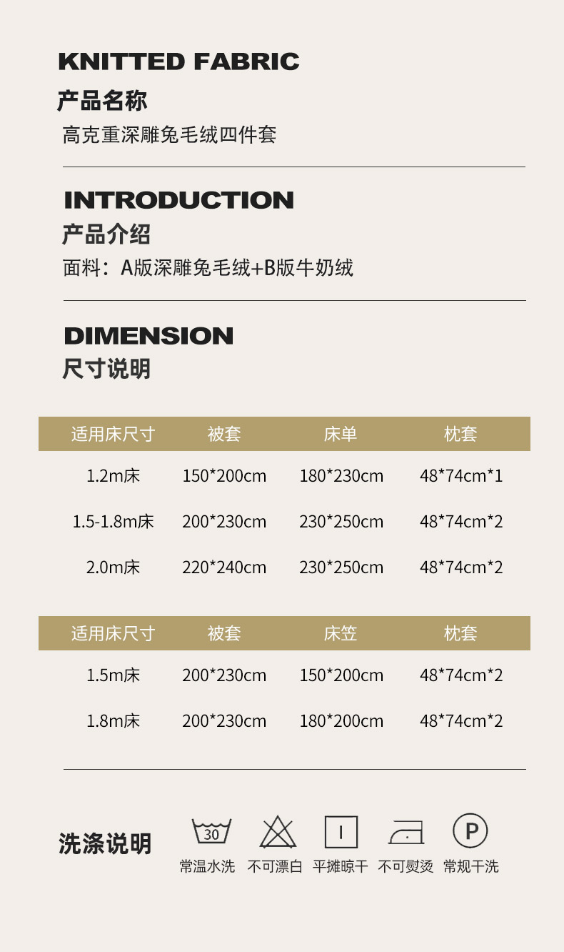 商品名称:吾秀家居 2025新款高克重深雕兔毛绒四件套-初雪系列 优朵