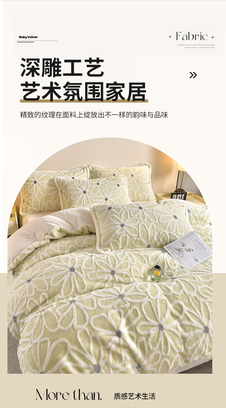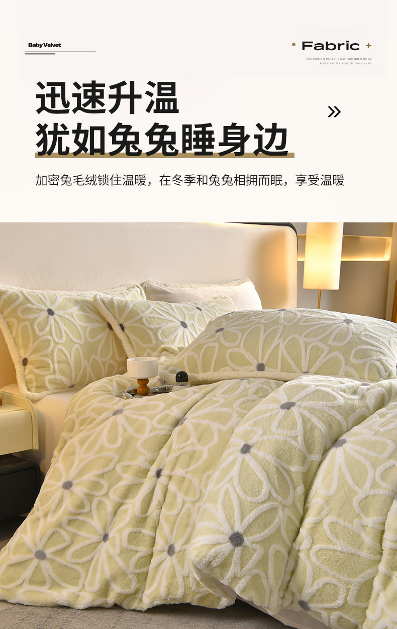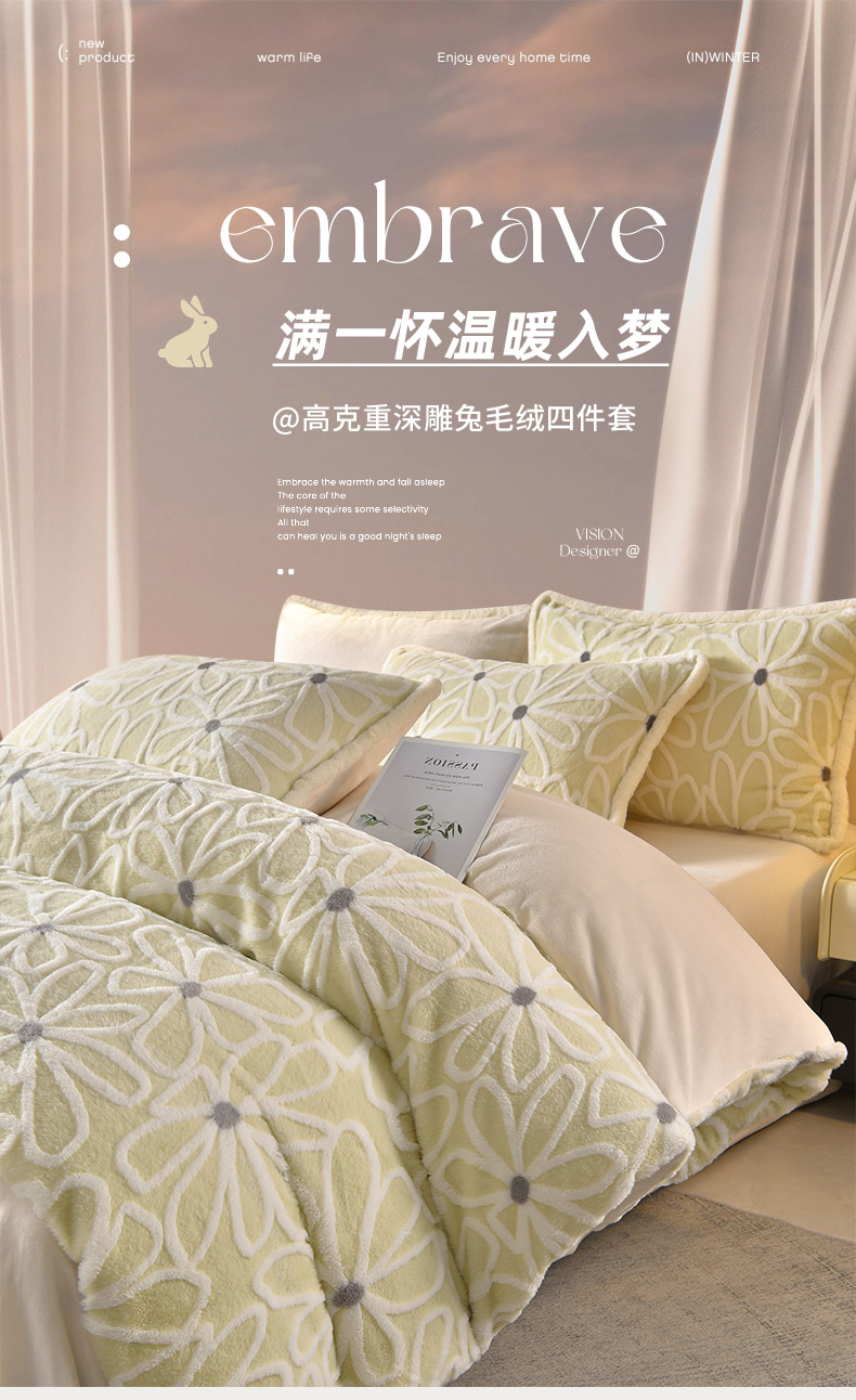 吾秀家居 2025新款高克重深雕兔毛绒四件套-初雪系列 优朵