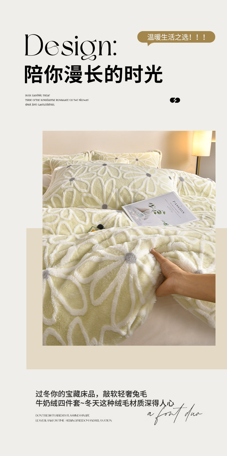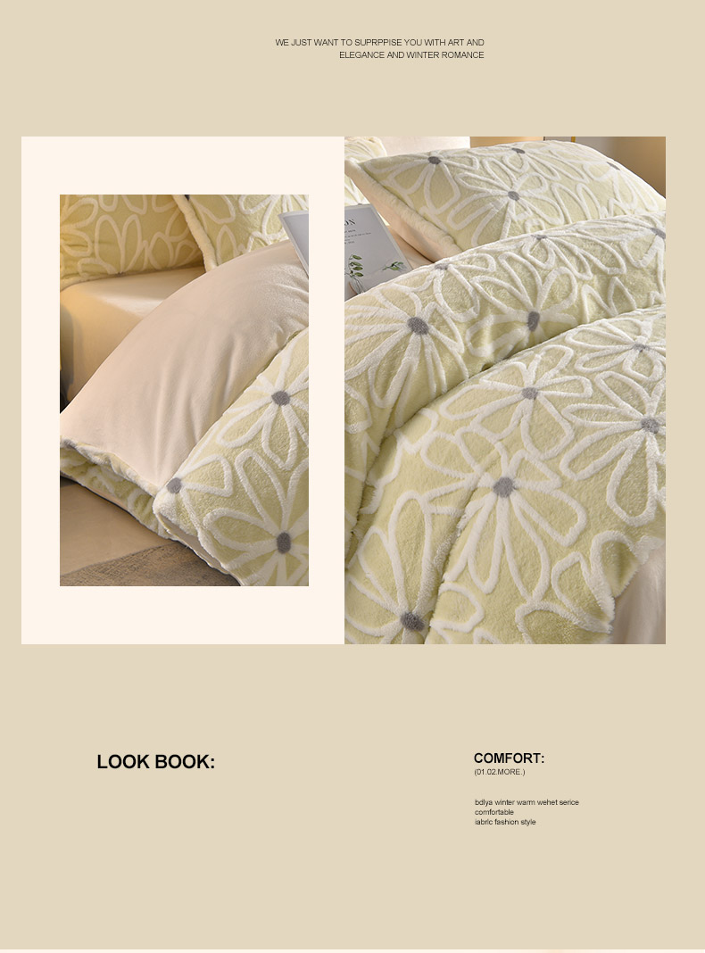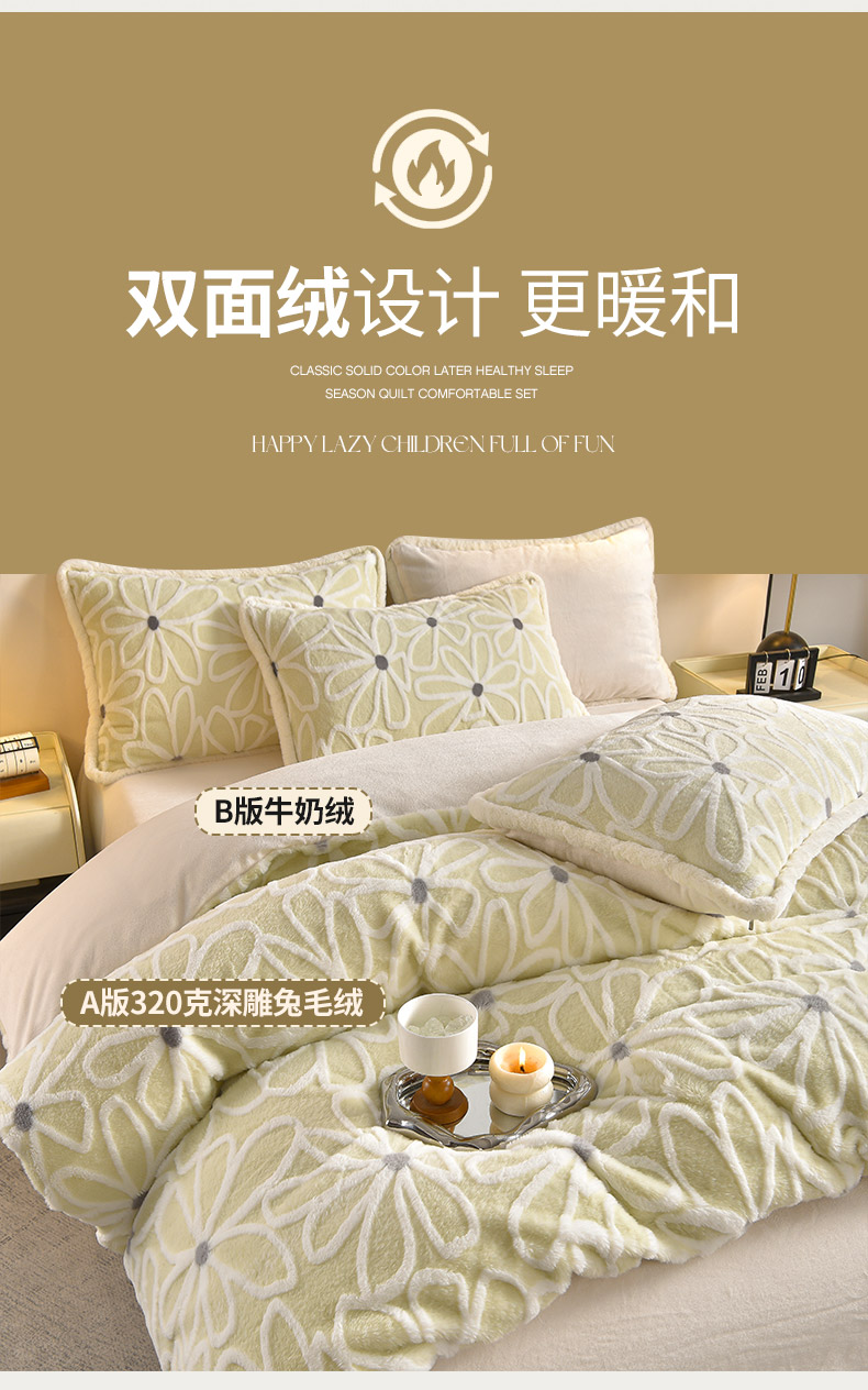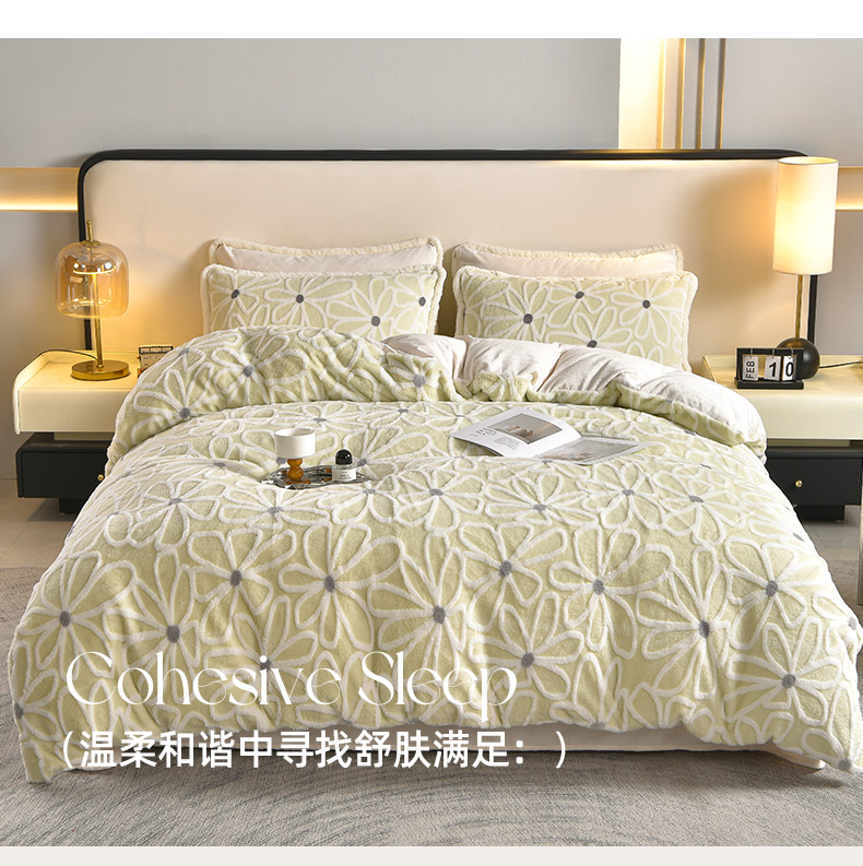 吾秀家居 2025新款高克重深雕兔毛绒四件套-初雪系列 优朵