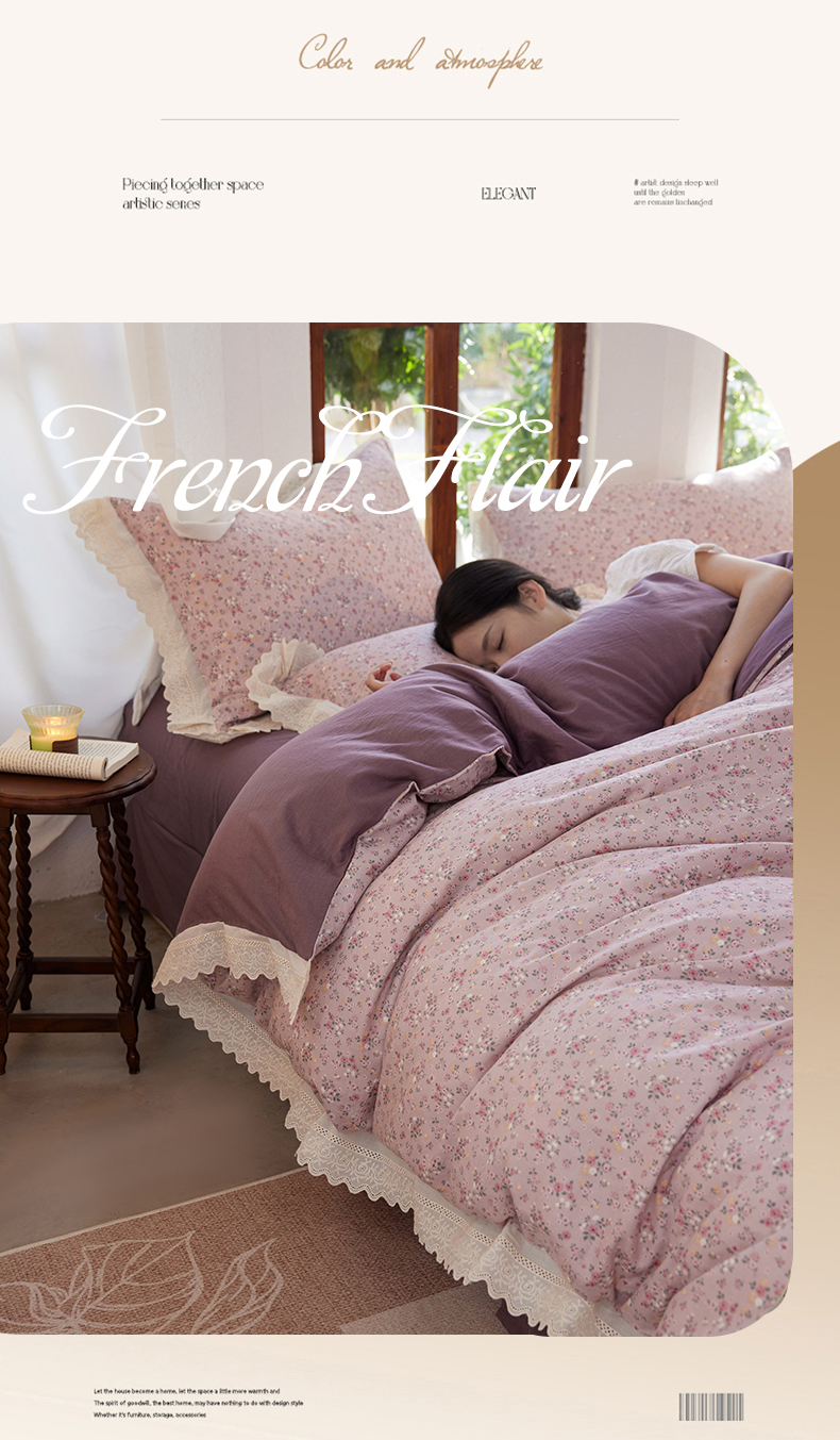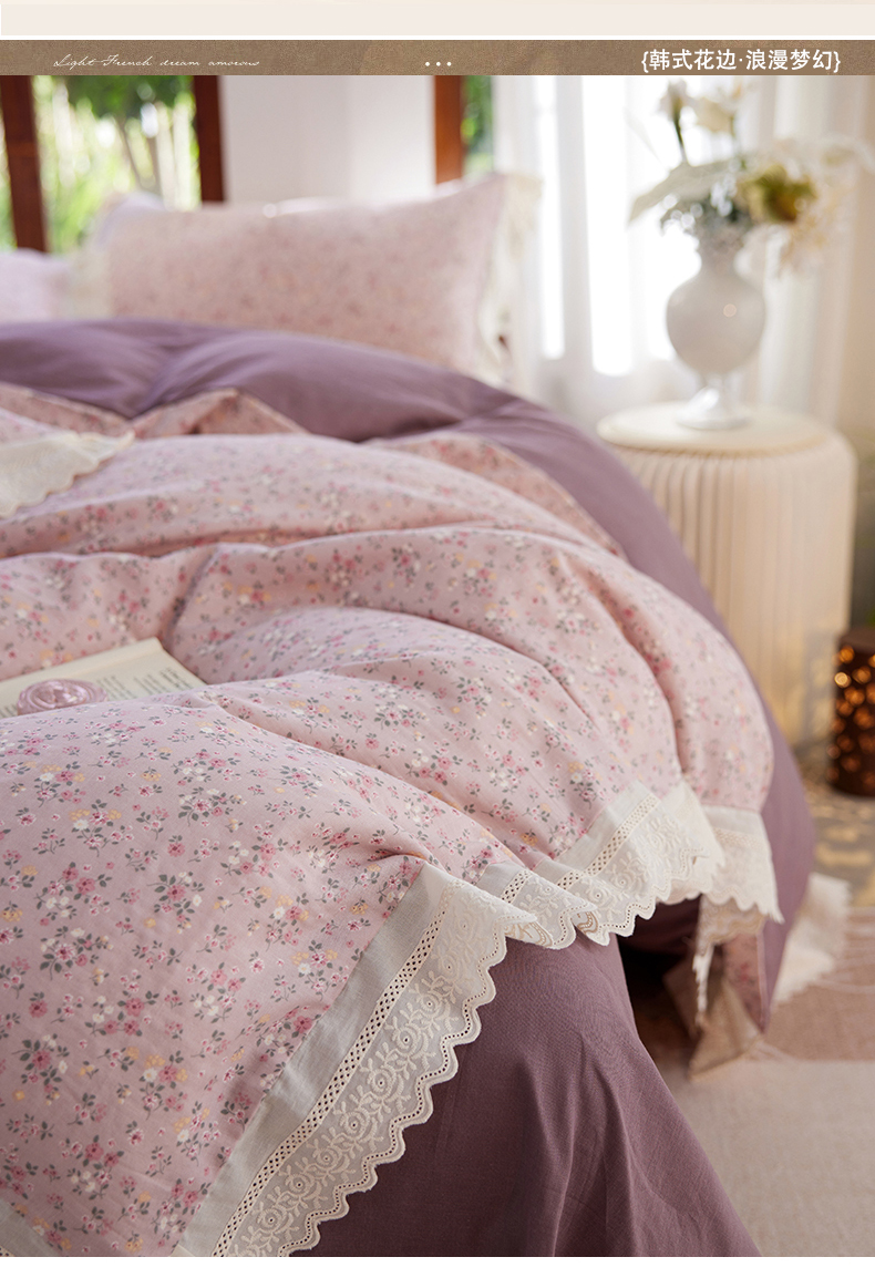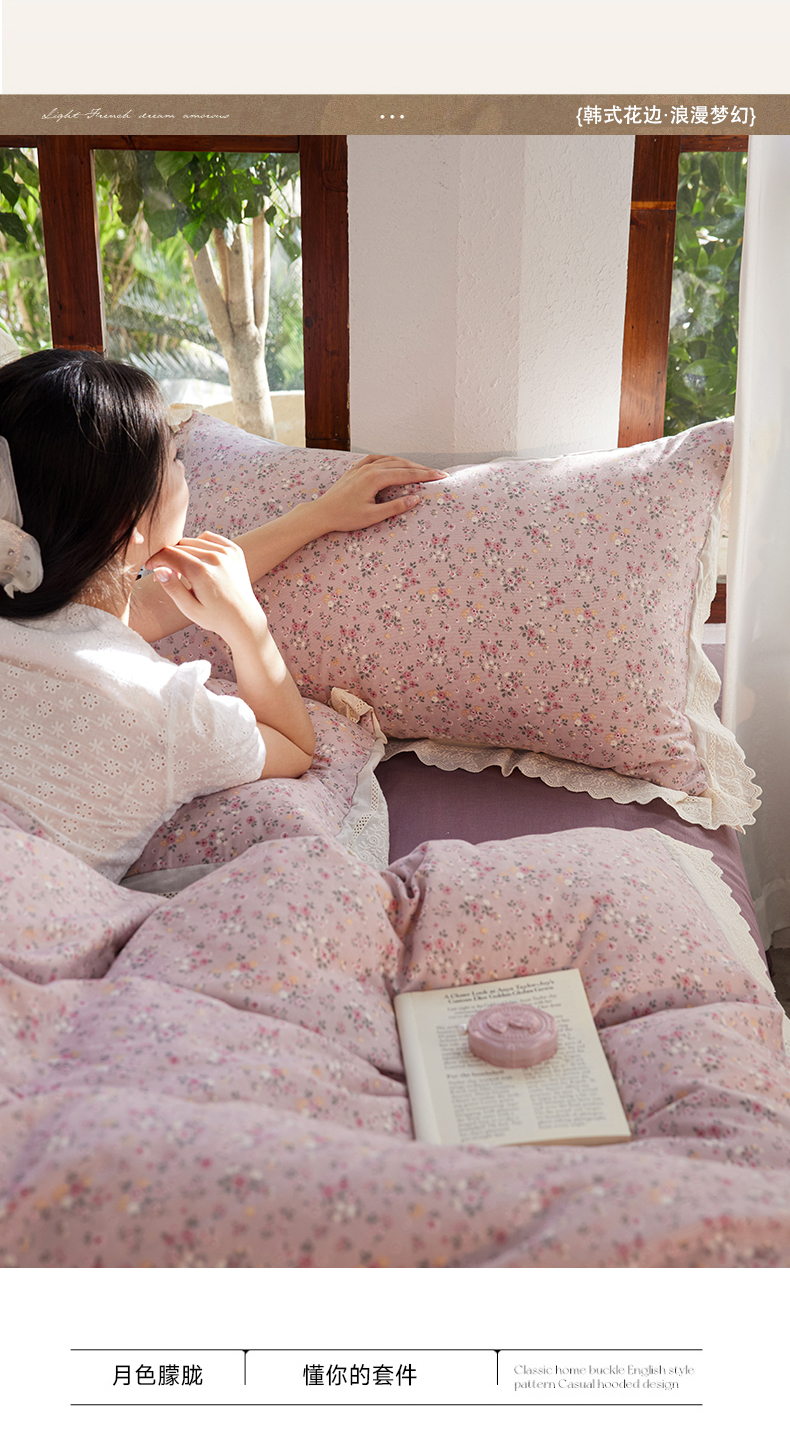 当前位置: 91家纺网 > 商品网购 > 床品套件 > 四件套 > 双层纱四件套 > 清雅福 2026春夏新品韩版全棉双层纱镂空花边系列四件套 蔷薇花园