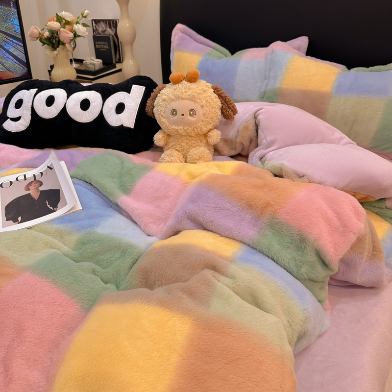 (总)仟网汇 2025新款兔毛绒印花四件套,斑马纹,可爱多,马格丽,魔法学院红,魔法学院蓝,晚秋,小淘气,英伦时尚