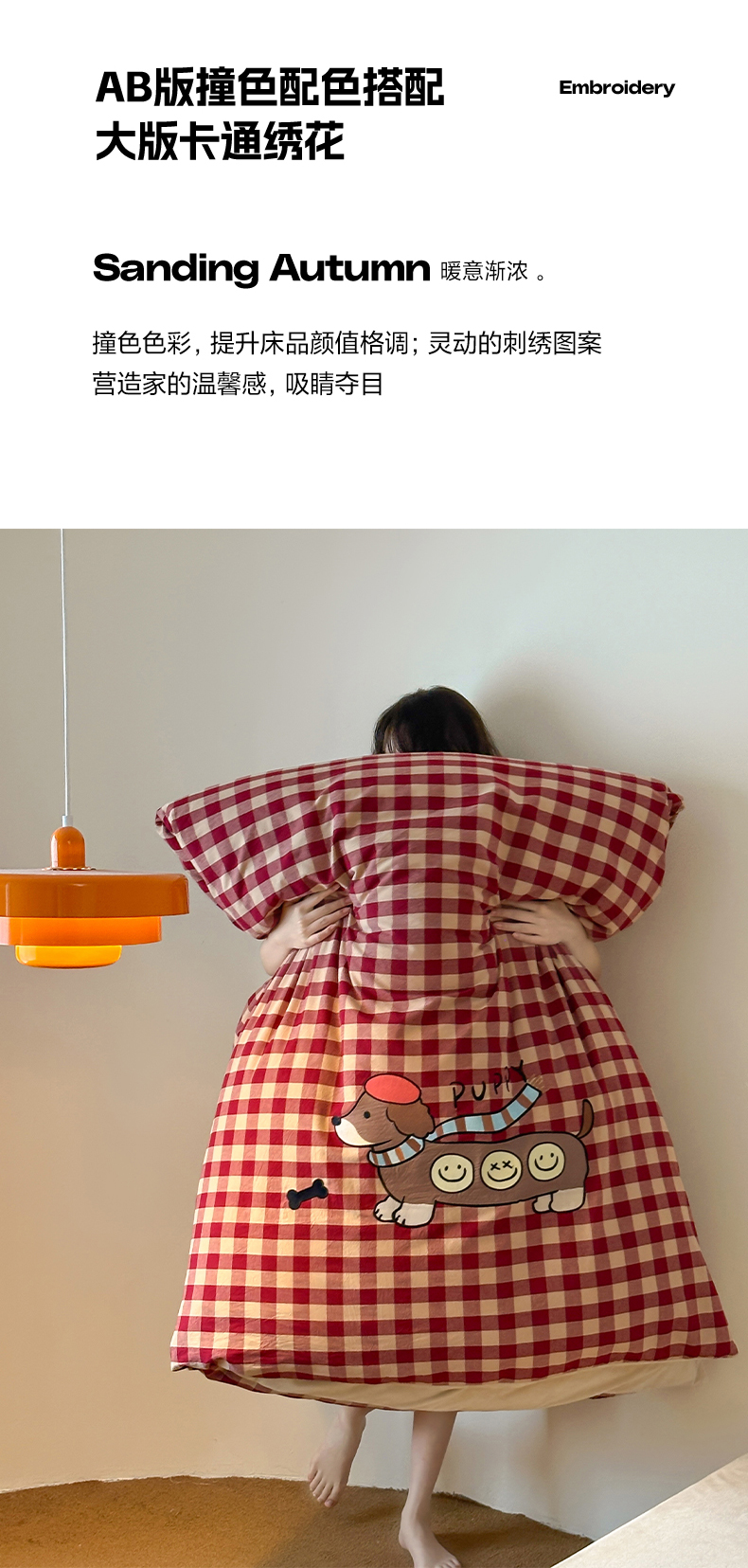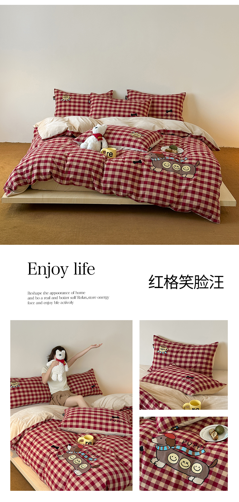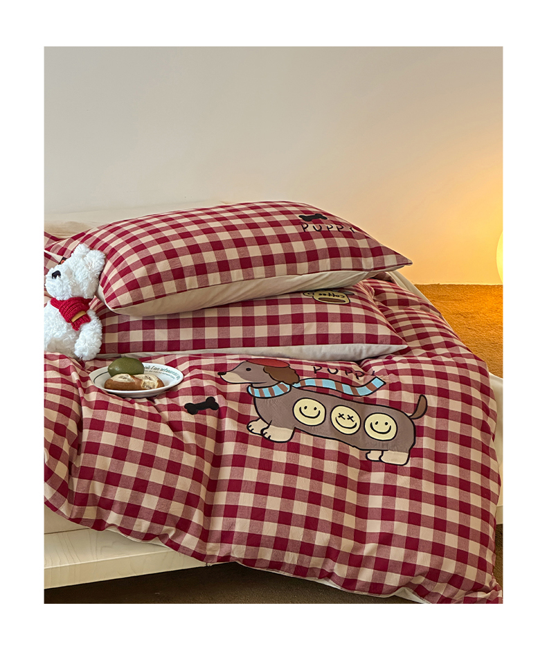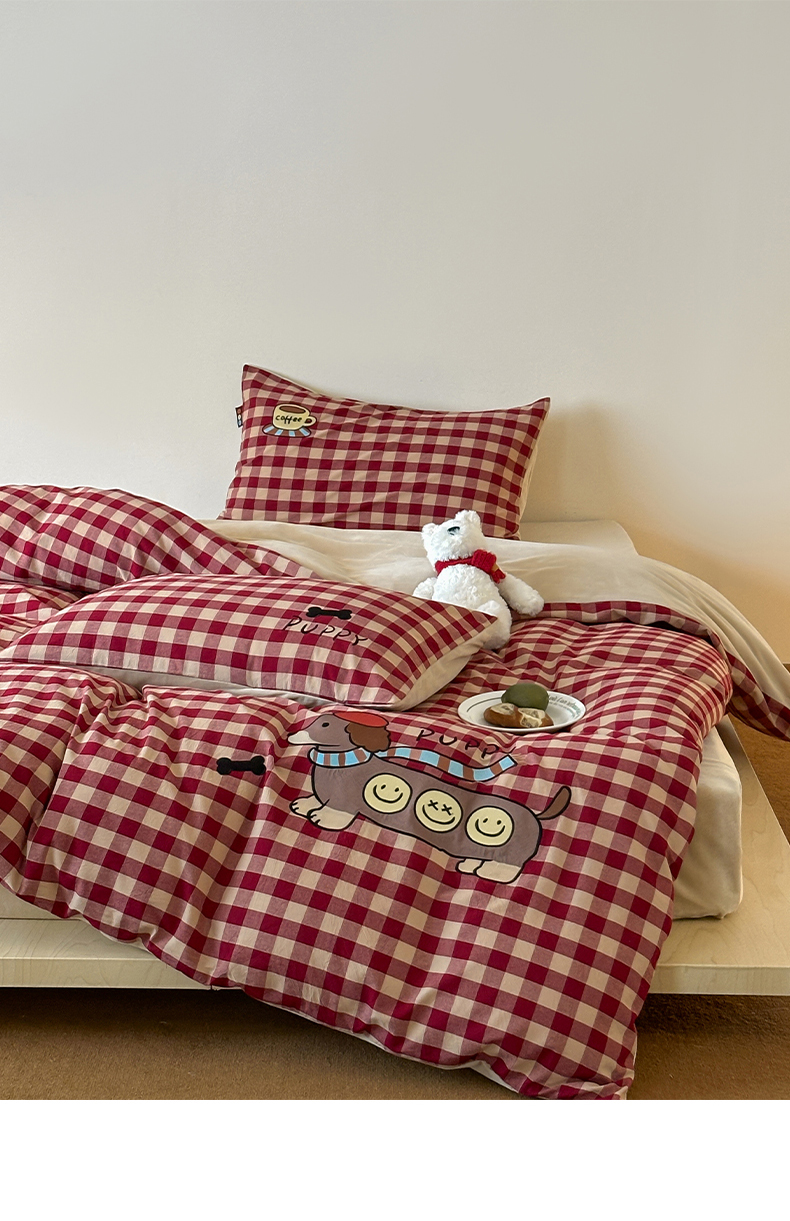 当前位置: 91家纺网 > 商品网购 > 床品套件 > 四件套 > 水洗棉四件套 > RYB红黄兰 2025新款设计师原创A面全棉色织水洗棉+B面婴儿绒贴布绣四件套 绿格笑脸汪