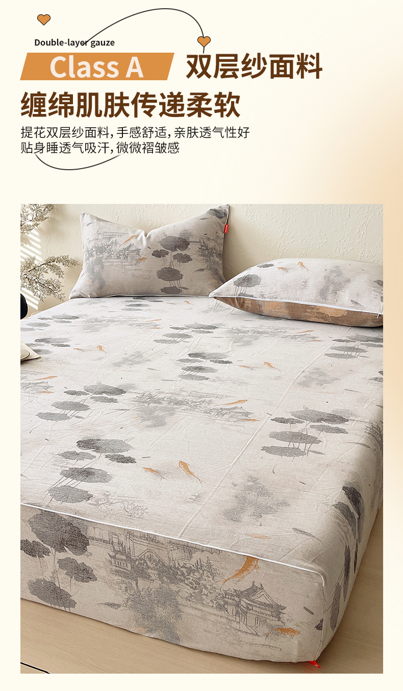 春皖家纺 2026春夏新款(正反两用)A类提花双层纱单床笠 荷芷
