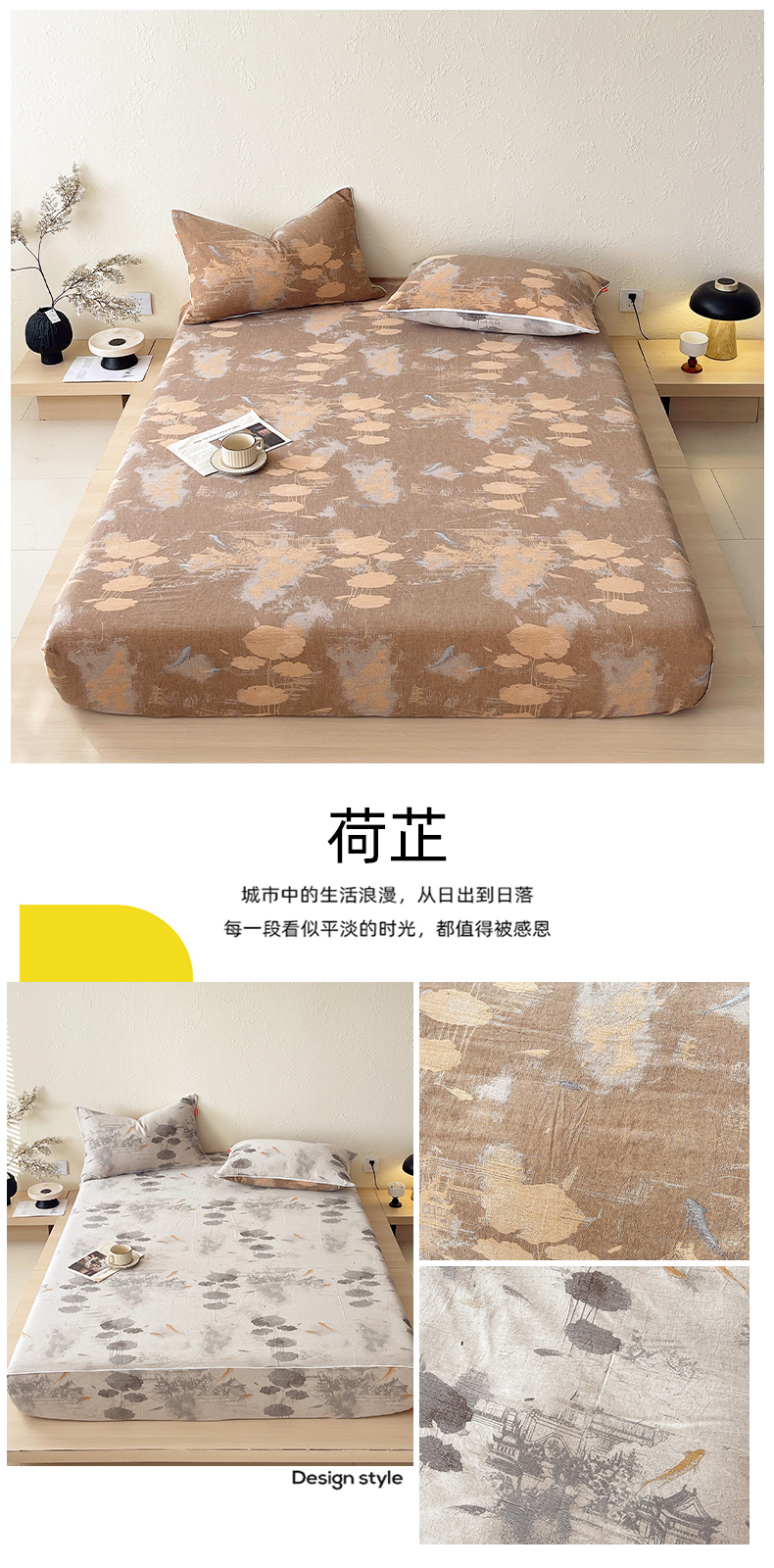 商品名称:春皖家纺 2026春夏新款(正反两用)A类提花双层纱单床笠 荷芷