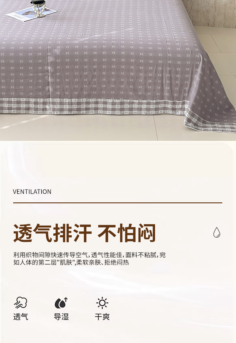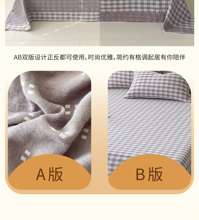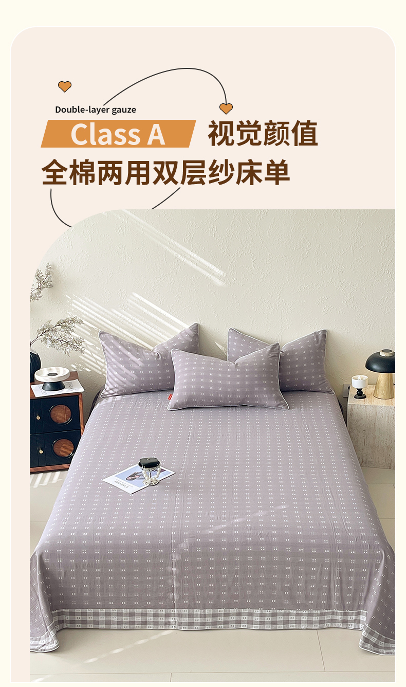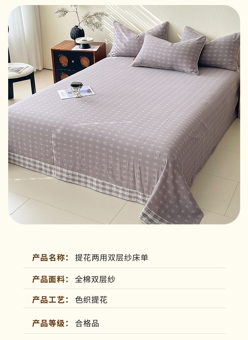 商品名称:春皖家纺 2026春夏新款(正反两用)A类提花双层纱单床单 思柔-烟灰