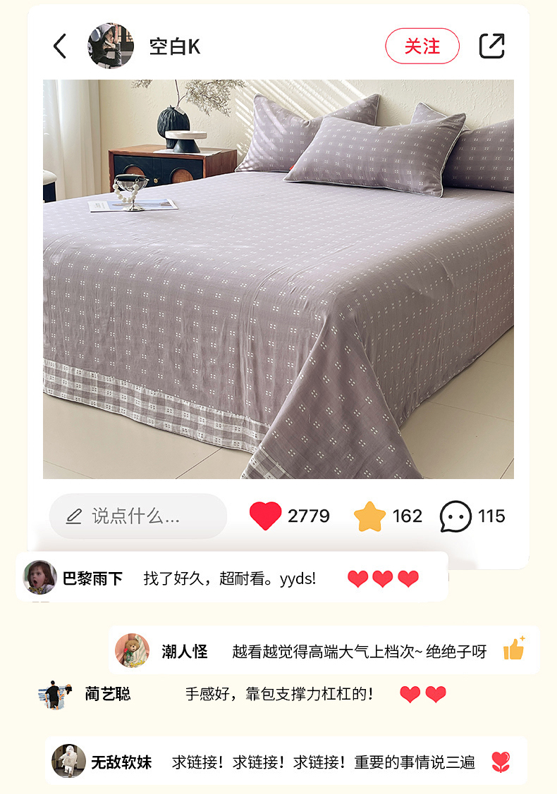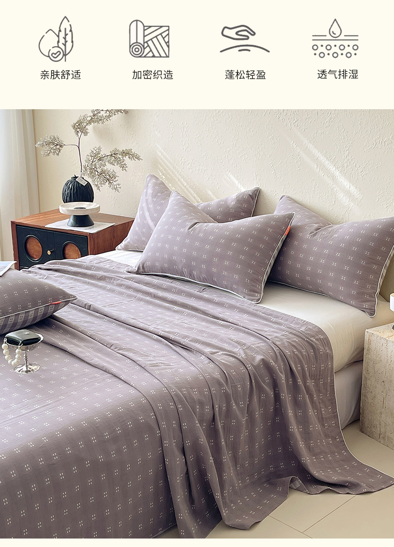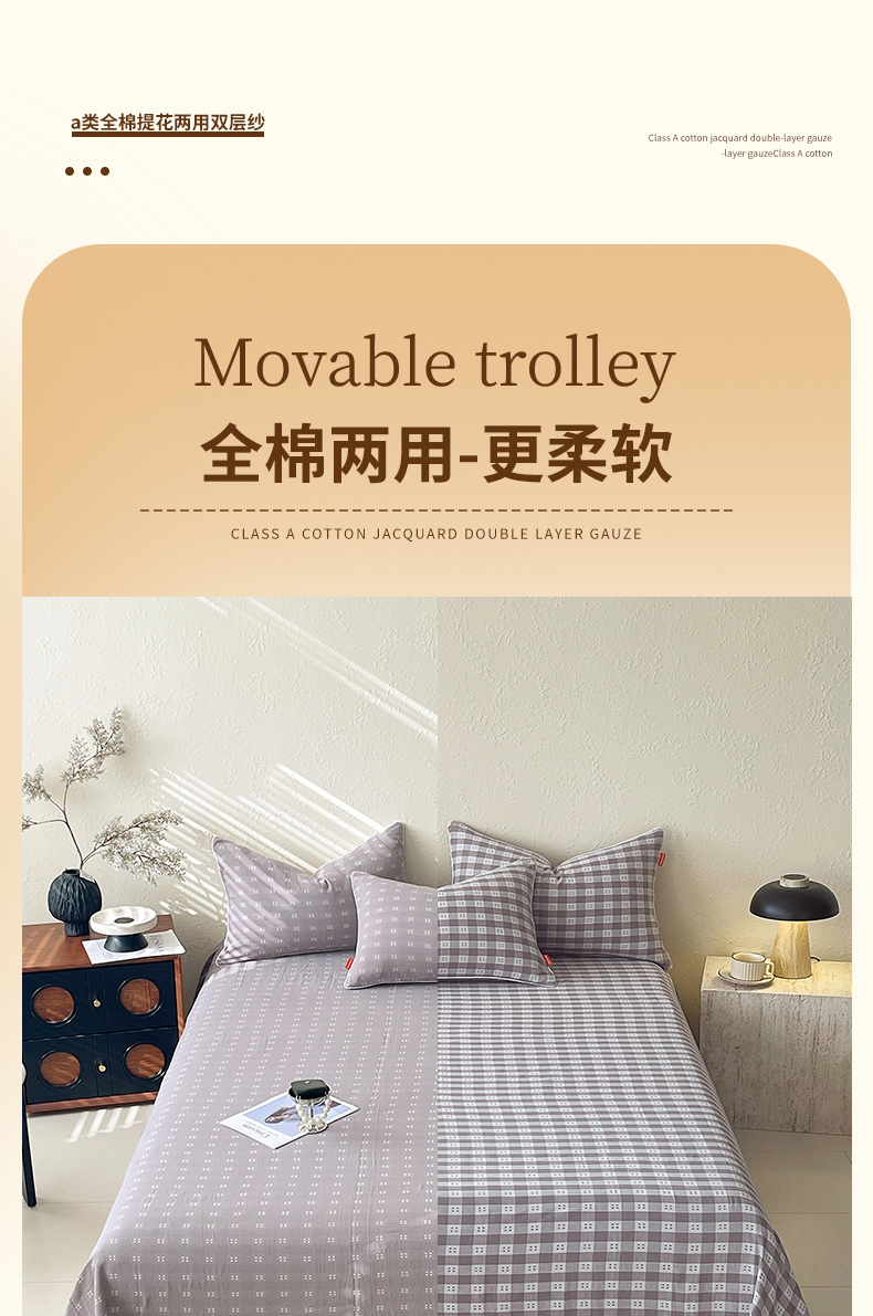 商品名称:春皖家纺 2026春夏新款(正反两用)A类提花双层纱单床单 思柔-烟灰