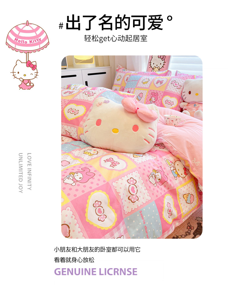 当前位置: 91家纺网 > 商品网购 > 床品套件 > 四件套 > 全棉普通四件套 > 暮思家居 2026新款正版授权三丽鸥全棉纯棉四件套系列-第二批 KT美乐蒂