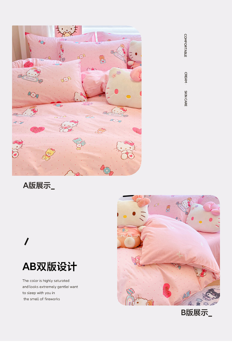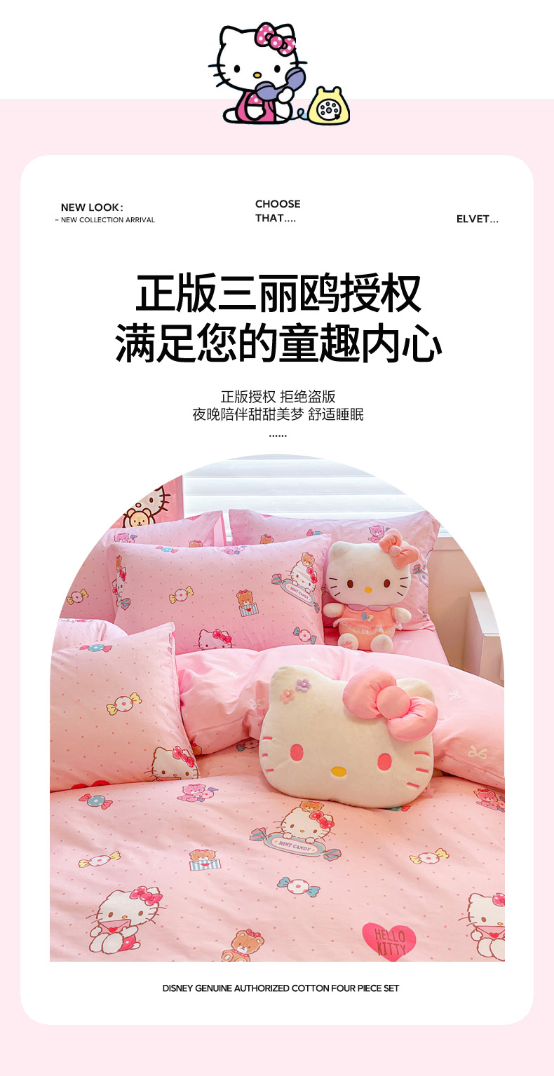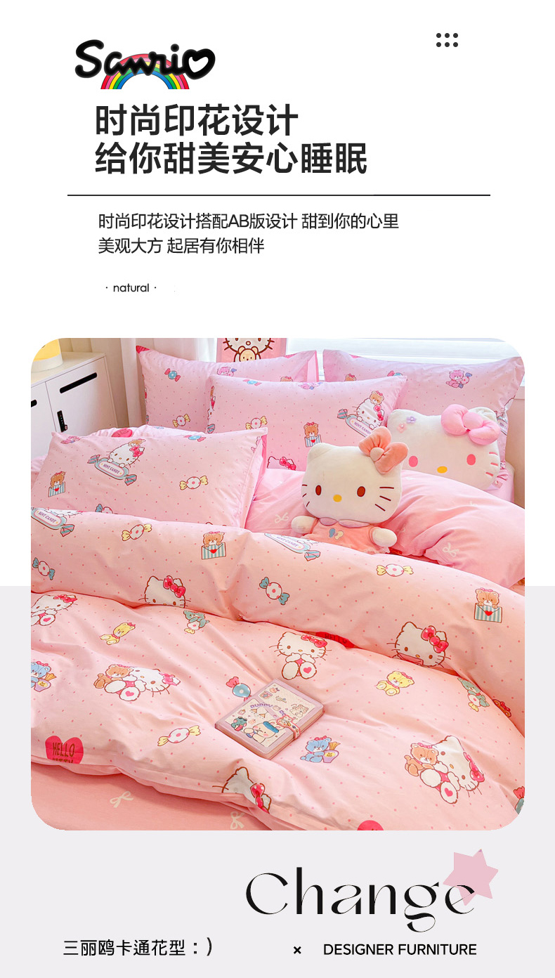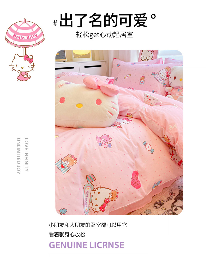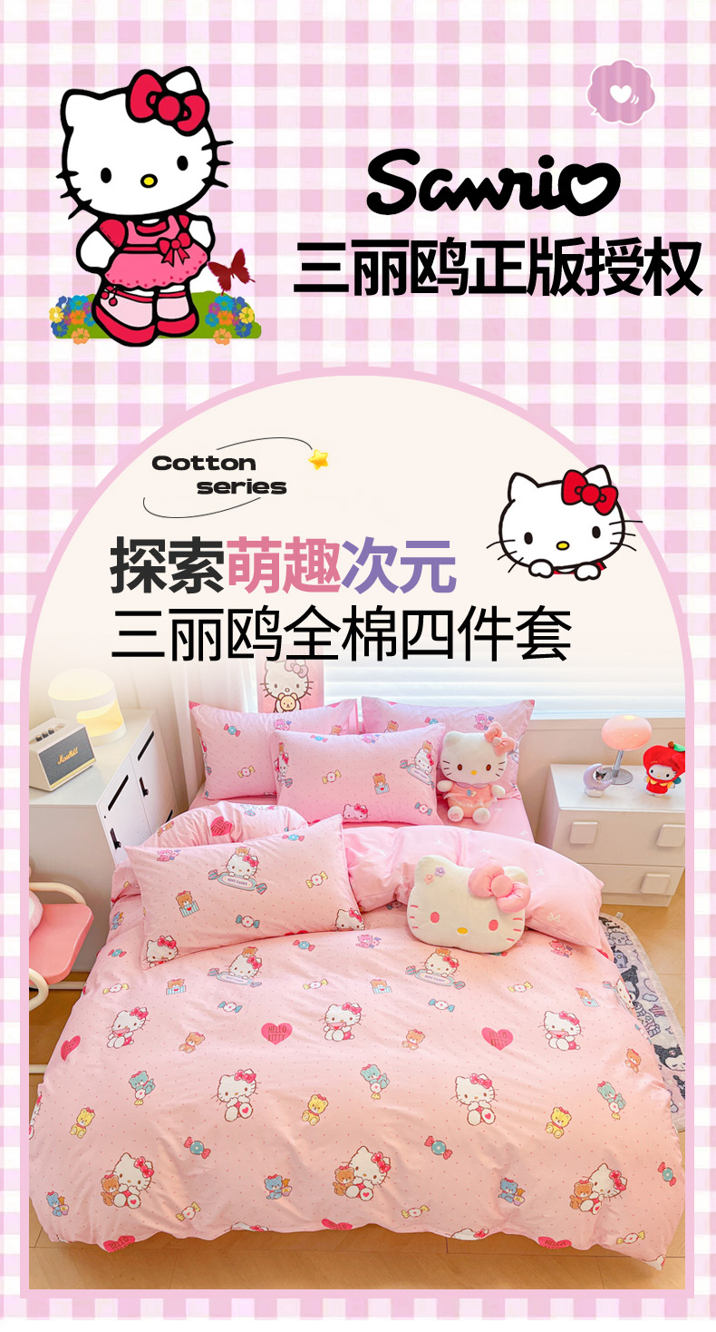 当前位置: 91家纺网 > 商品网购 > 床品套件 > 四件套 > 全棉普通四件套 > 暮思家居 2026新款正版授权三丽鸥全棉纯棉四件套系列-第二批 萌宝KT