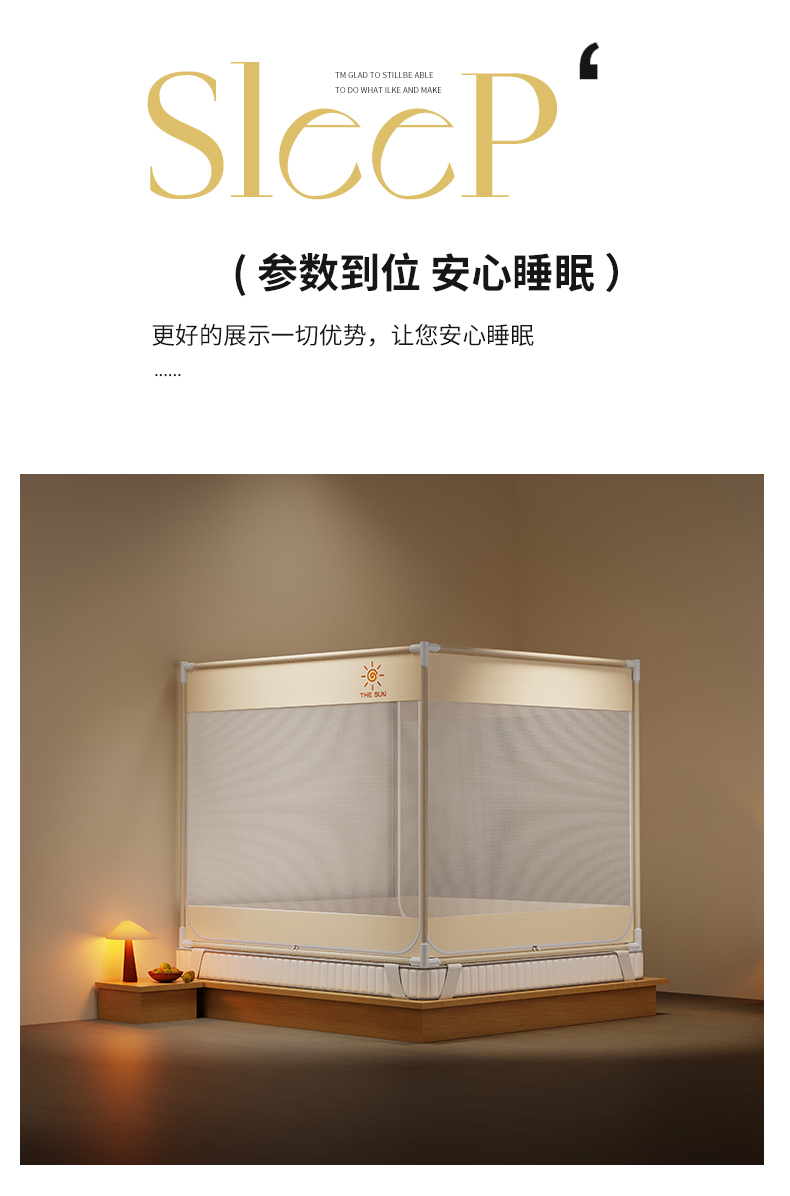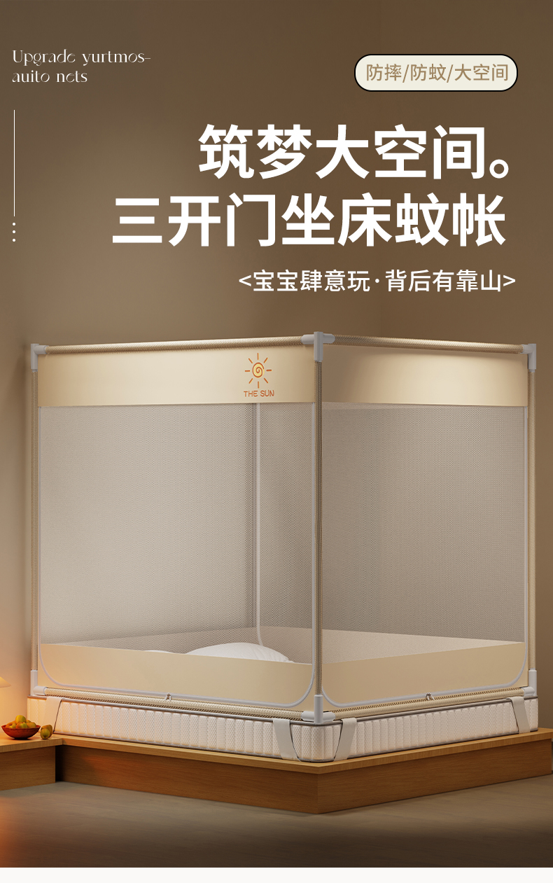 当前位置: 91家纺网 > 商品网购 > 床上用品 > 蚊帐 > 坐床式蚊帐 > 初心家纺 2026新款外穿杆坐床防摔蚊帐-场景一 米-太阳