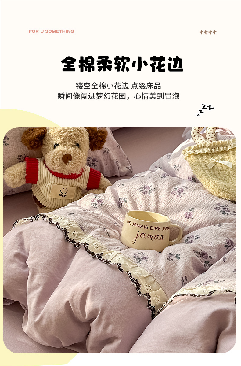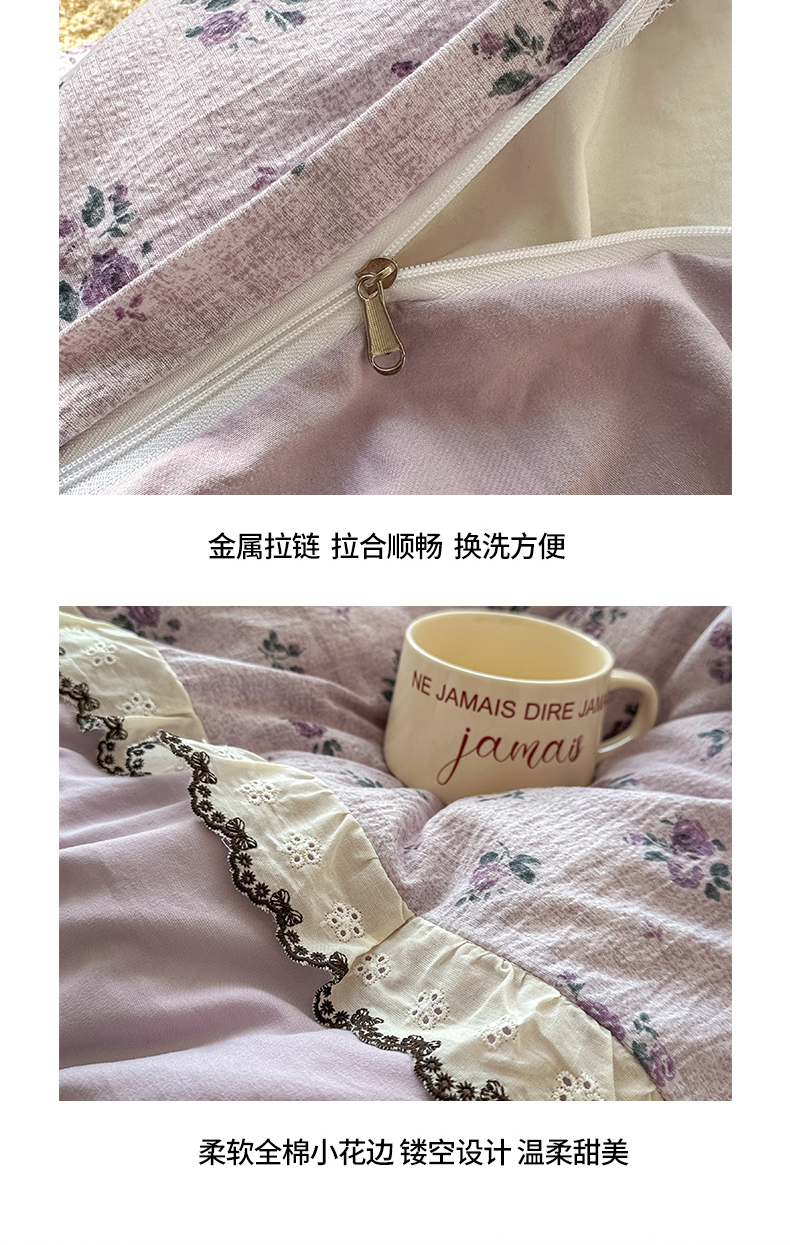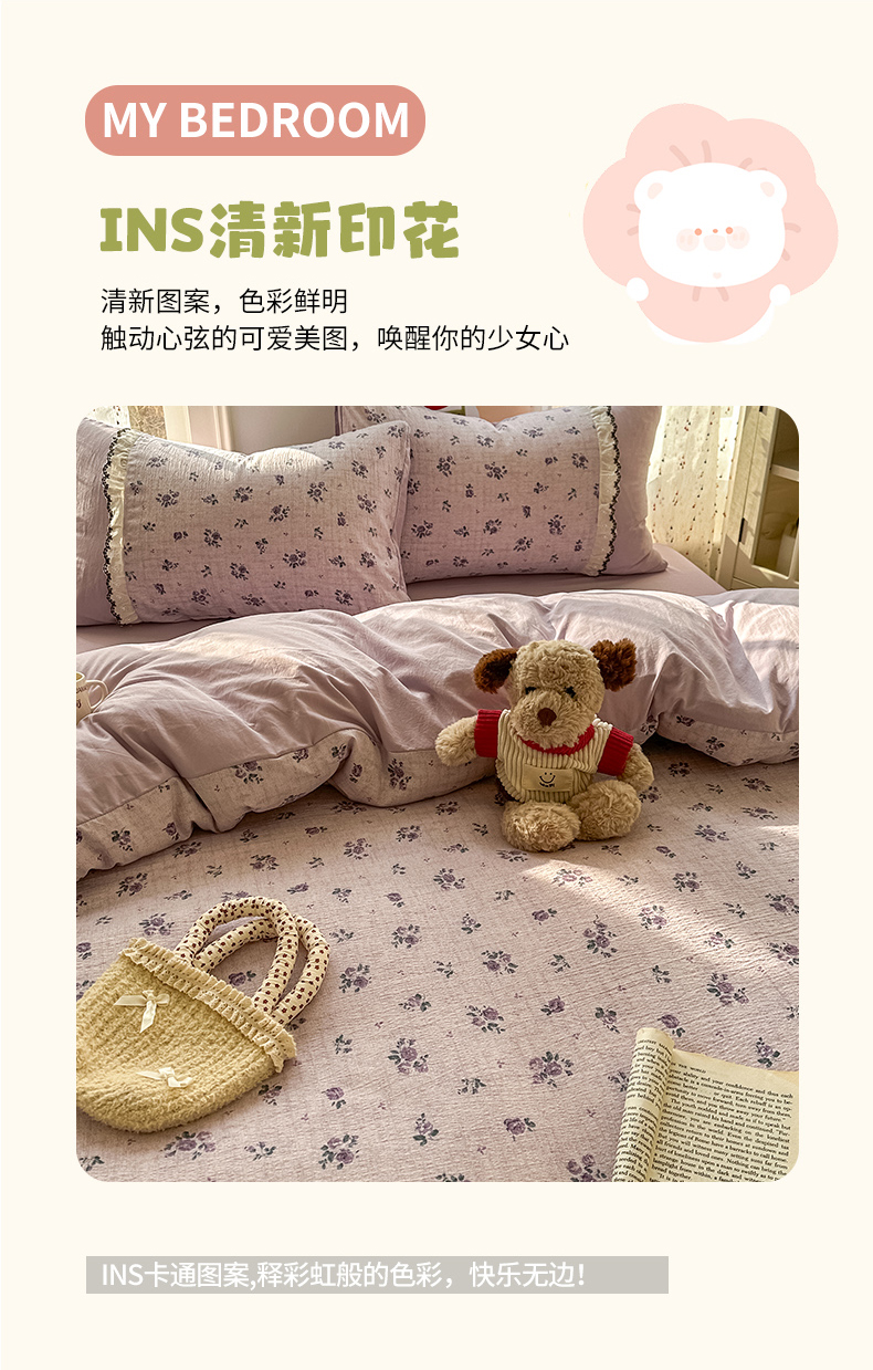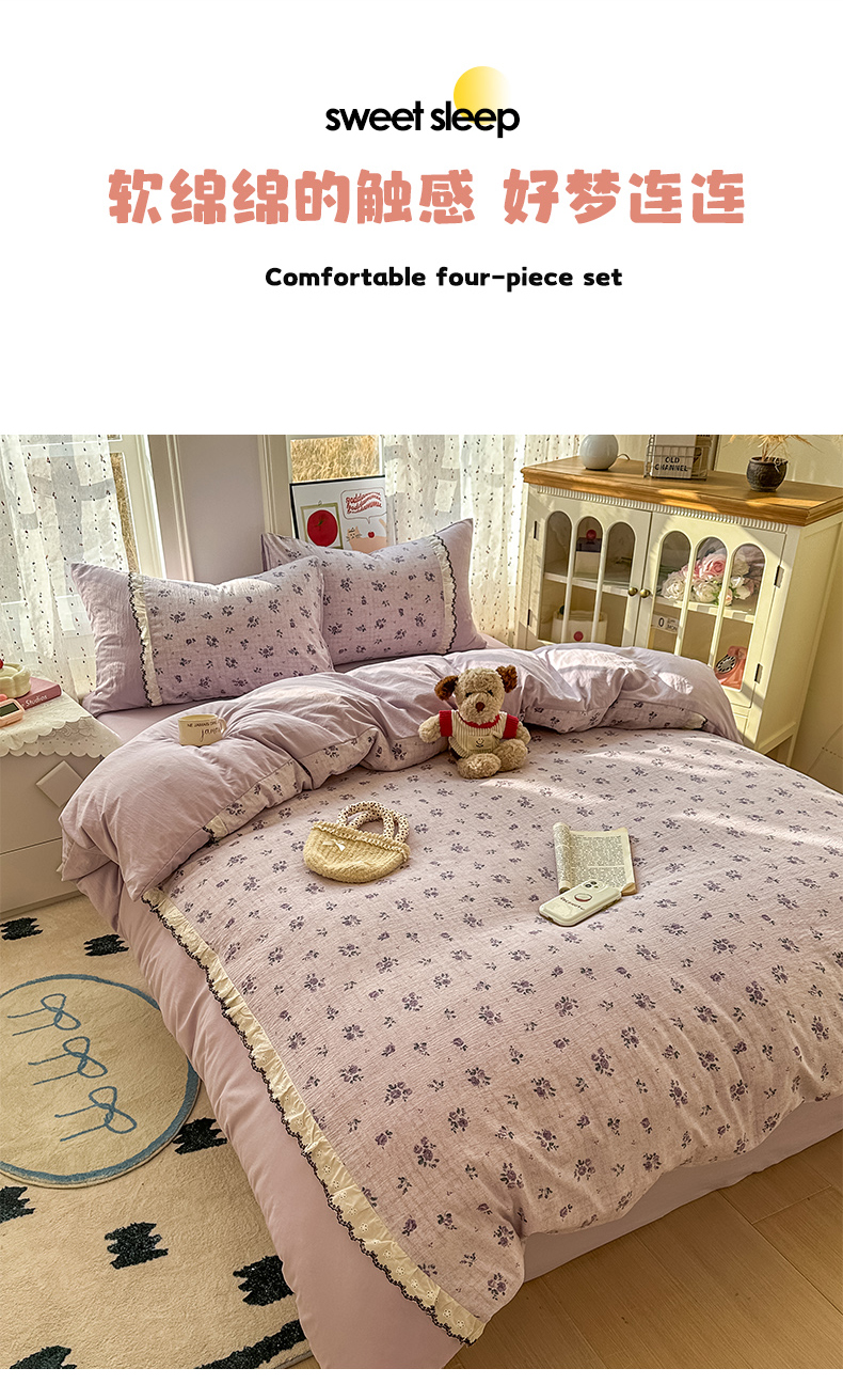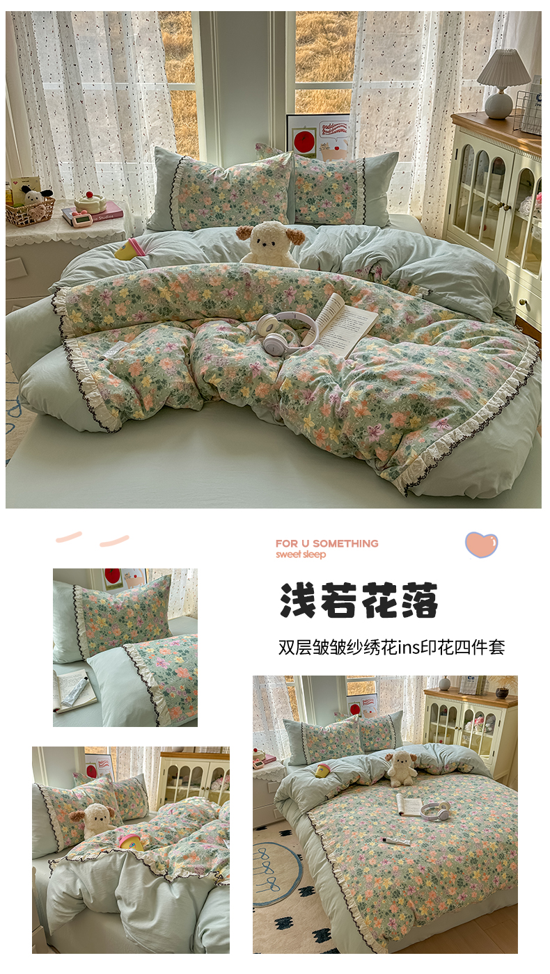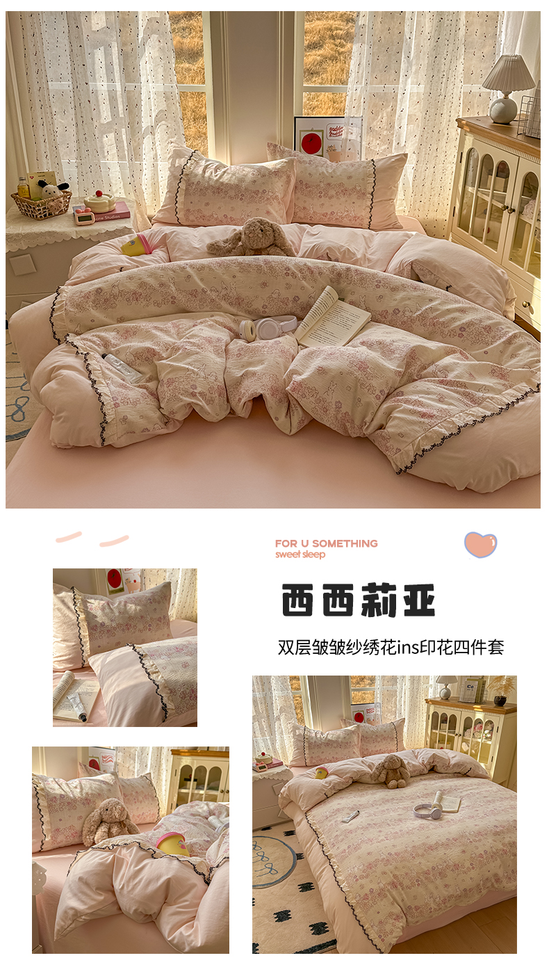 商品名称:(总)贝凯瑞 2026新款小花边水洗棉绣花ins小清新床单床裙床笠四件套