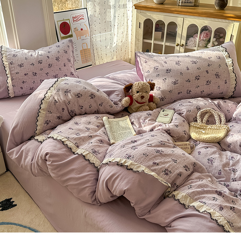 (总)贝凯瑞 2026新款小花边水洗棉绣花ins小清新床单床裙床笠四件套
