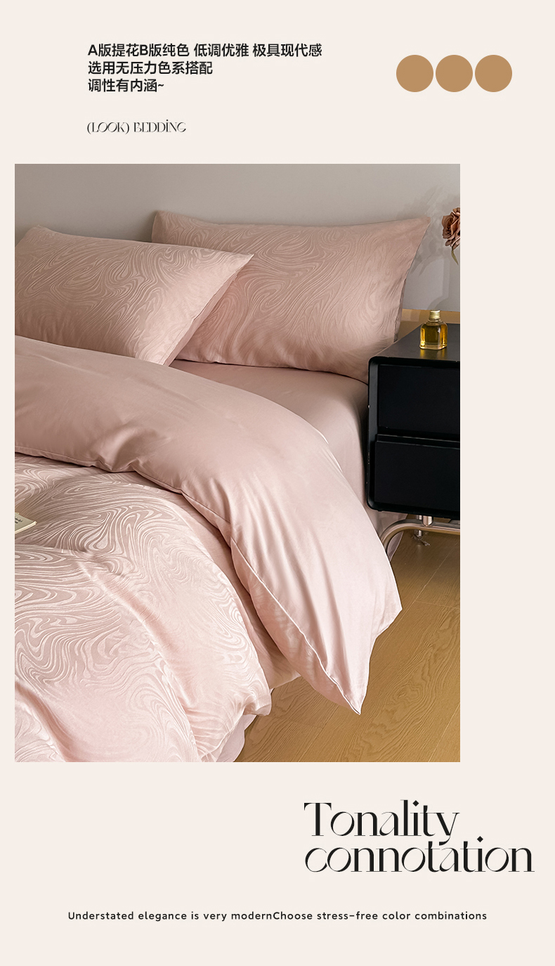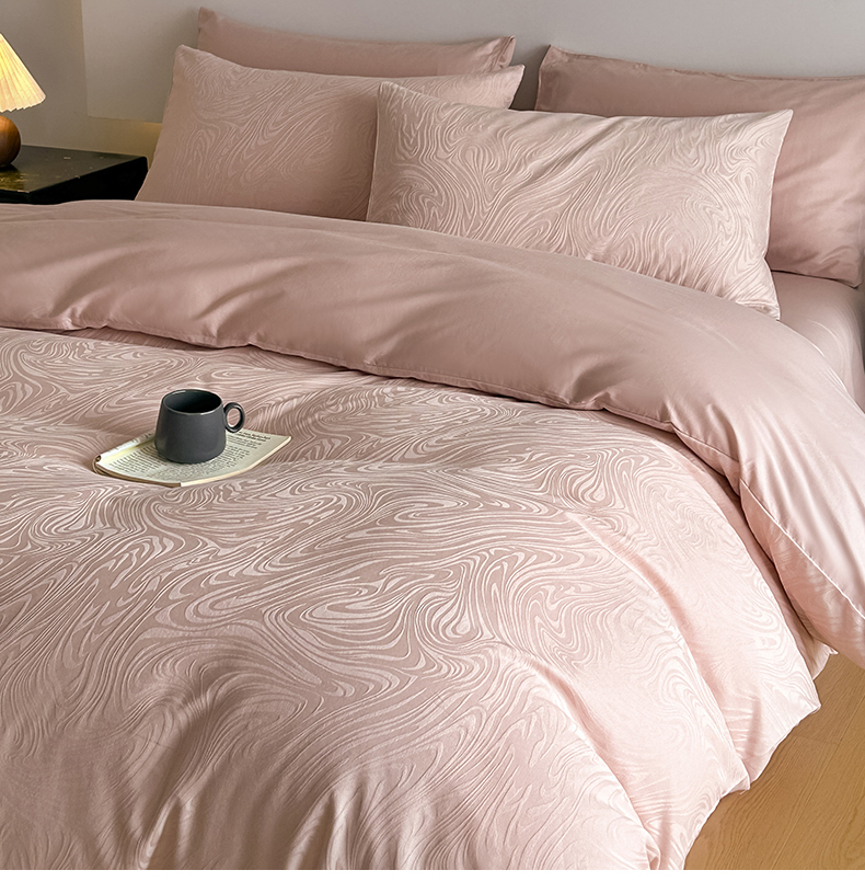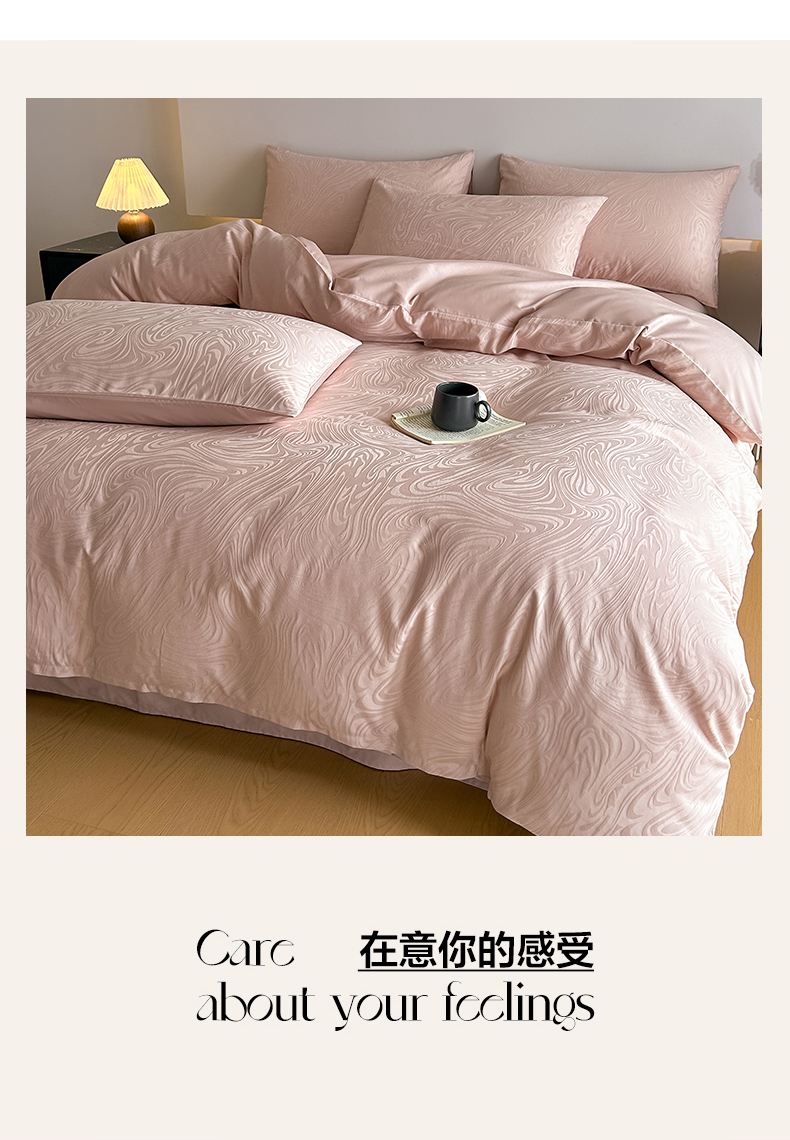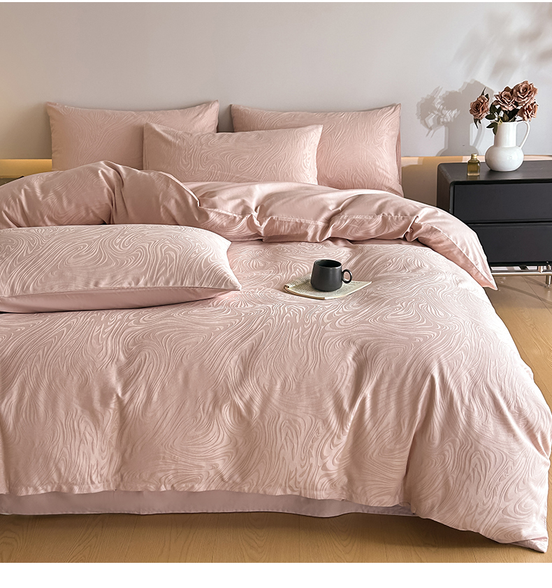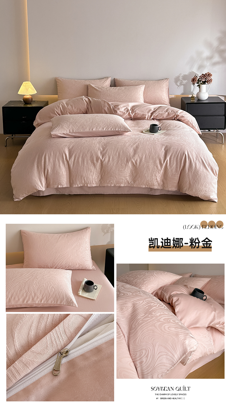 曼之夏 2026新款60支全棉水洗浮雕提花四件套 凯迪娜-粉金