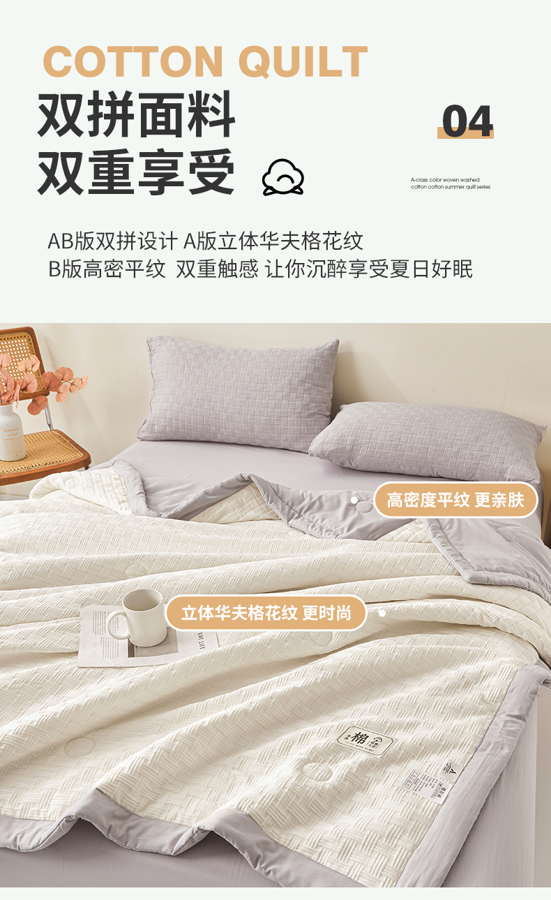 商品名称:好睡棉 2026新款华夫格双拼夏被夏凉被空调被新疆棉花被子 白拼灰