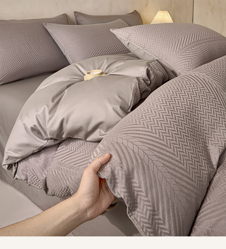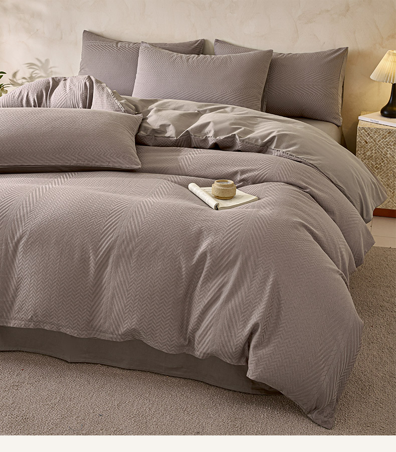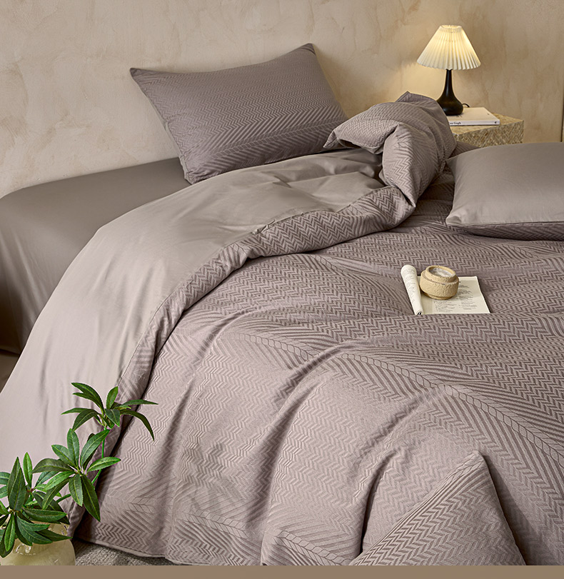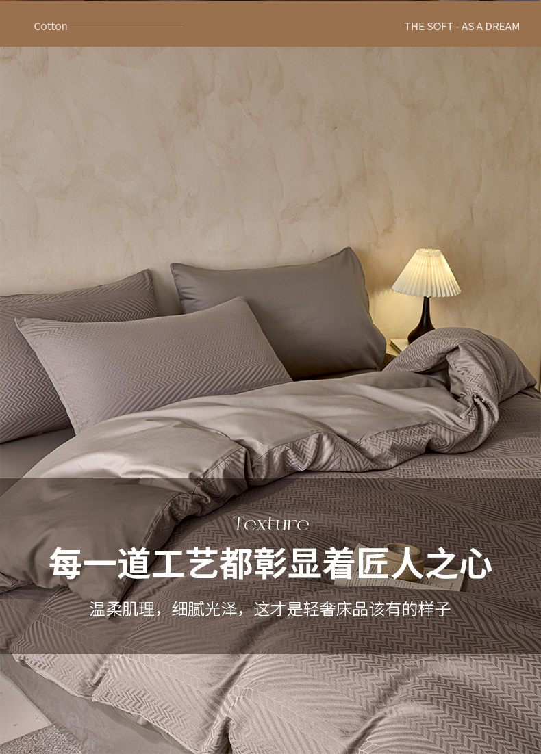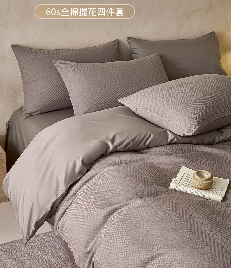 雯雨家纺 2026新款全棉60s全棉提花四件套 深灰麦浪