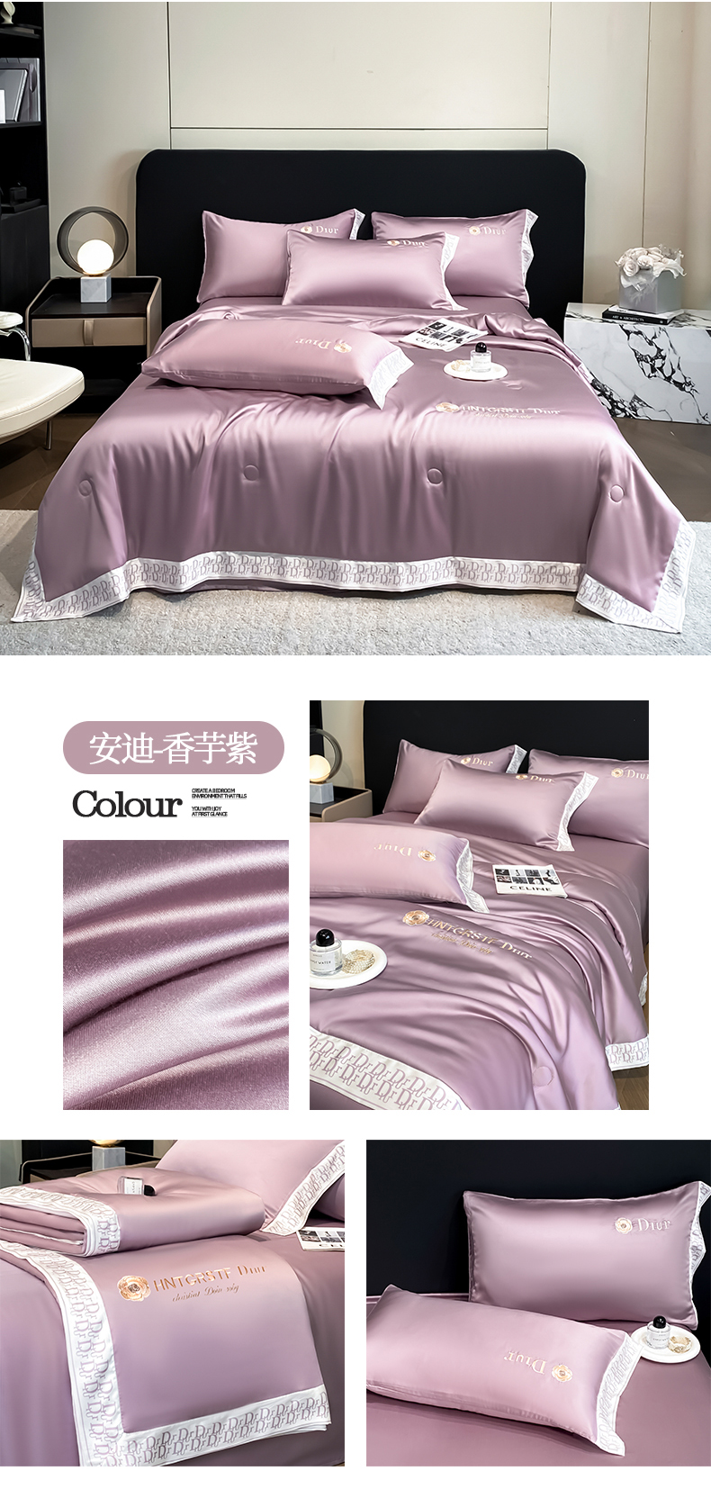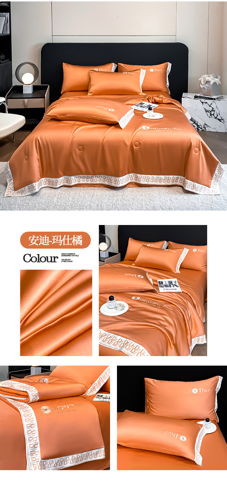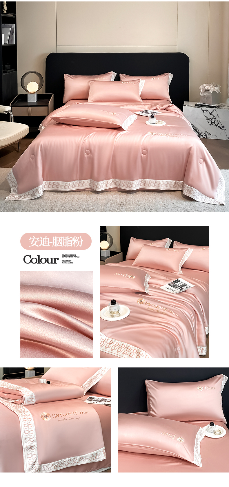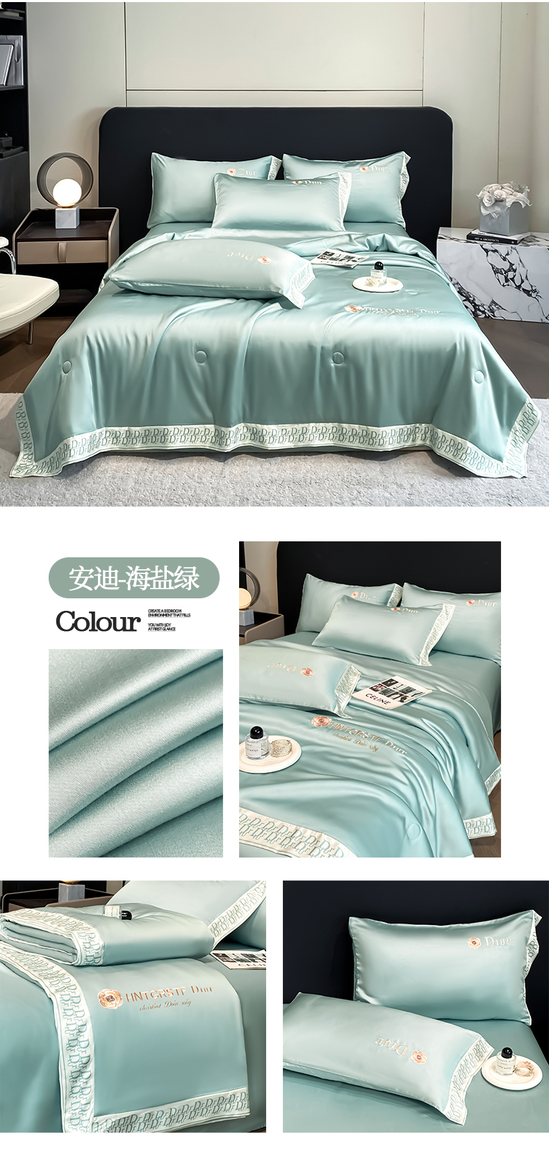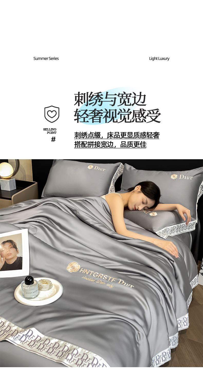 (总)露梦 2026新款大牌轻奢款水洗真丝刺绣数码宽边夏被四件套-安迪,安迪-爱玛橙,安迪-高级灰,安迪-海盐绿,安迪-摩卡蓝,安迪-嫩奶绿,安迪-胭脂粉