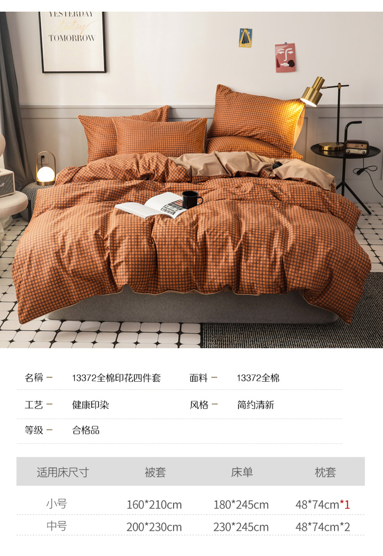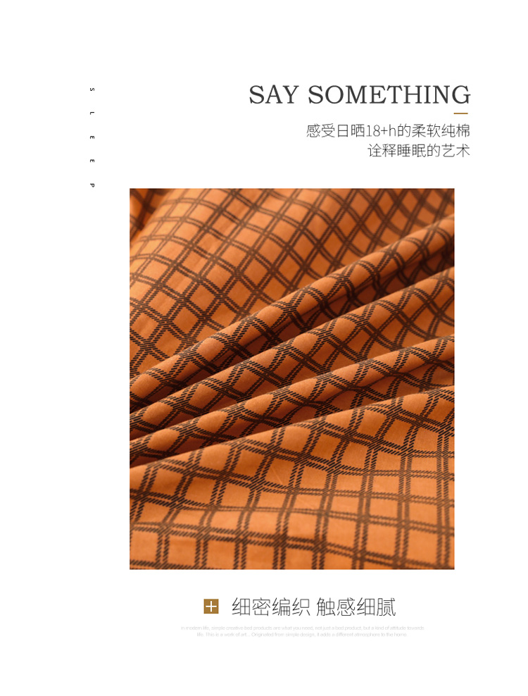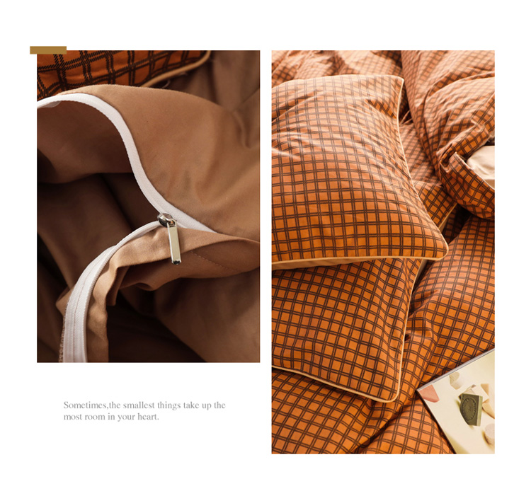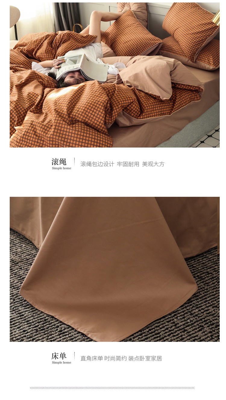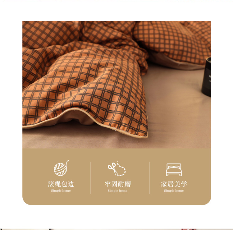 商品名称:澳萝拉 2020新款13372全棉滚边格子款四件套 焦糖格