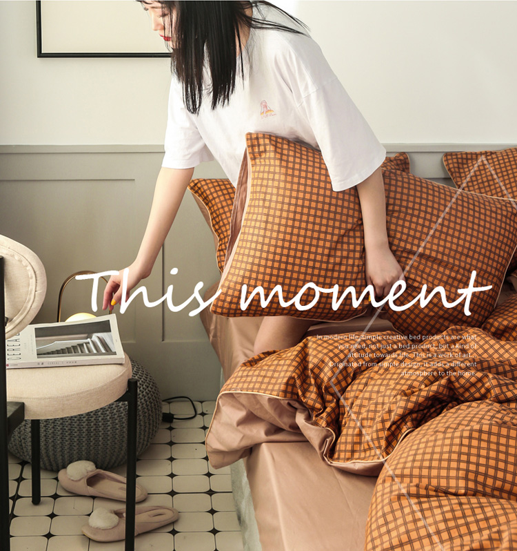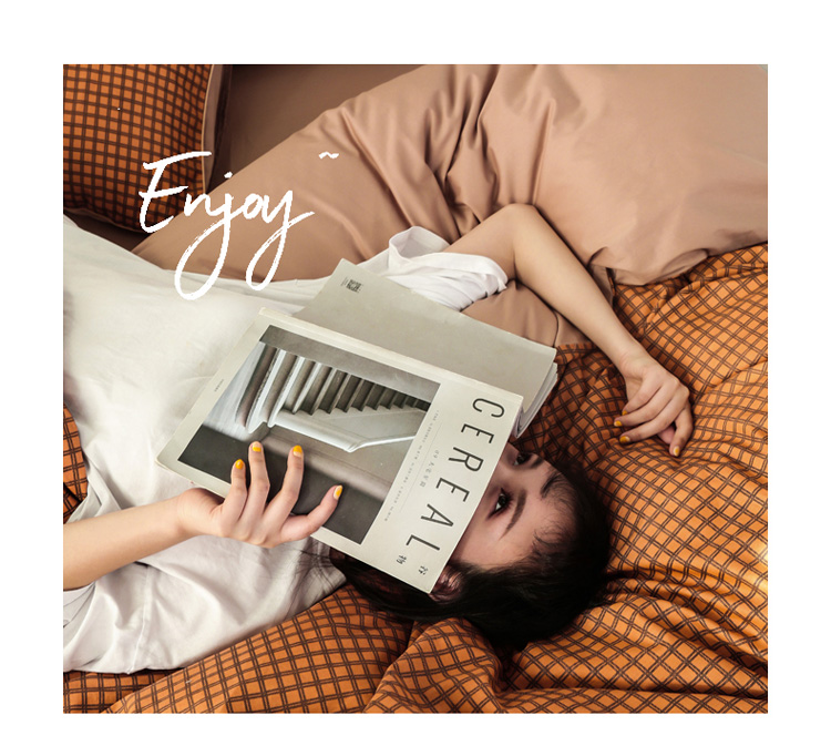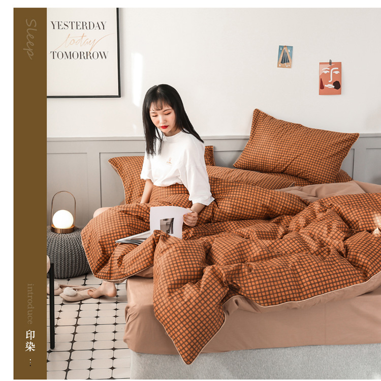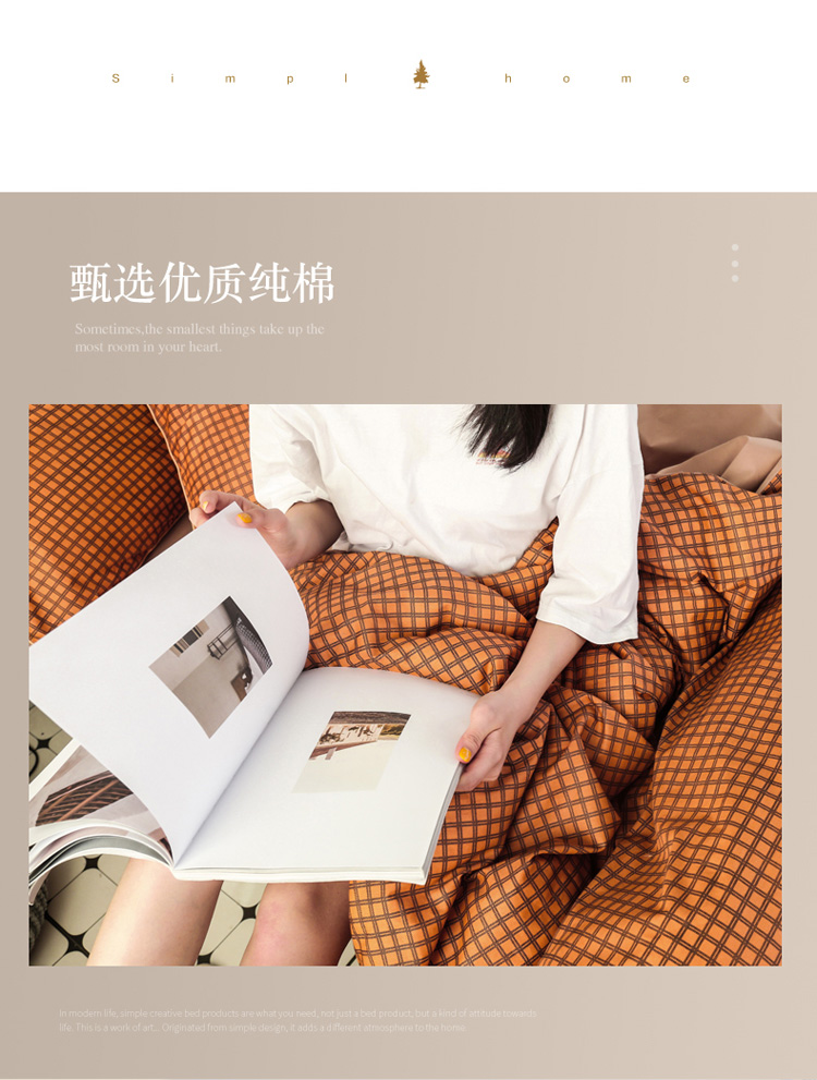 澳萝拉 2020新款13372全棉滚边格子款四件套 焦糖格