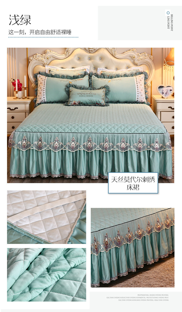 (总)好儿喜家纺 2024新款伊芙琳夏被凉席床裙四件套,浅绿,橄榄绿,奶白,浅粉,浅蓝