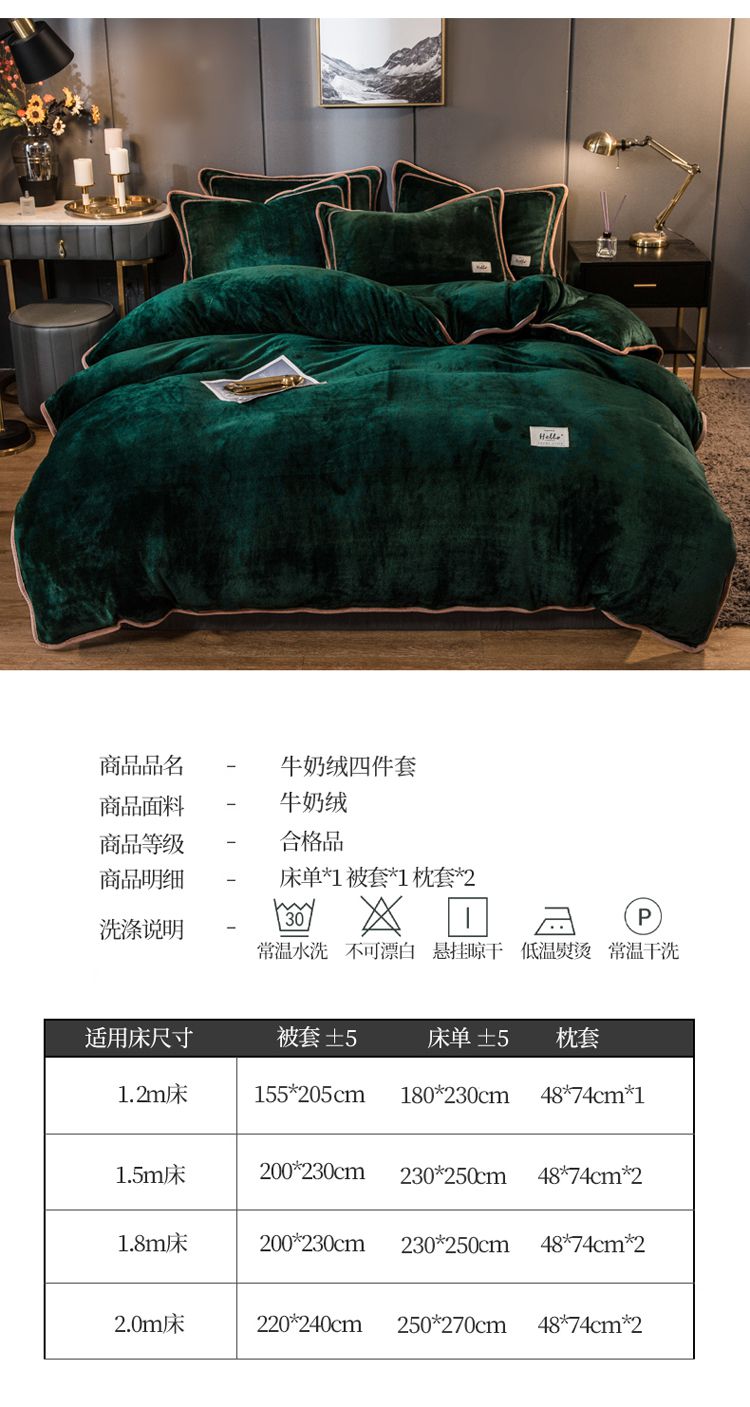 商品名称:栩裕纺织 2025新款网红爆款意式轻奢牛奶绒四件套 玛瑙绿